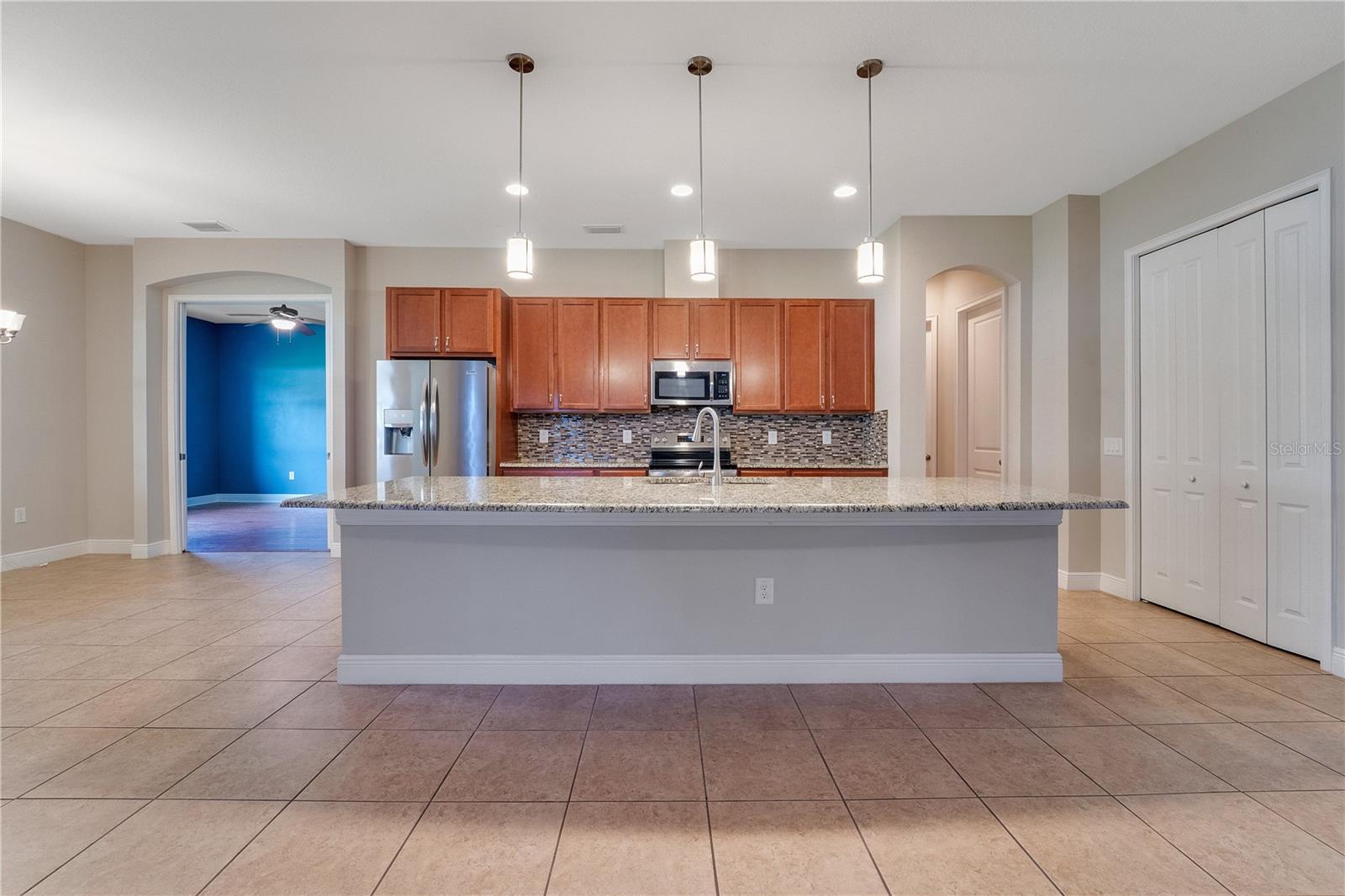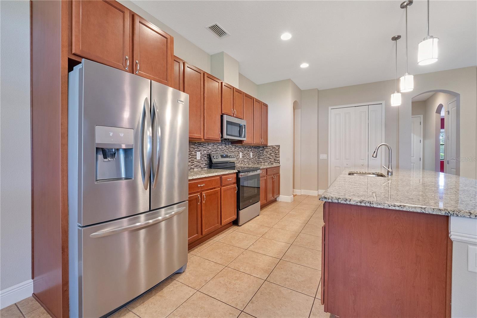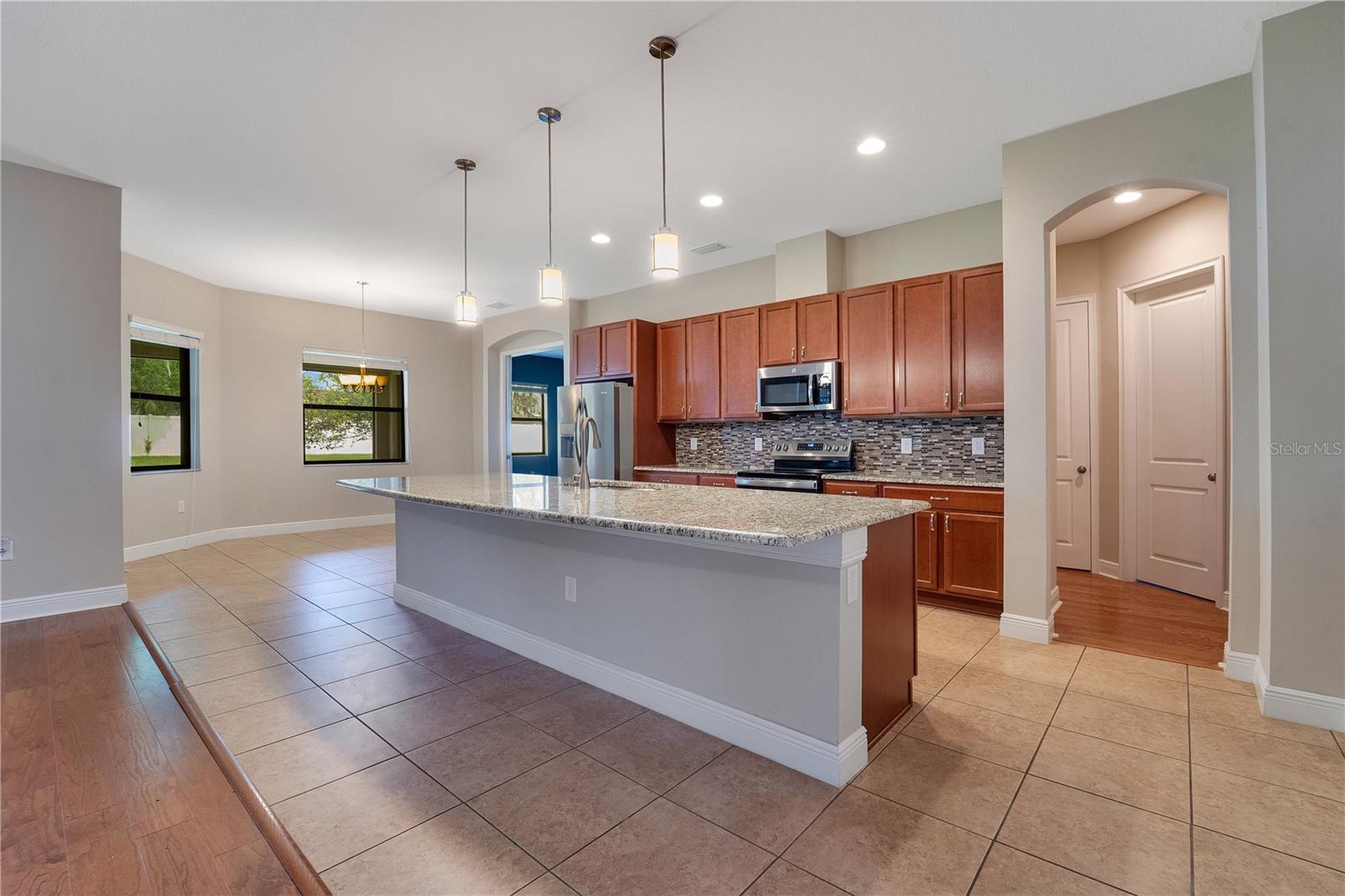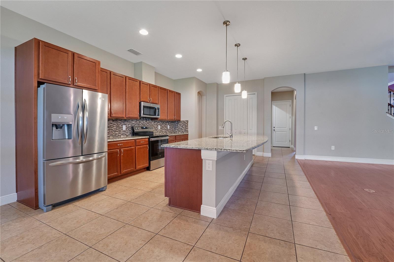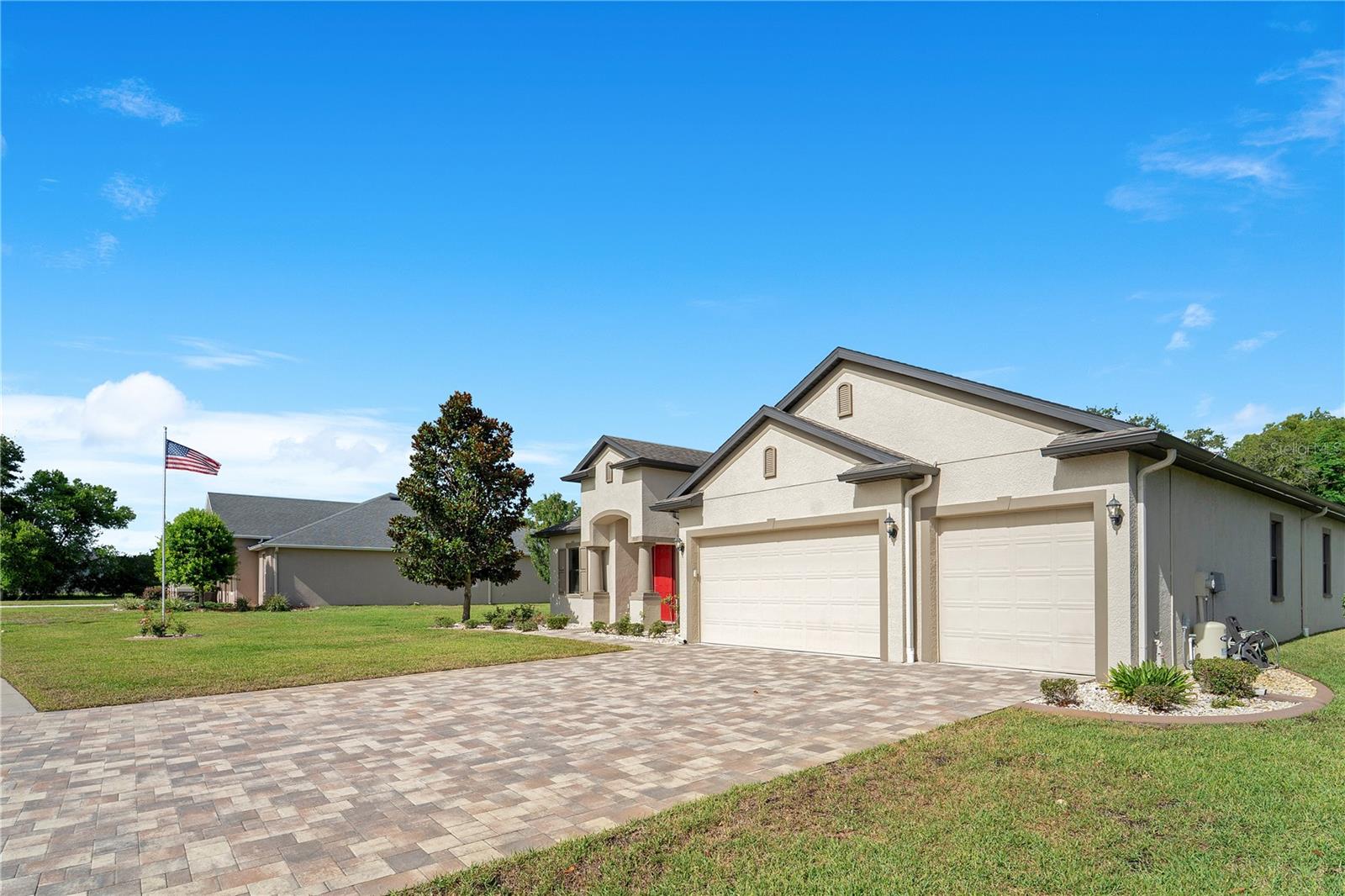 Buy now, save now — 1-year rate buydown with our preferred lender! Nestled in the exclusive, gated Carlisle Place section of the Villages of Avalon, this luxurious two-story home offers 4 bedrooms, 4 full baths on a beautifully landscaped half-acre lot. The property features a custom paver driveway and walkway, lush tropical landscaping, and striking curb appeal. Inside, you'll find soaring ceilings and sunlight-filled open-concept spaces. The gourmet kitchen showcases granite countertops, a large center island, and stainless steel appliances, plus a cleverly designed adjacent bonus area hidden behind elegant pocket doors—ideal for a home office or cozy gathering nook. The extended master suite now offers a larger sitting area and abundant natural light, complete with dual vanities, walk-in closet, and spa-like bath and walk in shower. The main floor also includes three additional spacious bedrooms and two full baths. Upstairs, a second-floor bonus/media room with a private full bath serves as an ideal guest retreat, entertainment area, or study. The home features an extended three-car garage with additional storage and workspace options, while the oversized, fully–tiled screened-in patio beckons for relaxed outdoor living.This home features a dedicated irrigation well for landscaping and outdoor use — a smart upgrade that dramatically cut water costs. Premium community amenities—including a clubhouse, pool, and fitness center—all with low HOA fees and no CDD fees—make this home an exceptional find in Spring Hill.
