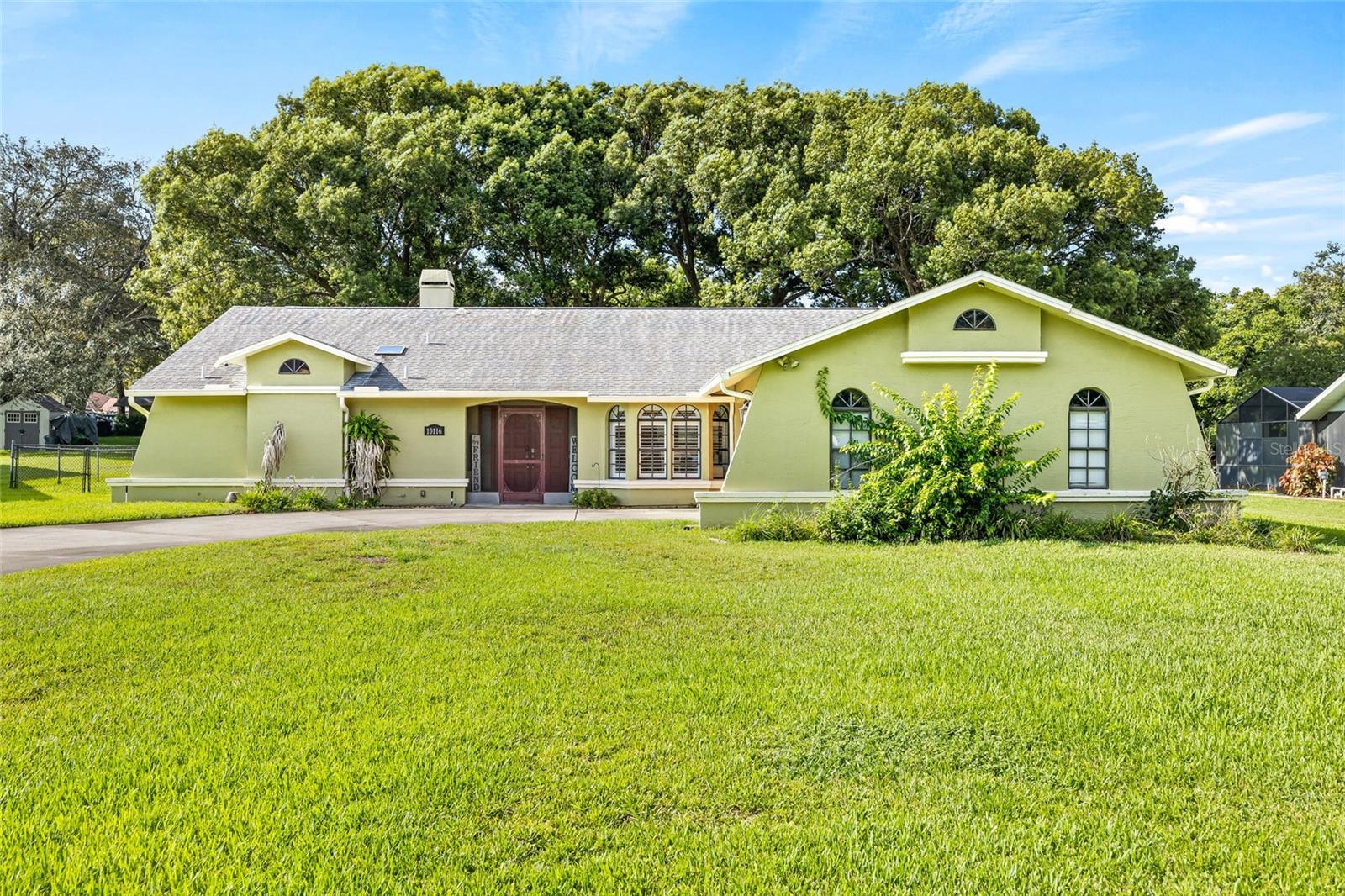 Welcome to a stunning single-family home nestled in the heart of Spring Hill. Sitting on a generous half-acre lot, this beautifully updated home offers 3 bedrooms, 2 bathrooms, a 2-car garage, and nearly 2,000 sq ft of living space—complete with a screened-in pool and a backyard oasis. As you enter the home, you’re greeted by an inviting open-concept layout that seamlessly connects the family room and kitchen, perfect for modern living and entertaining. The space is enhanced by laminate flooring throughout, a striking wood-burning fireplace, vaulted ceilings, and an exposed beam that adds a stylish, contemporary touch. The formal dining room features a large front-facing bay window that fills the space with natural light, creating a warm and welcoming atmosphere. The chef’s kitchen is a standout, equipped with stone countertops, light-colored cabinets, stainless steel appliances, a wall-mounted range hood, and a designer backsplash that ties it all together. A cozy breakfast nook with its own bay window overlooks the pool and offers direct access to the covered patio—perfect for morning coffee or casual meals. The primary suite is a true retreat, with sliding glass doors that lead directly to the pool area, a walk-in closet, and an ensuite bathroom featuring a white vanity, soaking tub, separate walk-in shower, and a skylight that fills the space with natural light. The two additional bedrooms each include built-in closets and are conveniently located near the second full bathroom, which boasts a vessel sink, extra-long vanity, and a walk-in shower. A well-appointed laundry room includes overhead cabinet space and a utility sink for added convenience. Step outside and you’ll find your very own private poolside haven, complete with a covered patio, ceiling fans, and privacy screened enclosure. Beyond that, a fully fenced backyard with mature trees offers endless potential—ideal for pets, play, or future customization. Located on a quiet cul-de-sac, this home truly offers the perfect blend of space, comfort, and modern style—inside and out. Don’t miss your opportunity to make this Spring Hill gem your own. Enjoy peace of mind with a recently replaced air conditioner 2022 .Schedule a private showing today! Please note: Fridge in kitchen does NOT convey. Fridge in garage DOES convey.