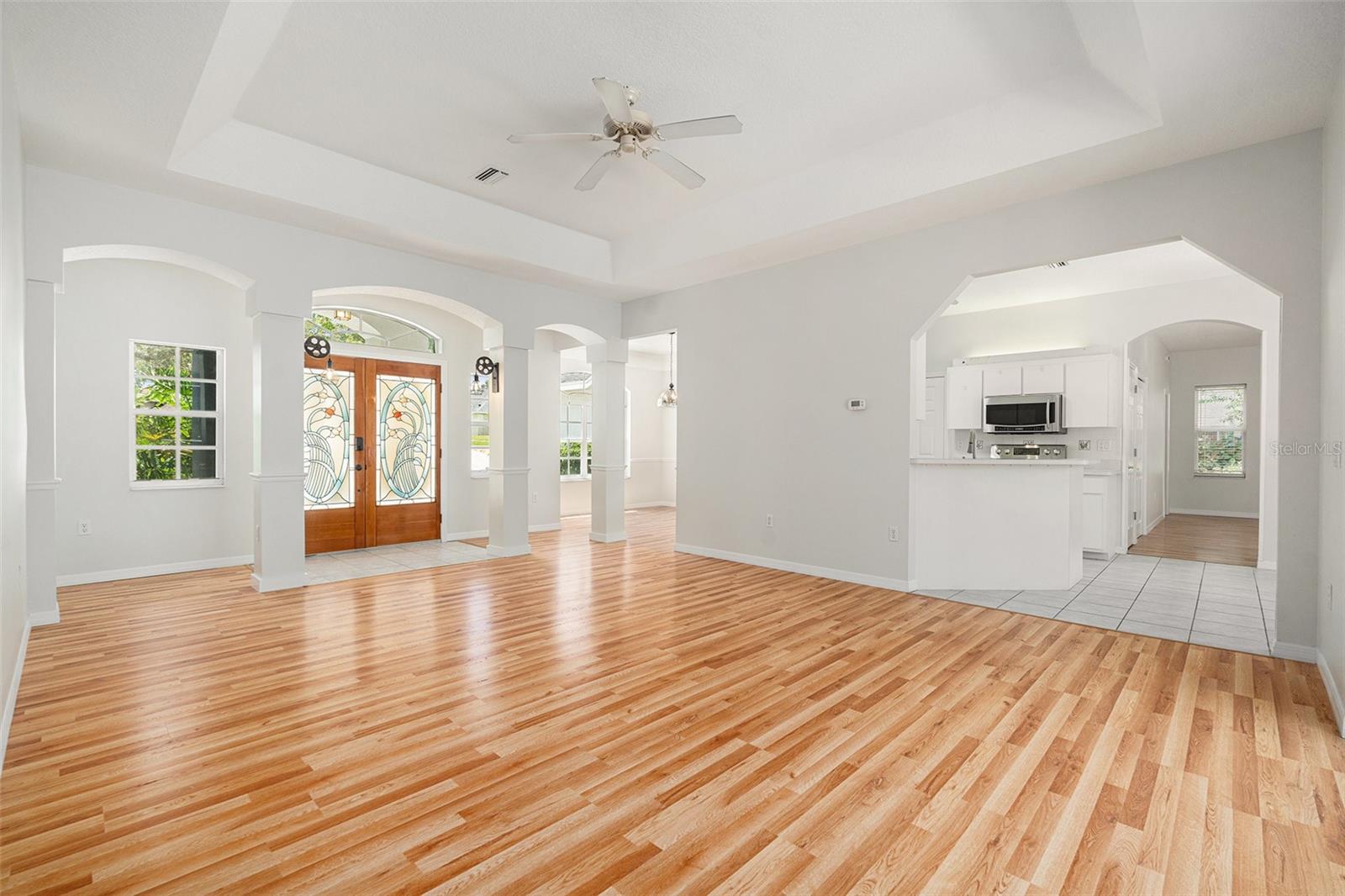Discover your perfect Florida retreat in this inviting 3-bedroom, 2-bathroom Spring Hill home, complete with a private pool. Step inside to an open-concept floor plan highlighted by tray ceilings, gleaming hardwood floors, and thoughtfully updated lighting. The spacious living area flows seamlessly into the stylish kitchen, which offers abundant cabinet and counter space along with stainless steel appliances. The primary suite is a true haven, featuring a generous walk-in closet and a spa-like en-suite bath with a soaking tub and separate shower. Two additional bedrooms provide flexibility for family, guests, or a home office. Outdoor living is equally impressive with a large covered and screened lanai overlooking the sparkling in-ground pool—perfect for both entertaining and everyday relaxation. Additional comforts include ceiling fans throughout, central heating and air, and a washer/dryer. Ideally located just minutes from shopping, dining, parks, and the natural beauty of the Weeki Wachee River, with convenient access to US-19 for easy commuting. This home blends style, comfort, and location into the ultimate Florida lifestyle.