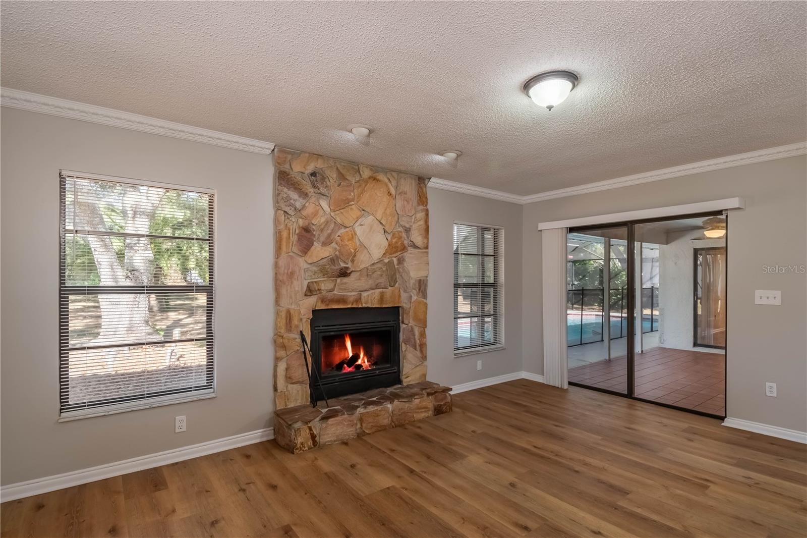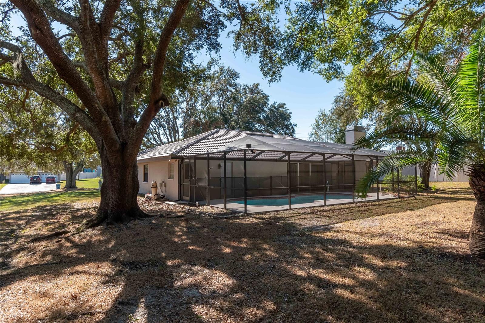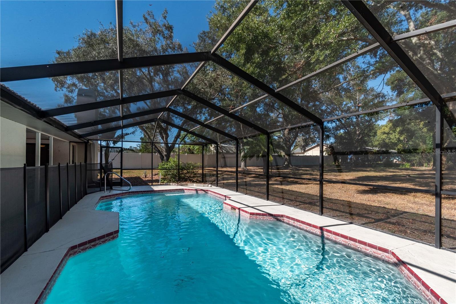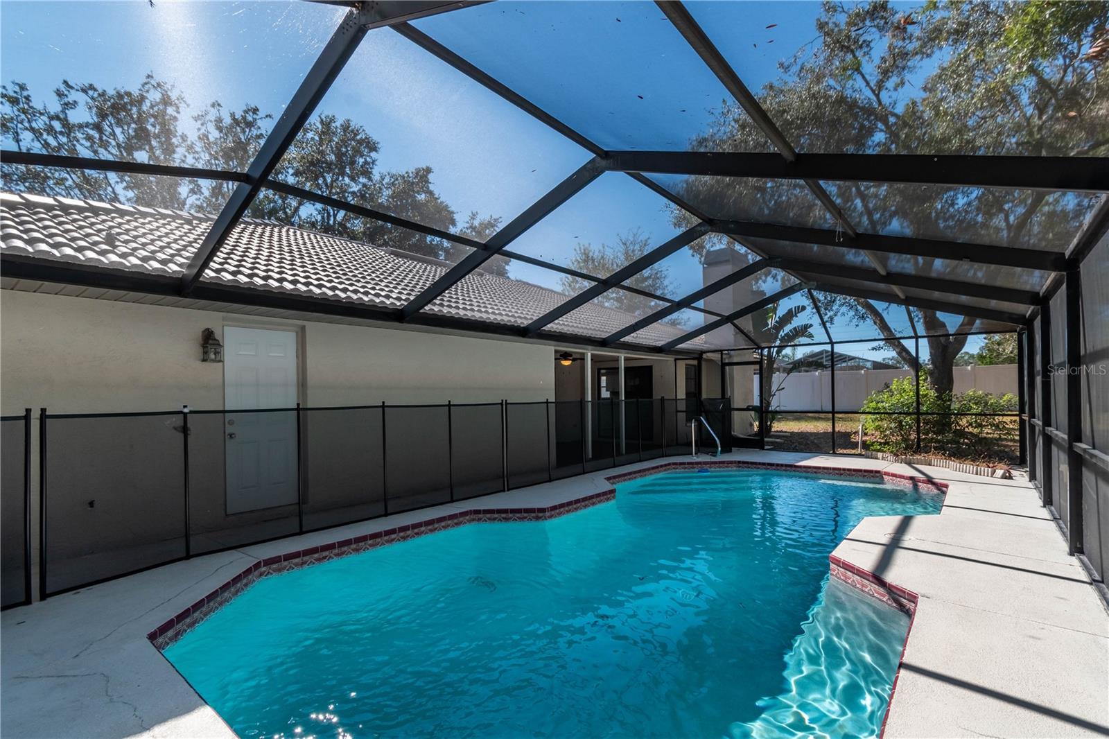 Back on the market! Don't miss out! Discover a rare gem: a 3-bedroom Spring Hill pool home, conveniently located just 5 minutes from the Suncoast Parkway in Springwood Estates, and with no HOA fees. This former model home sits on a vast .66-acre fenced lot with a barrel tile roof, recently painted interior and exterior, & luxury vinyl plank flooring throughout. Upon entering, you're greeted by a spacious foyer with French doors showing you a view of the pool area. Adjacent to the foyer is the formal living room with its high ceilings and expansive windows that provide the space with plenty of natural light. The kitchen is updated with new cabinets, stainless steel appliances and new countertops and has a breakfast bar & dinette area. The kitchen opens to the family room, complete with a wood-burning fireplace and sliding doors to the covered lanai and pool area. The bonus room could be used as a playroom, extra bedroom, or home office. The primary bedroom features a separate seating area with a view of the pool, a huge closet, a garden tub, and a separate shower. The primary bathroom offers pool access and functions as a pool bath. Both additional bedrooms are generously sized at 16' x 10'. The expansive backyard offers limitless possibilities with its mature trees providing shade and partial fencing for privacy. The covered lanai extends the living space, perfect for outdoor dining and entertainment. The screen-enclosed in-ground pool invites relaxation. Recent upgrades feature a new a/c unit in 2022, newer hot water heater, an irrigation well, and modern exterior light fixtures. All of this conveniently situated mere minutes from shopping, dining, schools and entertainment.