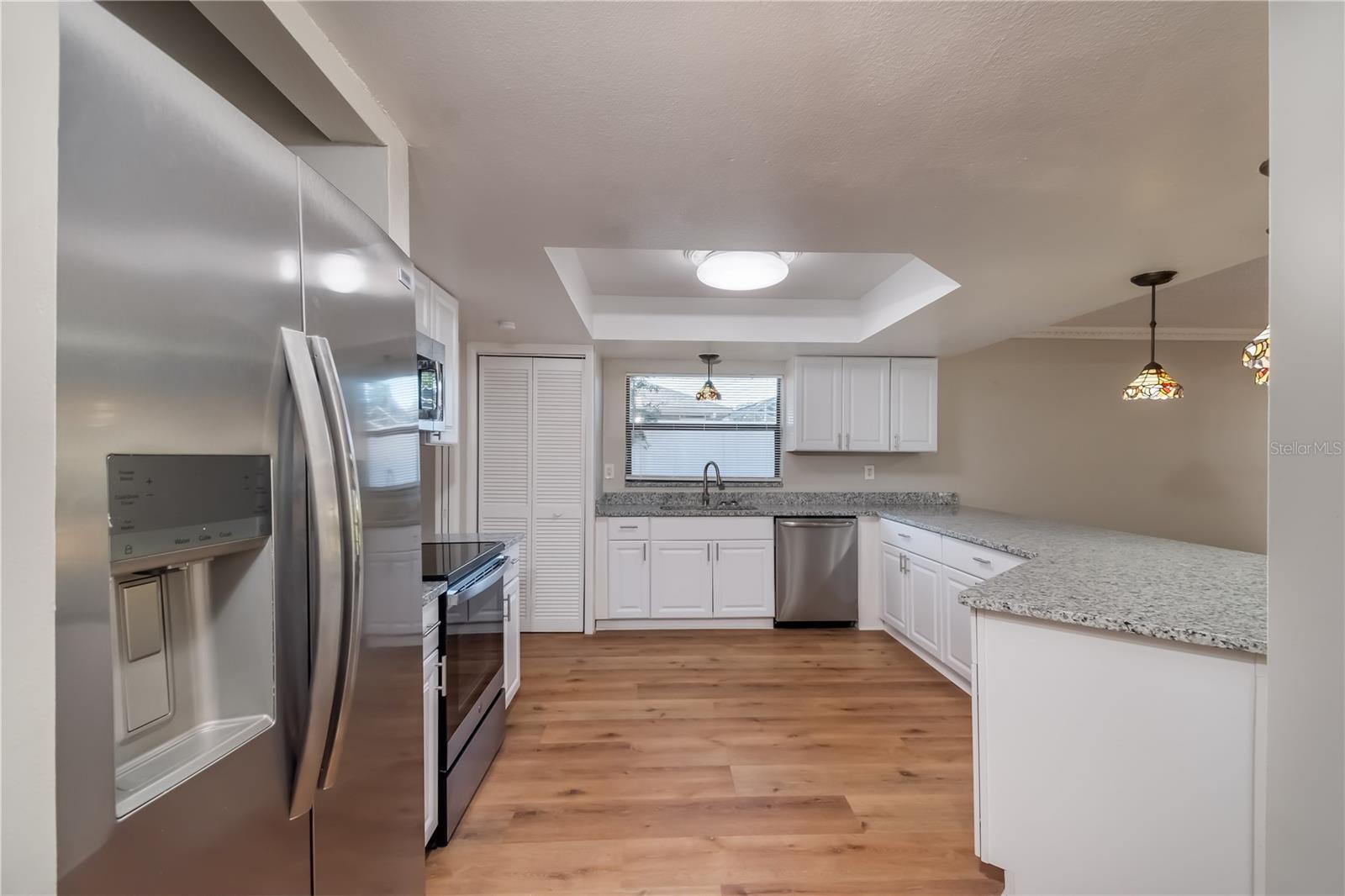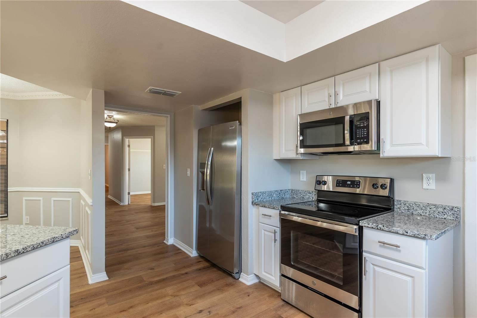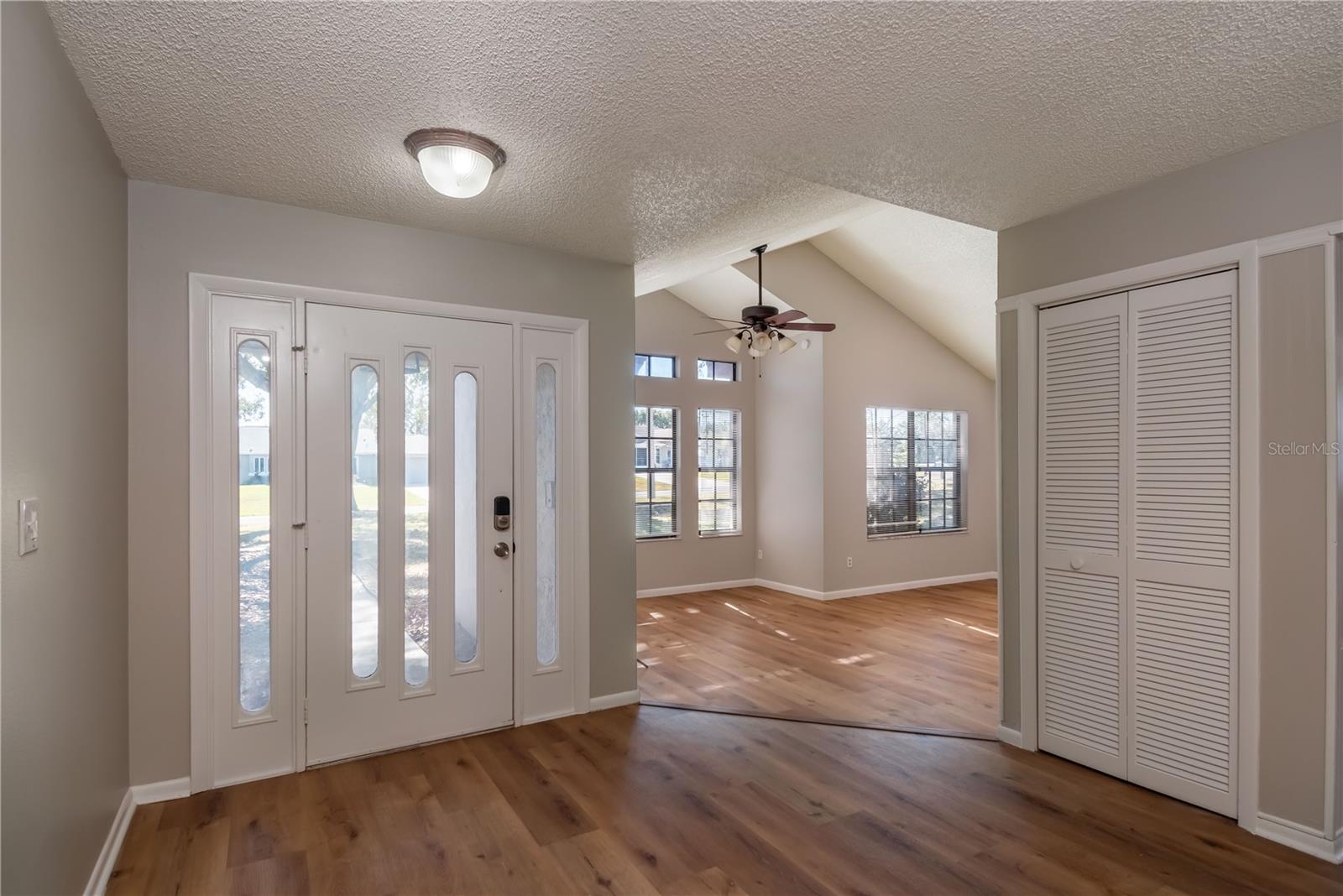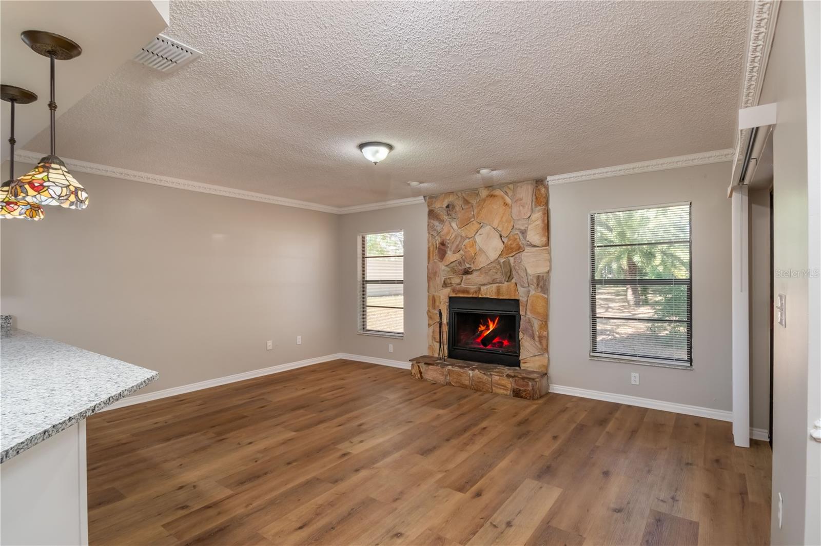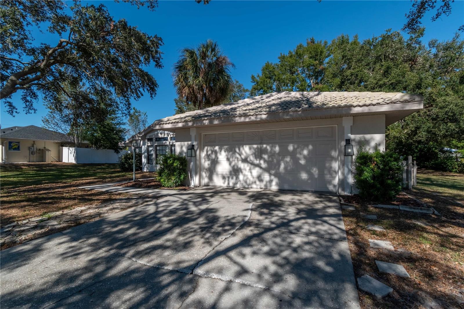 Back on the market! Don't miss out! Discover a rare gem: a 3-bedroom Spring Hill pool home, conveniently located just 5 minutes from the Suncoast Parkway in Springwood Estates, and with no HOA fees. This former model home sits on a vast .66-acre fenced lot with a barrel tile roof, recently painted interior and exterior, & luxury vinyl plank flooring throughout. Upon entering, you're greeted by a spacious foyer with French doors showing you a view of the pool area. Adjacent to the foyer is the formal living room with its high ceilings and expansive windows that provide the space with plenty of natural light. The kitchen is updated with new cabinets, stainless steel appliances and new countertops and has a breakfast bar & dinette area. The kitchen opens to the family room, complete with a wood-burning fireplace and sliding doors to the covered lanai and pool area. The bonus room could be used as a playroom, extra bedroom, or home office. The primary bedroom features a separate seating area with a view of the pool, a huge closet, a garden tub, and a separate shower. The primary bathroom offers pool access and functions as a pool bath. Both additional bedrooms are generously sized at 16' x 10'. The expansive backyard offers limitless possibilities with its mature trees providing shade and partial fencing for privacy. The covered lanai extends the living space, perfect for outdoor dining and entertainment. The screen-enclosed in-ground pool invites relaxation. Recent upgrades feature a new a/c unit in 2022, newer hot water heater, an irrigation well, and modern exterior light fixtures. All of this conveniently situated mere minutes from shopping, dining, schools and entertainment.