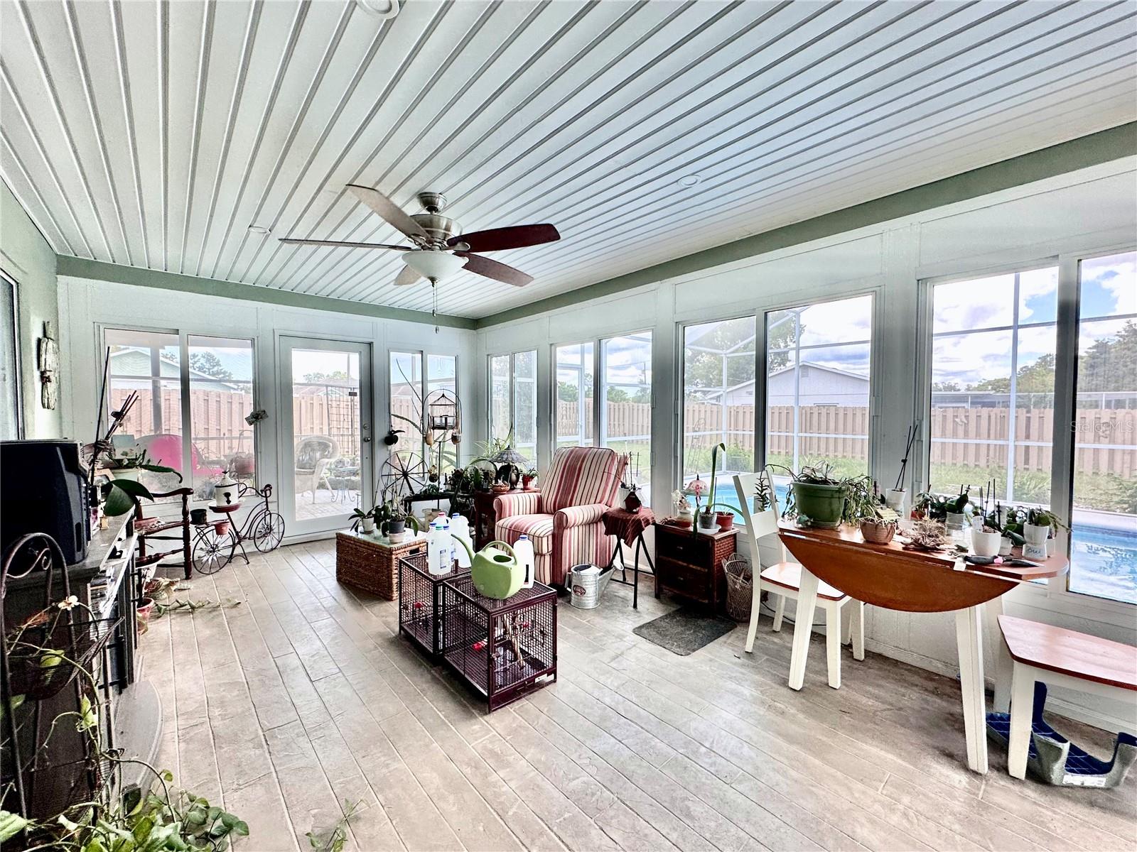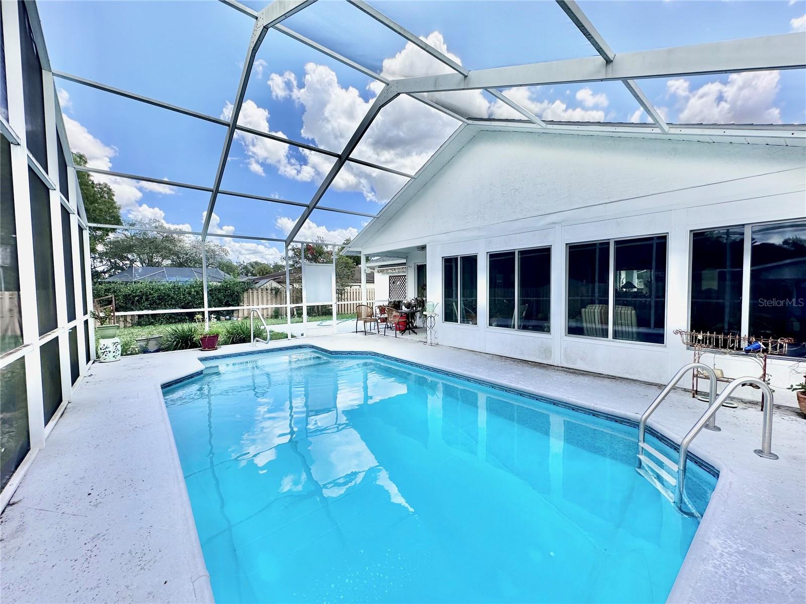 Welcome to 10267 Elgin Blvd — where comfort meets convenience in this beautifully updated pool home. Set on a well-kept lot, this property offers a private oasis complete with a screened-in pool, sunroom, and an additional screen room—ideal for entertaining or relaxing in peace. The open patio comes equipped with a powered sunshade, so you can enjoy just the right amount of sunshine any time of day. The fully fenced backyard adds privacy, making it a perfect space for pets, gardening, or weekend get-togethers. Plus, the brand-new roof adds major value and peace of mind. Inside, the updated kitchen shines with stainless steel appliances, while new luxury vinyl plank flooring brings both style and durability to the main living areas. The primary suite has been thoughtfully upgraded, featuring a large walk-in shower and an oversized walk-in closet that feels like a dream. Additional highlights include a paver driveway for added curb appeal, fresh interior paint, energy-efficient windows throughout. This home is a true gem, offering a rare combination of thoughtful updates, outdoor living space, and modern comfort. Schedule your showing today and explore the potential of this move-in ready retreat!