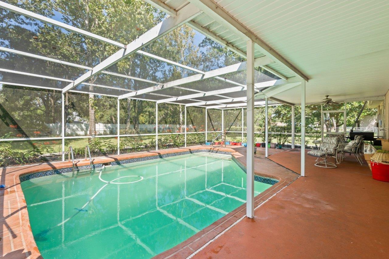 This beautiful 3 bedroom, 3 bath pool home is a rare find nestled on a ½ acre lot. The driveway has been extended and can fit an RV and boat for outdoor enthusiasts. The interior has ceiling fans throughout, massive closets, updated floors, granite kitchen counters, and stainless steel appliances. The stone fireplace is a must-see and adds immediate character when you enter the home. The master bedroom has a walkout patio feature and includes a large owner’s closet. The garage is screened and has attic storage. The outdoor area is a pure paradise with a screened pool lanai and additional entertaining space in the fenced-in yard. This is Florida living at its best!!