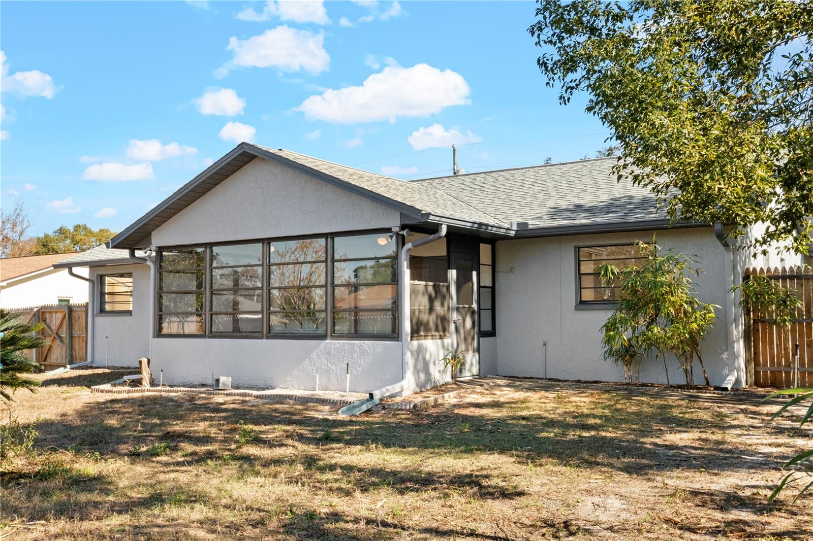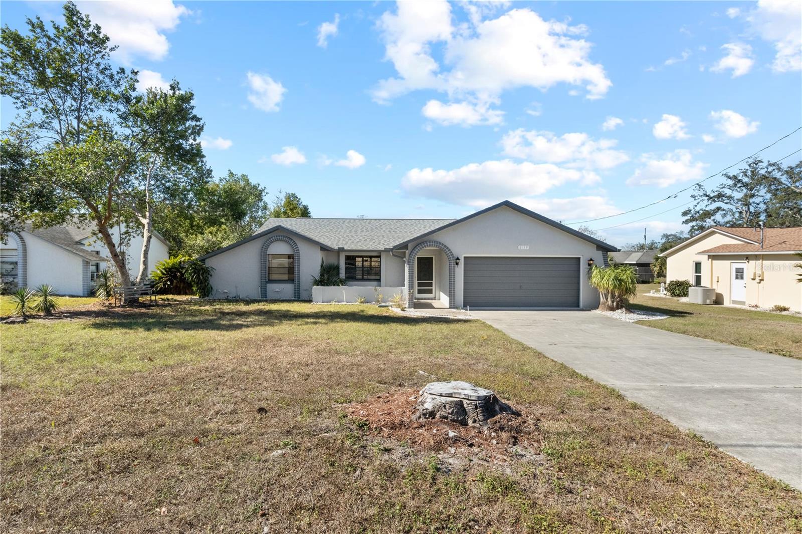 Completely remodeled, turnkey, and move-in ready, single-family residence offers 3 bedrooms, 2 bathrooms, and a spacious 2-car garage, spread across 1,532 square feet of air-conditioned space. The home sits on a generous 10,000 square foot lot (80x125). As you enter from the covered front porch, you’re greeted by a welcoming family room and dining area with newly installed waterproof vinyl flooring throughout (no carpet anywhere). The large owner’s suite (14 x 16) features a walk-in closet and an updated en suite bathroom with a new double vanity and shower tile. Adjacent to the family room are two additional bedrooms (12 x 13) that share a newly refreshed bathroom, also with a new vanity and shower tile. The chef's kitchen boasts a wrap-around bar that comfortably seats four to five barstools, accompanied by ample upper and lower cabinet storage with Tan Brown granite counter tops. You'll enjoy using the brand new, smudge-proof Frigidaire appliance package, which comes with a one-year manufacturer’s warranty. Through a sliding glass door off the family room, you'll find your concrete lanai/Florida room, equipped with an AC vent, making it usable during warmer months. A new dimensional shingle roof was installed in October 2019. The home also has fresh paint inside and out, and new board-on-board wood fence with a double gate. Additionally, there are no CDD or HOA fees. The home is conveniently located near the Suncoast Parkway, US-19, and various shopping and dining options."