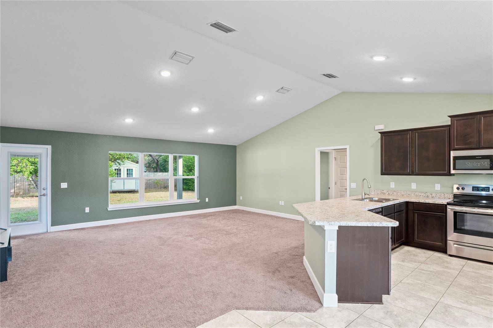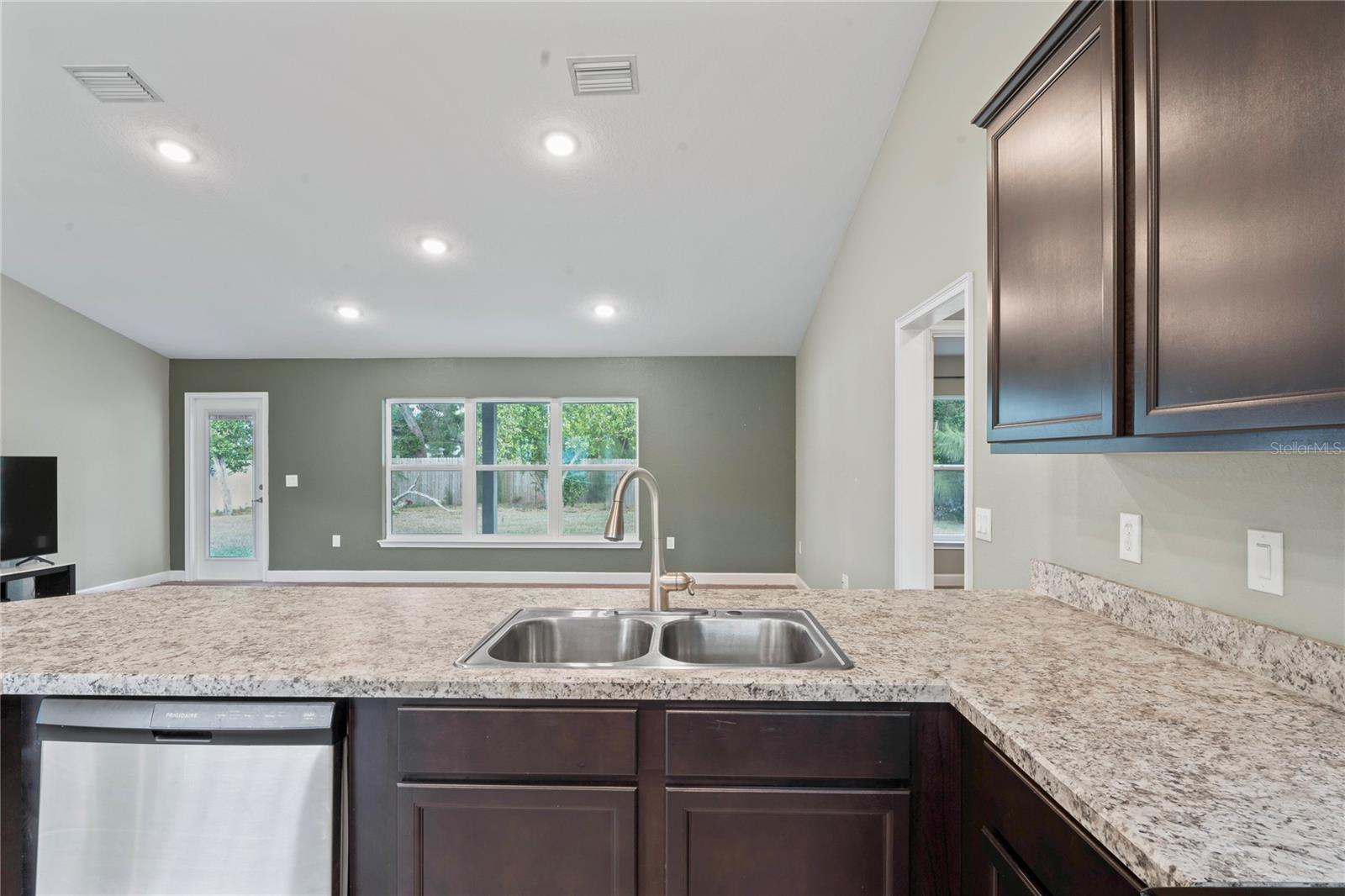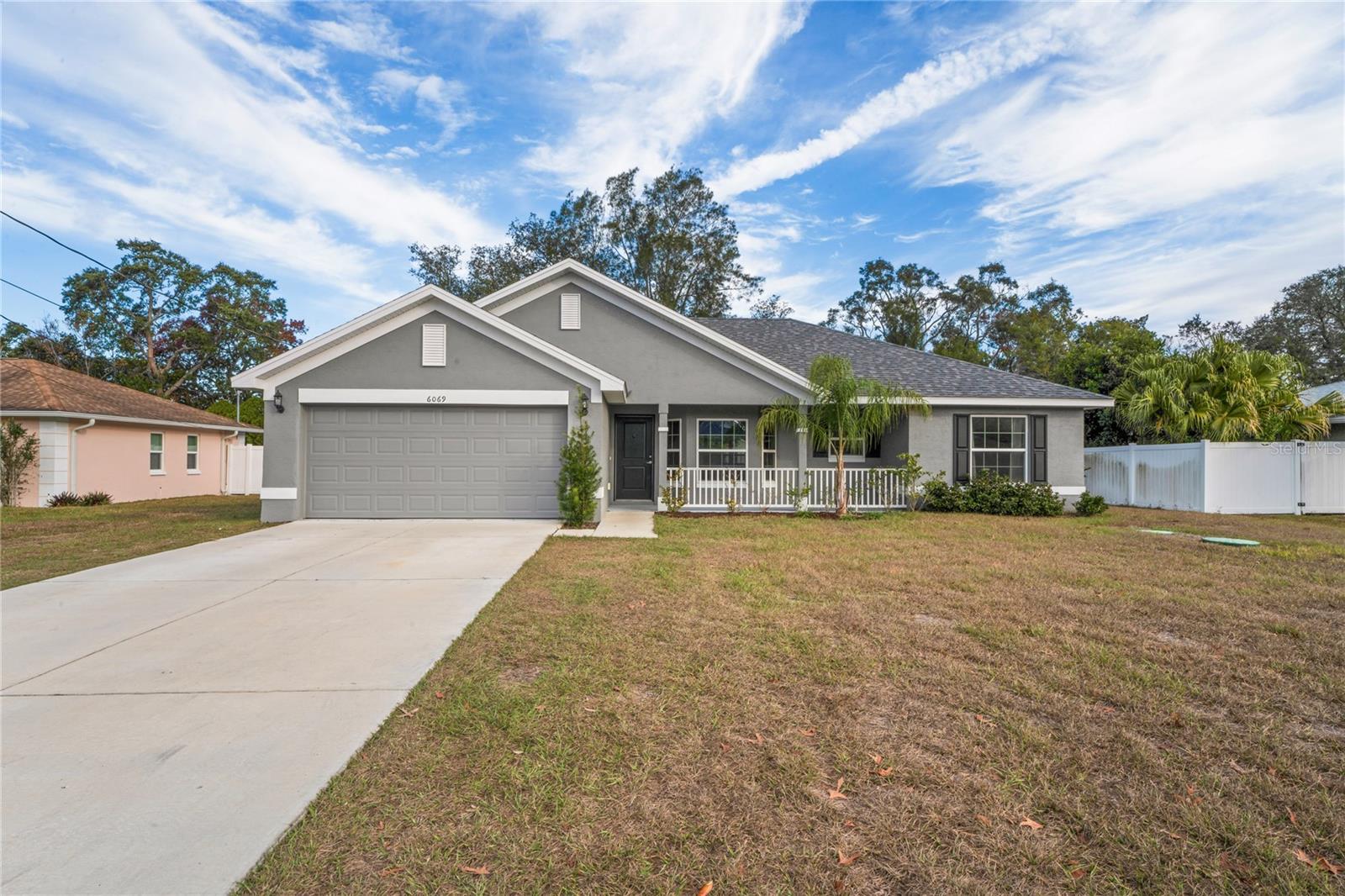 Buyers financing fell through, this home is ready for it's new owners! Sellers will give a credit towards buyers closing costs too! Welcome home to your nearly brand new 2022 built Adams home! This highly desirable floor plan is situated on just under a quarter acre lot with a huge driveway providing plenty of room for parking & not to mention the spacious 2 car garage! Approaching the front door, you're greeted by the welcoming front porch. Entering inside the HUGE open floor plan provides terrific entertaining space, the tall ceilings open the space even more! With an adorable breakfast nook area and bar stool seating, you have ample room for guests to enjoy dining. The cabinetry and counters are in great shape and have been well taken care of by the owners. The stainless steel appliances will convey as well. The living room is enormous, providing plenty of space for you and your guests while overlooking the lanai and backyard! The lanai could easily be screened in and the spacious backyard even comes with the shed! This split floor plan features the master bedroom on the west side of the home. Spacious and cozy with its own on suite bathroom. This sizable bathroom has a walk in closet, two sinks, full bath tub separate from the very well kept shower and even has a window for plenty of natural light. Leaving the master bedroom in the hallway is the full sized laundry room with storage shelfs and the washer & dryer that will convey as well! Opposite to the master bedroom on the east side of the home is the guest bathroom with a full size tub/shower combo and is very well kept! Both bedrooms on this side of the home are spacious and feature great sized closets! This home is ready for it's new owners, schedule your showing today! Featuring double pane windows for a lower power bill, canned lighting throughout the entire home, lanai, spacious 2 car garage, all appliances come with the home for it's new owners, spacious driveway, front porch and much more! Nearby to a pleather of shopping plazas with restaurants, dining, grocery stores, schools and more! Schedule your showing today to see this stunning home in person! There is a full 3d tour and video areal available as well.