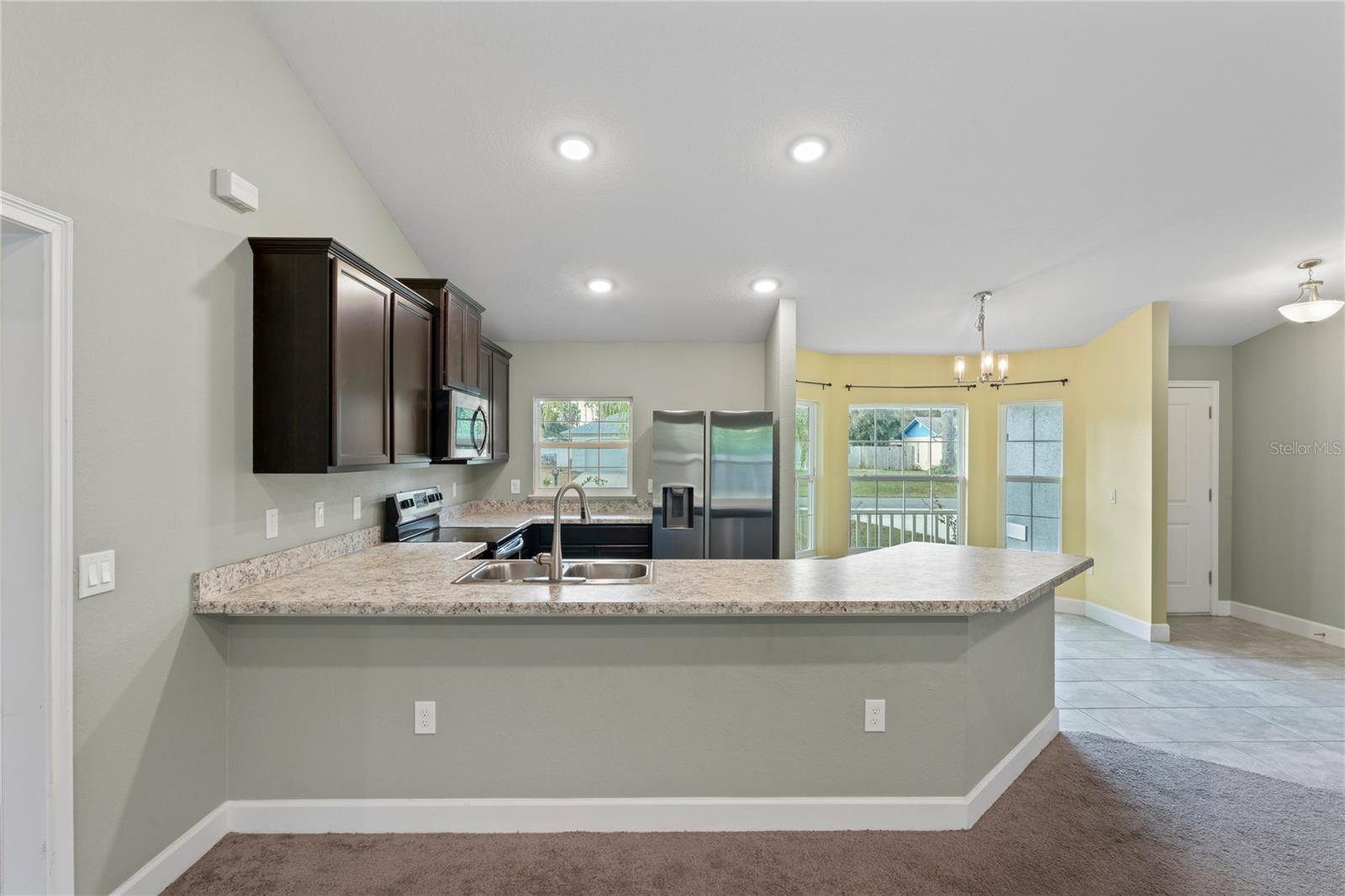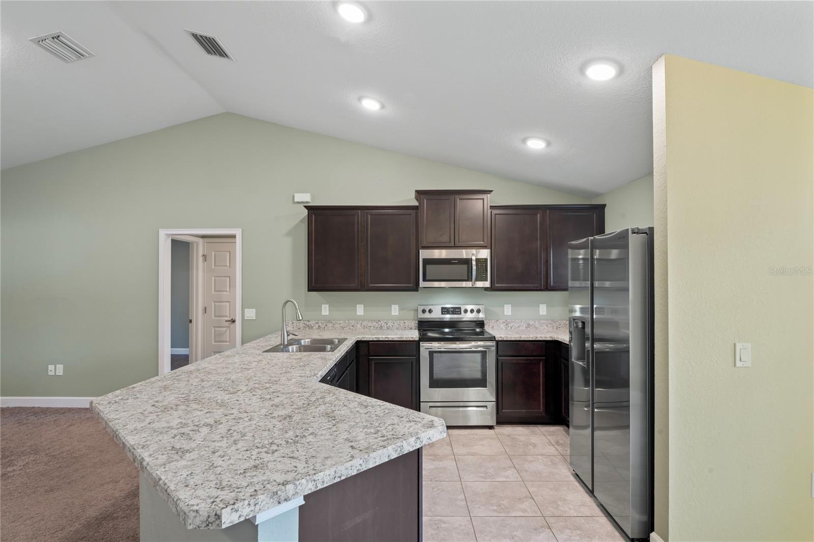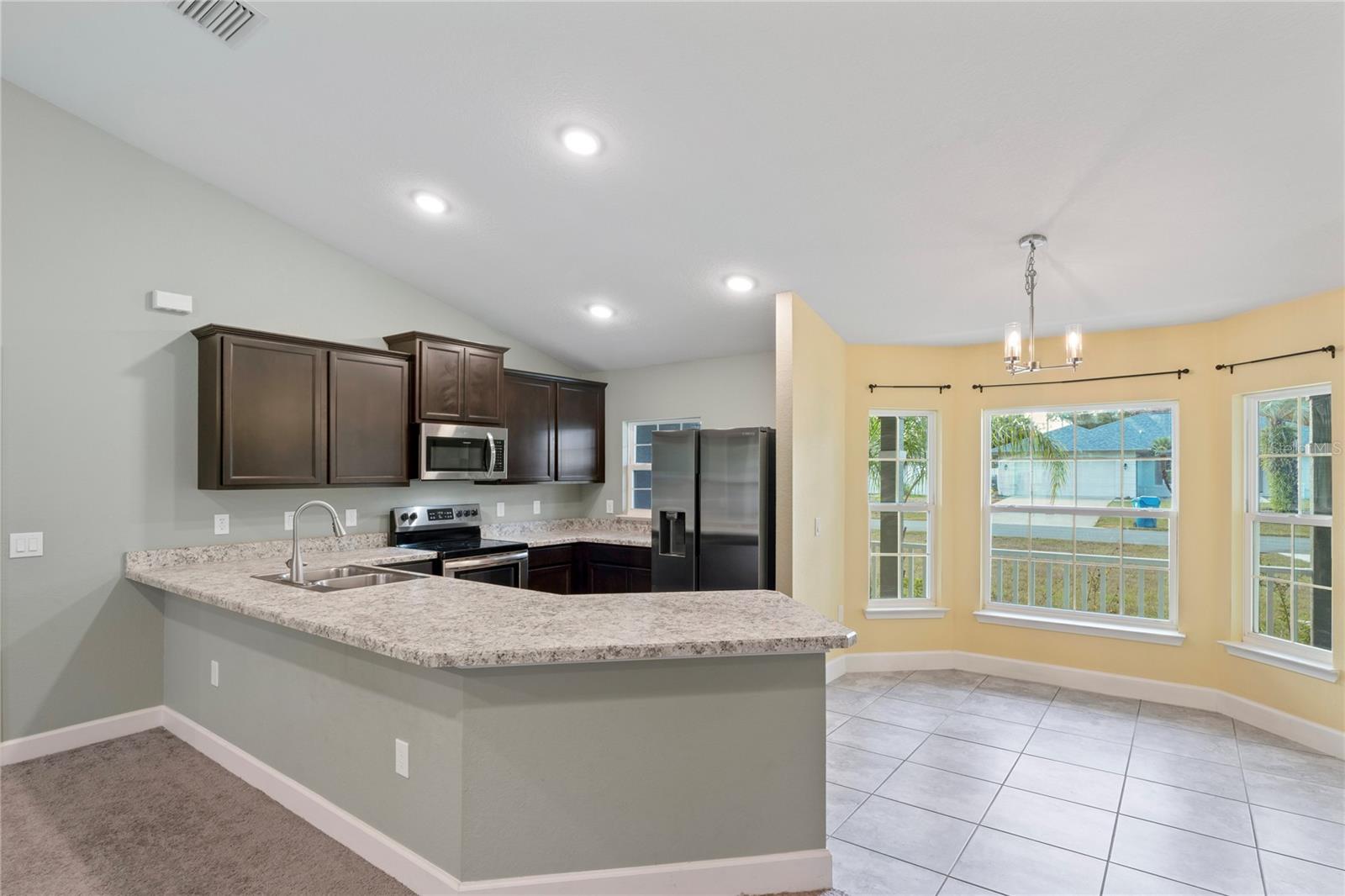 Buyers financing fell through, this home is ready for it's new owners! Sellers will give a credit towards buyers closing costs too! Welcome home to your nearly brand new 2022 built Adams home! This highly desirable floor plan is situated on just under a quarter acre lot with a huge driveway providing plenty of room for parking & not to mention the spacious 2 car garage! Approaching the front door, you're greeted by the welcoming front porch. Entering inside the HUGE open floor plan provides terrific entertaining space, the tall ceilings open the space even more! With an adorable breakfast nook area and bar stool seating, you have ample room for guests to enjoy dining. The cabinetry and counters are in great shape and have been well taken care of by the owners. The stainless steel appliances will convey as well. The living room is enormous, providing plenty of space for you and your guests while overlooking the lanai and backyard! The lanai could easily be screened in and the spacious backyard even comes with the shed! This split floor plan features the master bedroom on the west side of the home. Spacious and cozy with its own on suite bathroom. This sizable bathroom has a walk in closet, two sinks, full bath tub separate from the very well kept shower and even has a window for plenty of natural light. Leaving the master bedroom in the hallway is the full sized laundry room with storage shelfs and the washer & dryer that will convey as well! Opposite to the master bedroom on the east side of the home is the guest bathroom with a full size tub/shower combo and is very well kept! Both bedrooms on this side of the home are spacious and feature great sized closets! This home is ready for it's new owners, schedule your showing today! Featuring double pane windows for a lower power bill, canned lighting throughout the entire home, lanai, spacious 2 car garage, all appliances come with the home for it's new owners, spacious driveway, front porch and much more! Nearby to a pleather of shopping plazas with restaurants, dining, grocery stores, schools and more! Schedule your showing today to see this stunning home in person! There is a full 3d tour and video areal available as well.