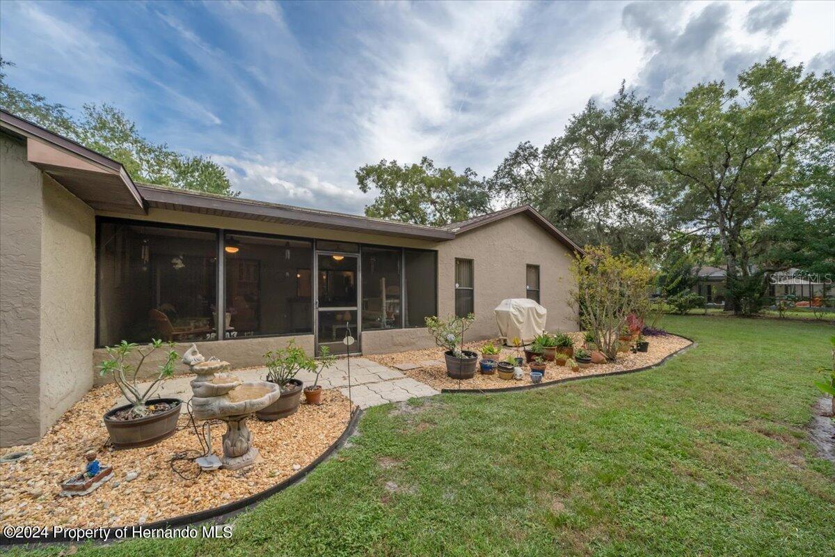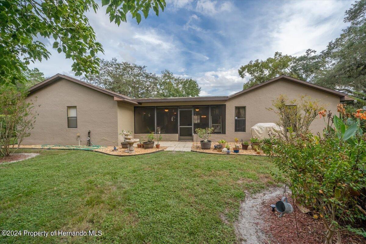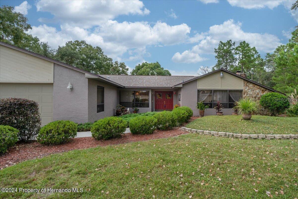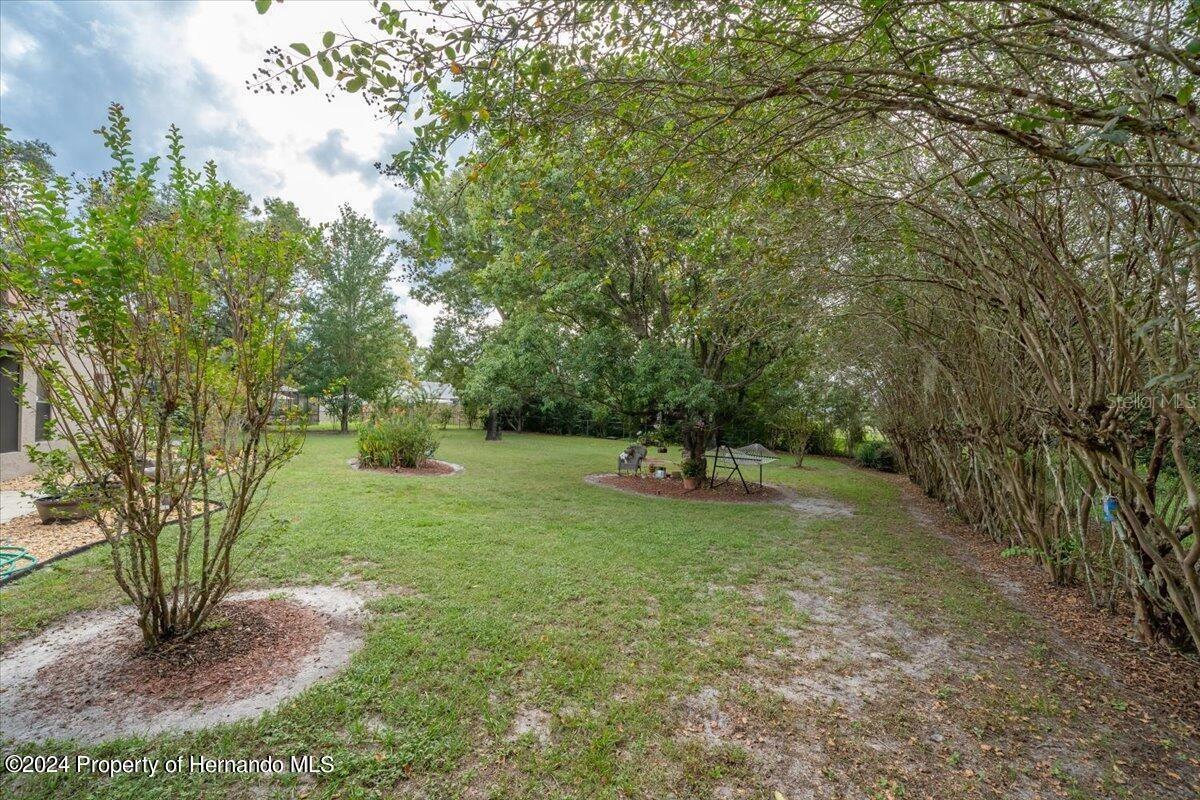 This Home is Special! An Oasis and, Butterfly Sanctuary in the Rear Garden, Fenced in for Family gathering's and Pets all backing up to the Boy Scout Reserve (no building behind it) all on a Quiet and Private Cul de Sac. Can you picture it.? Many new additions and priced below value. (Interest Rates are coming down, now is the time to buy this lovely Home, cash buyer would make it a smoother transaction, and quicker close) Buyers Agents welcome. Have you ever imagined your very own Bavarian Alps looking Ski Lodge House (on a Cul de Sac) right here in the middle of Spring Hill Fl.? This is a unique, one of a kind Home and Grounds. A Beautifully redone Kitchen with Shaker Cabinets and all Newer High End Stainless Refrigerator, Range, Microwave and Dishwasher with Granite Counter Tops! And, A One Bowl Deep Sink. Your New Home has 3 Bedrooms, and 2 Baths [each bathroom has a tub/shower combo and a separate full shower also, a well thought out masterfully built] Home with Butler’s Pantry, and Walk in Closets in each Bedroom, Master/Main (on separate side of house from 2nd & 3rd bedrooms), has an additional wall Closet. The Great Room has a vaulted ceiling and Expansive Wood Burning Stone Fireplace, it really gives you that “Lodge Feeling”, and it’s all open to the Beautiful New Kitchen. You’ve Got to See It!!! New LVP Flooring! And 12” Tile, no carpeting. Hurricane readied roof for insurance purposes, Whole House Water Conditioner and Softener, Scrubber on HVAC System, Top of the Line ADT System with Cameras and Motion Detectors [also lowers Insurance cost], Sanitized Air Ducts and the list goes on. There’s Nothing else like it in this area. And, it has a “Real” 2 car Garage [with work bench], not the 1-1/2 car they call a 2 car today, with an electric roll down screen door (a Craft Room in the garage with, central heat and a/c, truly unique). The Screened Lanai [off the kitchen] also has ceiling fans. Large Rooms (2216 SF). All this on a ½ Acre of Beautiful Flowering Bushes and old Beautiful Trees. A True Retreat! All appliances plus W & D convey. All this tucked away on a small Cul de Sac, Private and Peaceful, yet near to all Restaurants, Shopping, Doctors, Movie Theatre, Weeki Wachee Mermaid Shows, Beaches etc. Hard to believe there’s a Home like this right here in Spring Hill…Your New Home! Oh, and You can choose how many Goldfish you want to put in the koi Pond [with waterfall, fountain, and Lilly Pads] and watch them swim as you sit on Your Park Bench next to it relaxing. This truly Unique Home is for the discriminating buyer, something tells me that's You. Hurry, you've looked and looked and after all the houses you've missed out on you sure don't want to lose this one too. Call Now! You'll be glad you did.