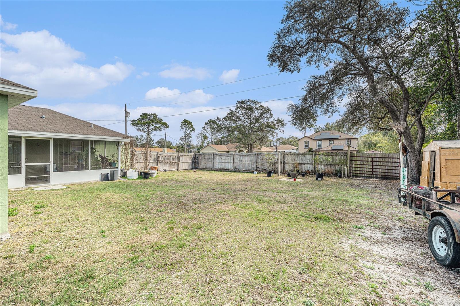 CASH OFFERS ONLY – This 4-bedroom, 2-bath home sits on a spacious corner lot and offers a great blend of comfort, convenience, and investment potential. With a fully fenced yard for privacy, a split floor plan, and a generously sized master suite with walk-in closet and walk-in shower, this layout works beautifully for families or future tenants. Enjoy peace of mind with recent upgrades including a brand-new AC (2024) and a water heater (2023). The kitchen features stainless steel appliances—plus a refrigerator just 2 years old—and two pantries for extra storage. You'll love the inside laundry room and dual sliding doors leading to a screened-in back porch, perfect for relaxing or entertaining. Outside, there’s RV and boat parking, two storage sheds, and ample yard space—ideal for outdoor living or value-add opportunities. Whether you're looking to make this your primary residence or an investor seeking a smart rental or flip, this property is full of potential in a high-demand area.