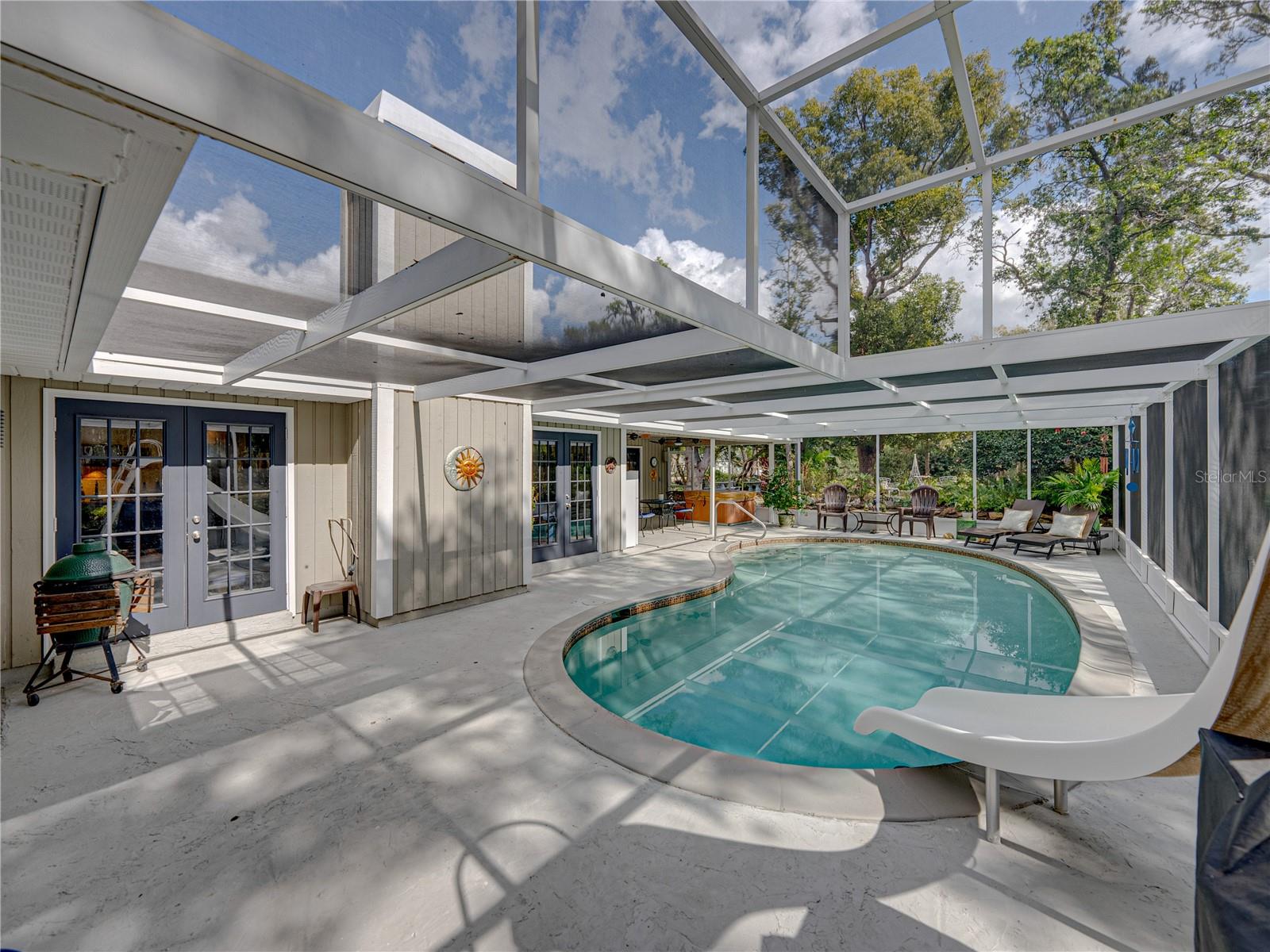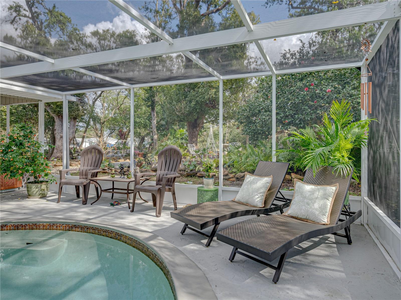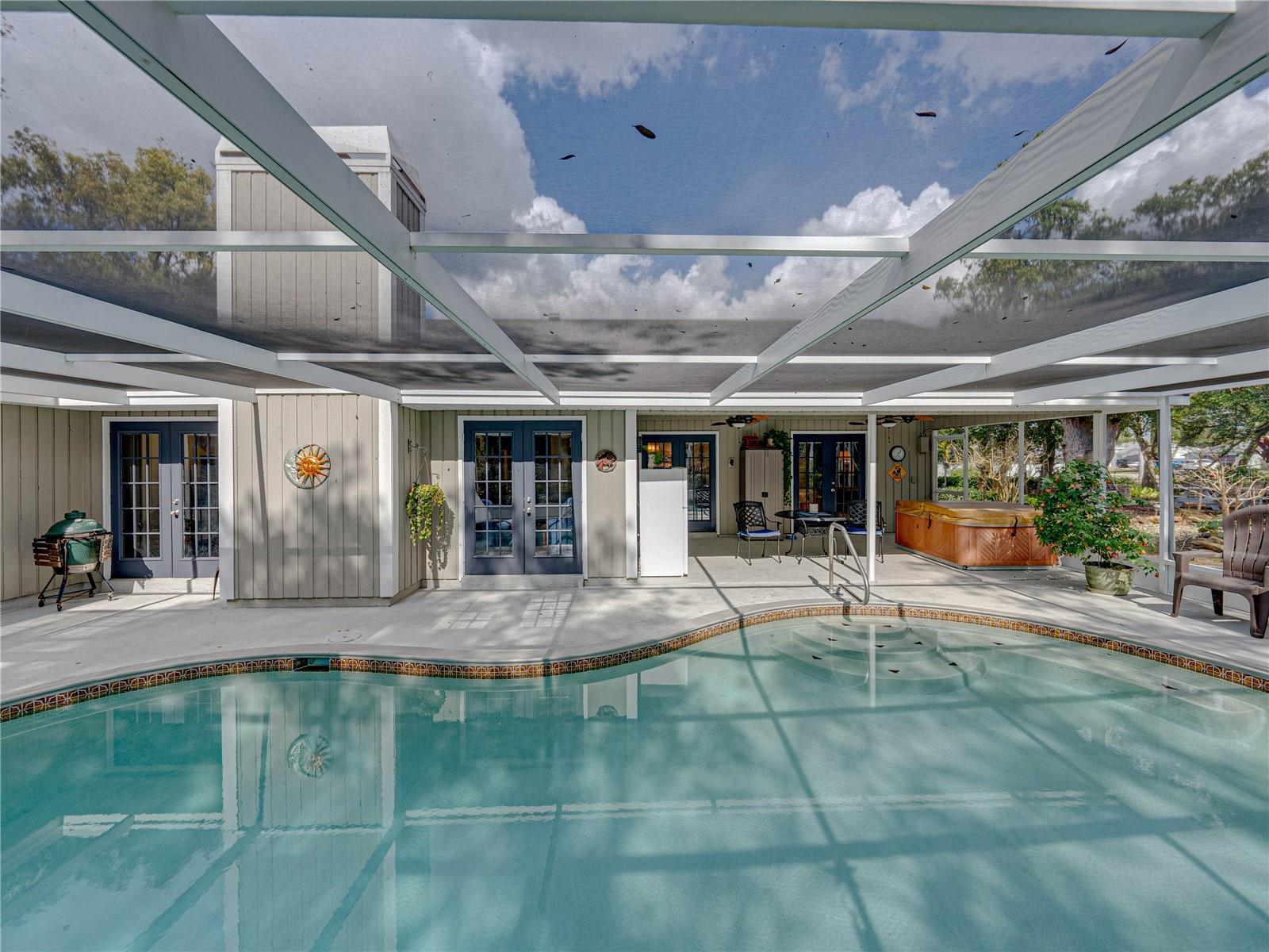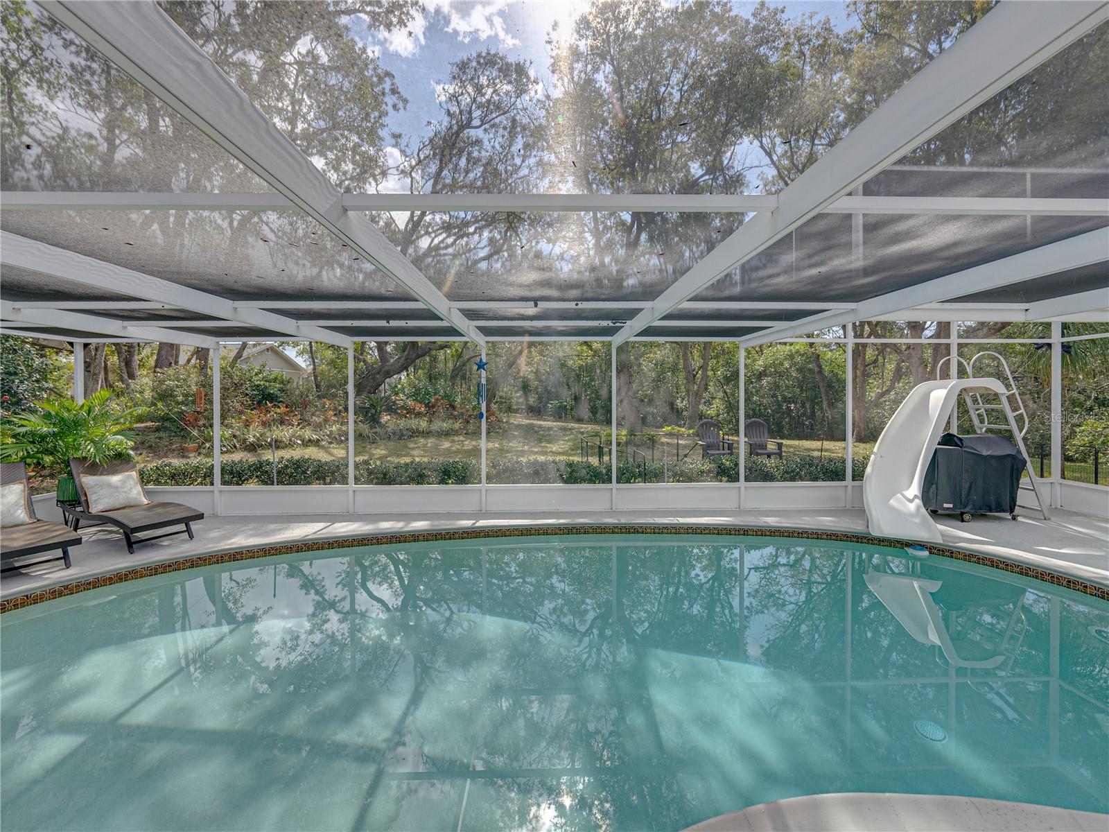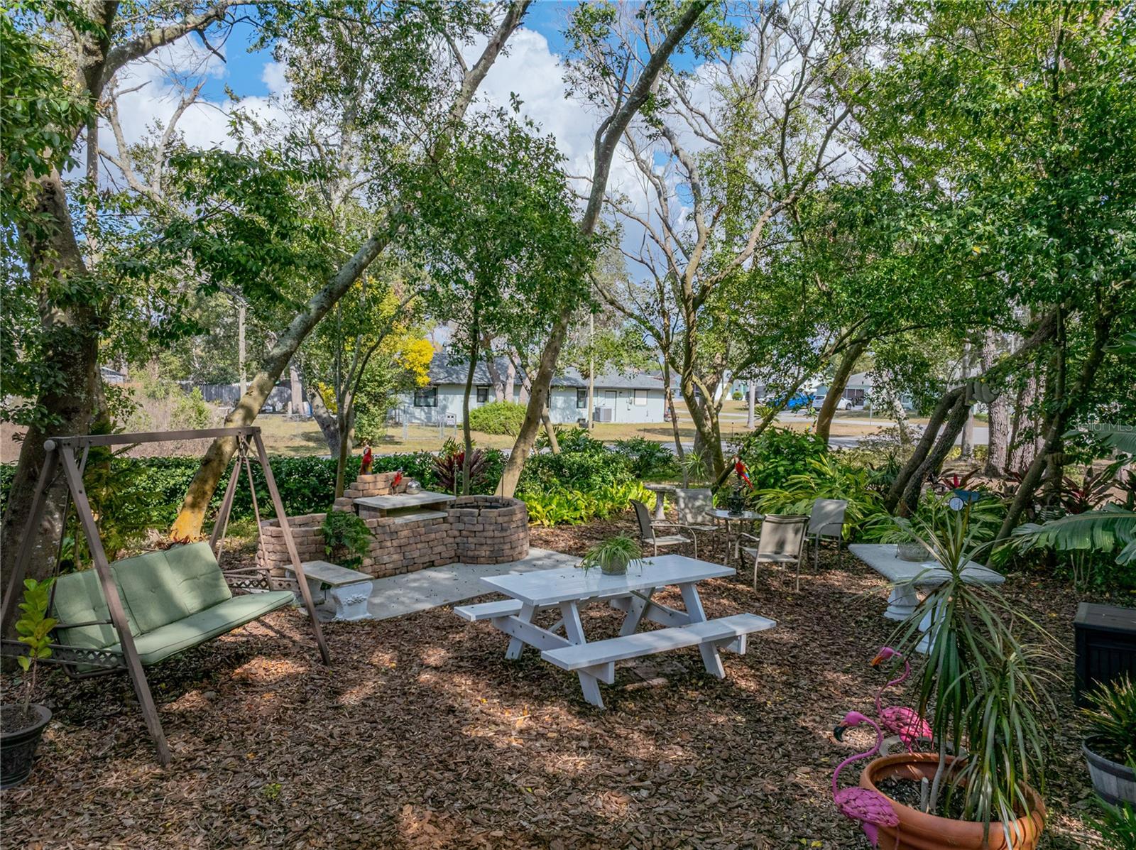 RARE DOUBLE LOT POOL HOME WITH AN ABUNDANCE OF MATURE LANDSCAPING FOR THE ULTIMATE PRIVATE OASIS-OR YOU CAN SPLIT THIS DOUBLE LOT INTO TWO LOTS WITH ENDLESS OPTIONS AND OPPORTUNITIES! Welcome to this absolutely stunning 3 bedroom, 2 bath, 2 car garage residence, meticulously maintained with a 2022 ROOF, a 2021 AC, and a host of other updates. As you step inside, you are greeted by the warm charm of imported Spanish porcelain tile flooring that flows seamlessly throughout the entire home. The spacious living room, featuring plenty of natural light through large windows, invites you to relax and unwind. An intimate but combined dining area flows into the kitchen and provides easy access to the serene pool area through French doors. The heart of this home, the chef’s kitchen is a true standout, with top-of-the-line Van Gogh granite countertops, custom wood soft-closing cabinets, and a unique hammered copper range hood set against a custom 90-degree herringbone pattern stone backsplash. Equipped with 2023 stainless steel appliances, a farmhouse sink, dual-tap kegerator, coffee bar, and a large walk-in pantry, this kitchen is as functional as it is beautiful! Overlooking the kitchen, a spacious family room invites entertaining with high vaulted ceilings, a brick-faced gas fireplace with a new insert, 2 seating areas, and several pool deck access points, including 2 sets of French doors and a sliding glass door. The primary suite offers a peaceful retreat with an expansive walk-in closet and a private ensuite bathroom complete with a walk-in shower, a new vanity, and a stone countertop. The guest bedrooms are on the opposite side of the home and are generously sized, each featuring large closets and sharing a guest bathroom with a newer tub/shower combo and a new vanity. Step outside to discover your own private paradise. The peaceful pool deck is surrounded by trees and features a resurfaced pool with a slide, a newer pool heater, and newer screens around the lanai. There’s also a hot tub, perfect for relaxing. The outdoor space is beautifully landscaped with mature trees, well-maintained garden areas, and various seating options, including a brick-built grill! Additional outdoor features include a custom-painted shed, and the property is fully irrigated for a lush, green lawn. Recent upgrades include a new roof (2022), new AC (2021), upgraded electrical system, new bathroom vanities, a fresh coat of exterior paint (2022), and much more. With all of these upgrades, unique features, and a convenient location near shoppings, restaurants, medical centers, and major highways- this property is truly a one-of-a-kind residence. Call us today for your private viewing!