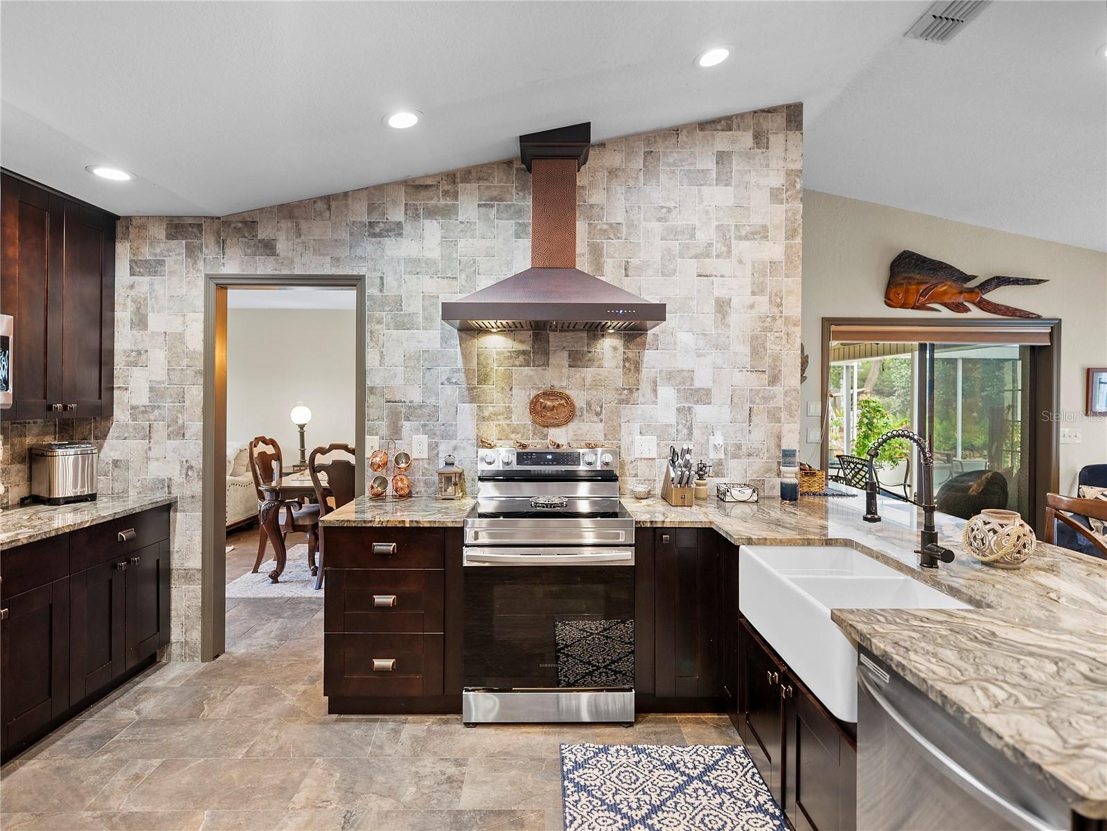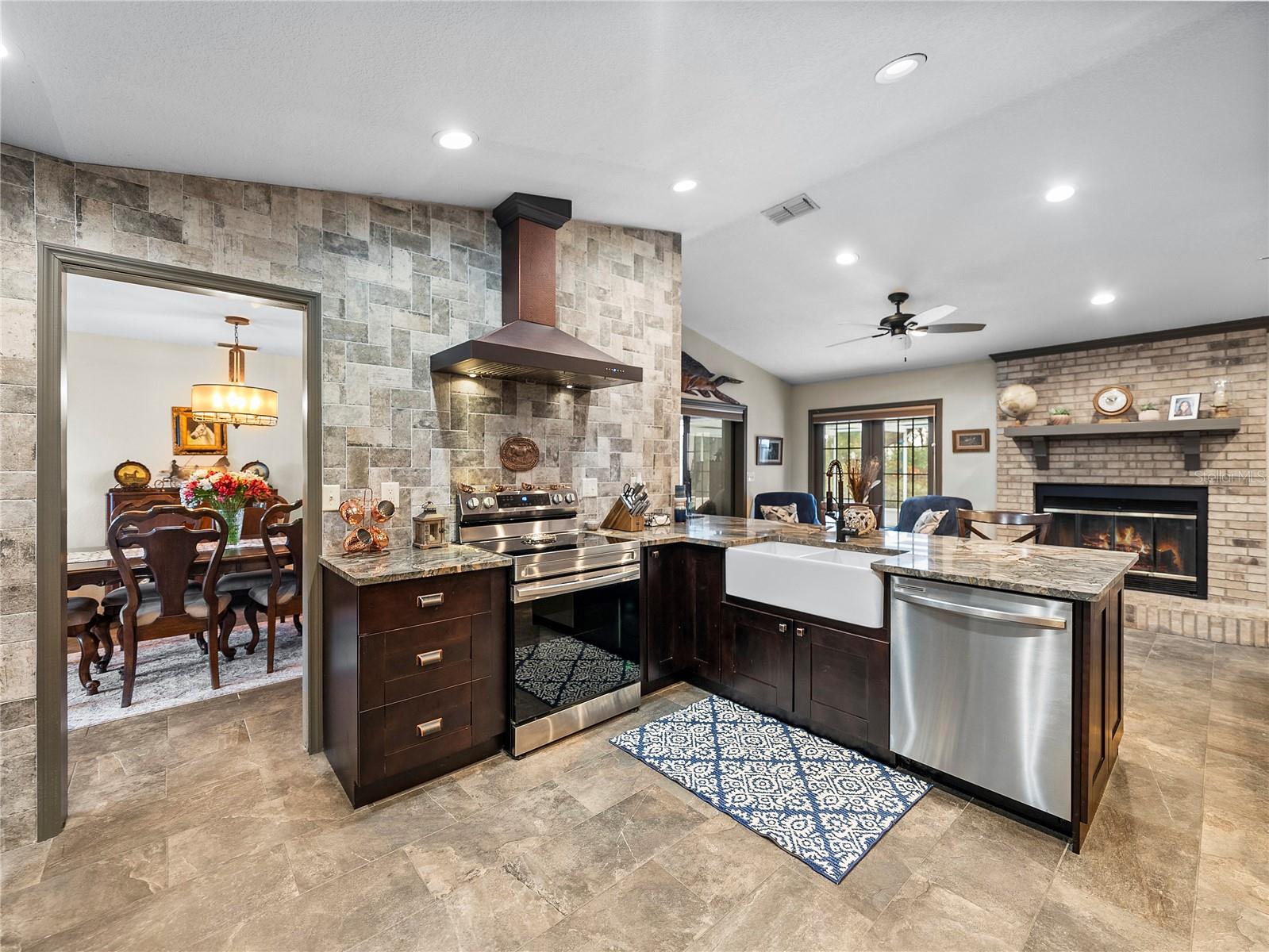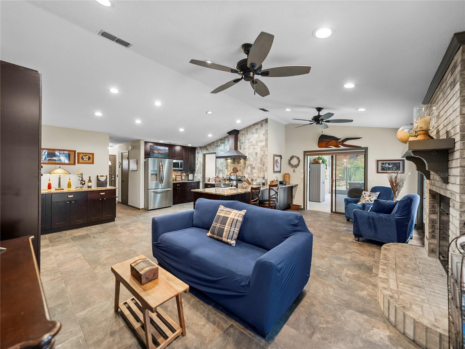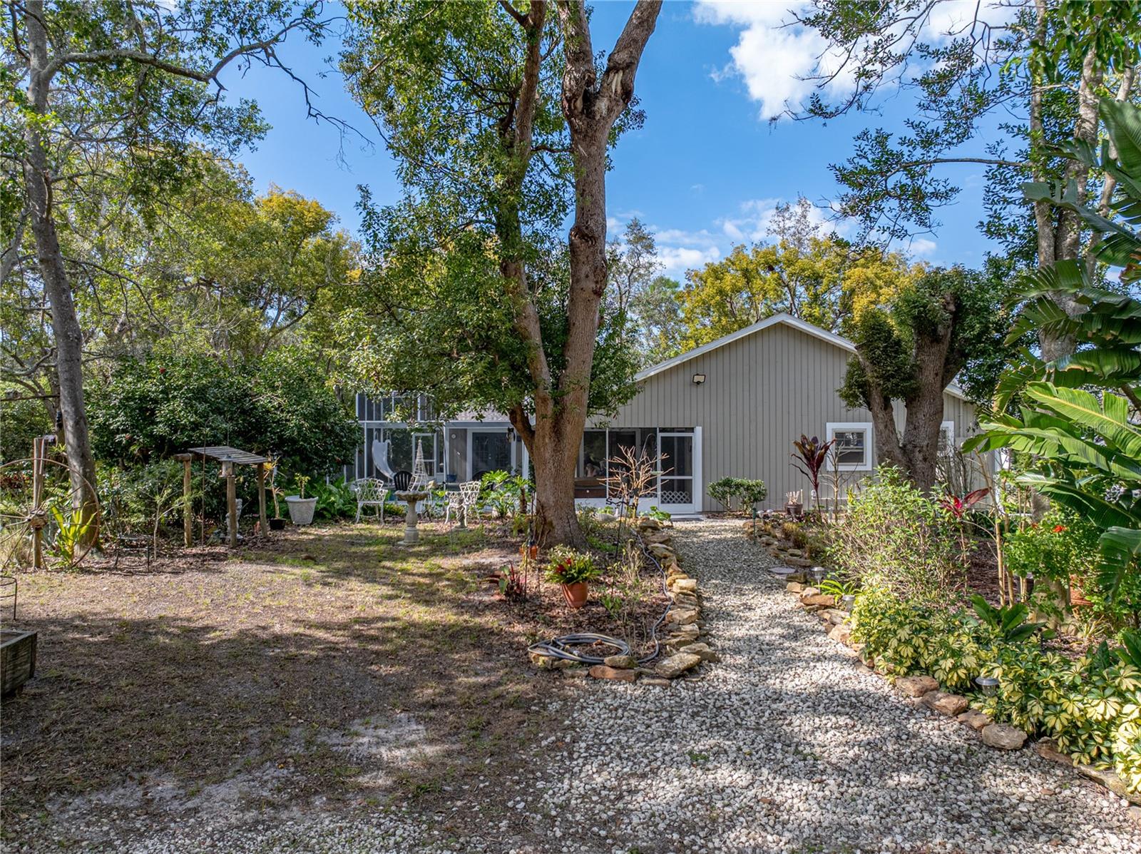 RARE DOUBLE LOT POOL HOME WITH AN ABUNDANCE OF MATURE LANDSCAPING FOR THE ULTIMATE PRIVATE OASIS-OR YOU CAN SPLIT THIS DOUBLE LOT INTO TWO LOTS WITH ENDLESS OPTIONS AND OPPORTUNITIES! Welcome to this absolutely stunning 3 bedroom, 2 bath, 2 car garage residence, meticulously maintained with a 2022 ROOF, a 2021 AC, and a host of other updates. As you step inside, you are greeted by the warm charm of imported Spanish porcelain tile flooring that flows seamlessly throughout the entire home. The spacious living room, featuring plenty of natural light through large windows, invites you to relax and unwind. An intimate but combined dining area flows into the kitchen and provides easy access to the serene pool area through French doors. The heart of this home, the chef’s kitchen is a true standout, with top-of-the-line Van Gogh granite countertops, custom wood soft-closing cabinets, and a unique hammered copper range hood set against a custom 90-degree herringbone pattern stone backsplash. Equipped with 2023 stainless steel appliances, a farmhouse sink, dual-tap kegerator, coffee bar, and a large walk-in pantry, this kitchen is as functional as it is beautiful! Overlooking the kitchen, a spacious family room invites entertaining with high vaulted ceilings, a brick-faced gas fireplace with a new insert, 2 seating areas, and several pool deck access points, including 2 sets of French doors and a sliding glass door. The primary suite offers a peaceful retreat with an expansive walk-in closet and a private ensuite bathroom complete with a walk-in shower, a new vanity, and a stone countertop. The guest bedrooms are on the opposite side of the home and are generously sized, each featuring large closets and sharing a guest bathroom with a newer tub/shower combo and a new vanity. Step outside to discover your own private paradise. The peaceful pool deck is surrounded by trees and features a resurfaced pool with a slide, a newer pool heater, and newer screens around the lanai. There’s also a hot tub, perfect for relaxing. The outdoor space is beautifully landscaped with mature trees, well-maintained garden areas, and various seating options, including a brick-built grill! Additional outdoor features include a custom-painted shed, and the property is fully irrigated for a lush, green lawn. Recent upgrades include a new roof (2022), new AC (2021), upgraded electrical system, new bathroom vanities, a fresh coat of exterior paint (2022), and much more. With all of these upgrades, unique features, and a convenient location near shoppings, restaurants, medical centers, and major highways- this property is truly a one-of-a-kind residence. Call us today for your private viewing!