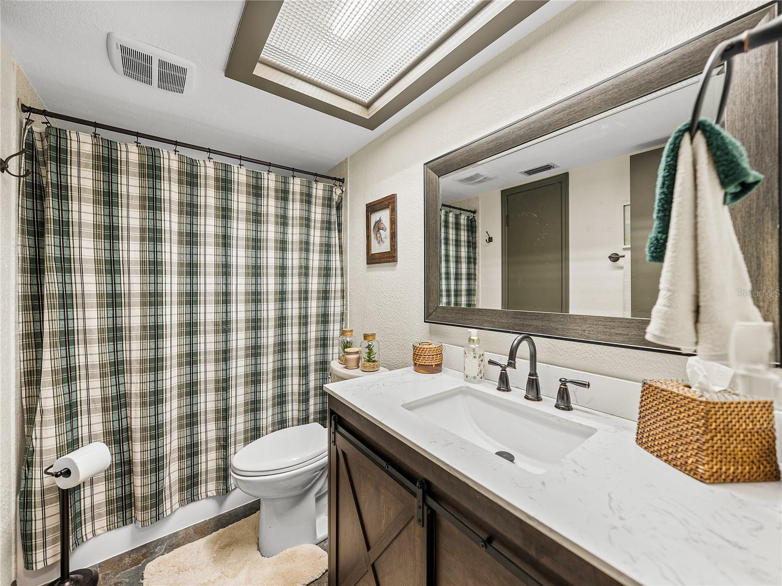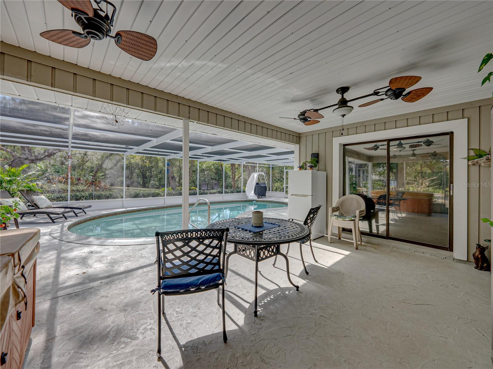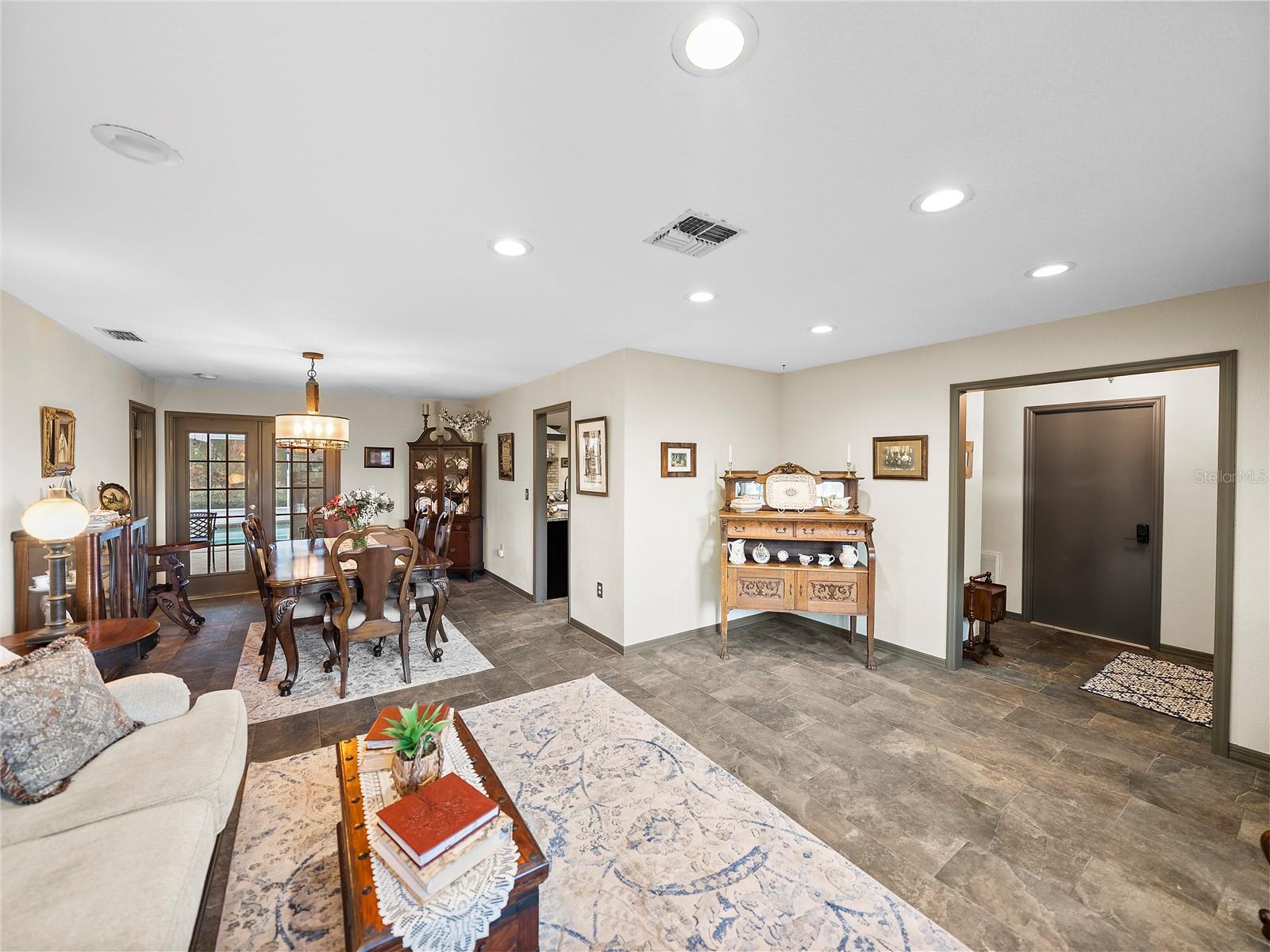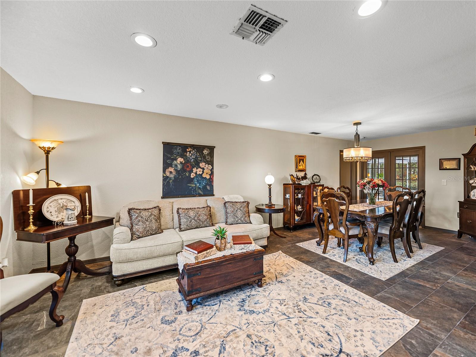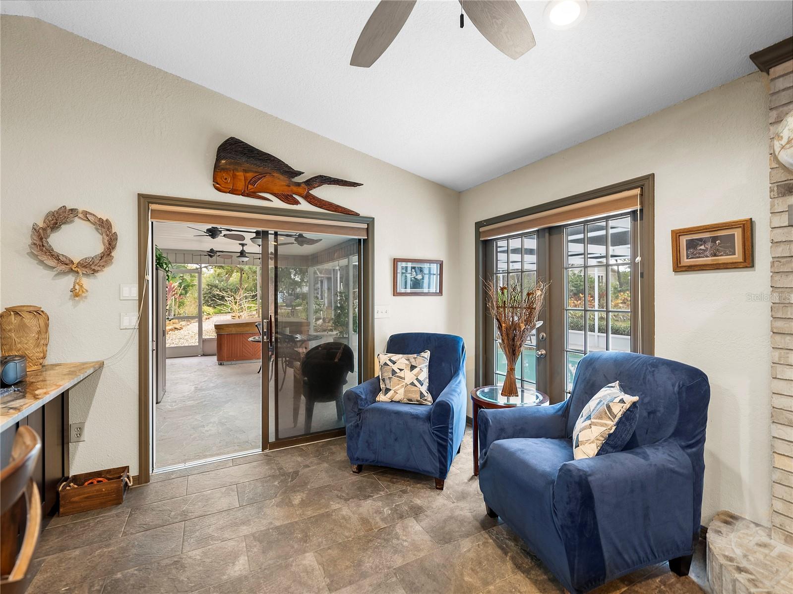 RARE DOUBLE LOT POOL HOME WITH AN ABUNDANCE OF MATURE LANDSCAPING FOR THE ULTIMATE PRIVATE OASIS-OR YOU CAN SPLIT THIS DOUBLE LOT INTO TWO LOTS WITH ENDLESS OPTIONS AND OPPORTUNITIES! Welcome to this absolutely stunning 3 bedroom, 2 bath, 2 car garage residence, meticulously maintained with a 2022 ROOF, a 2021 AC, and a host of other updates. As you step inside, you are greeted by the warm charm of imported Spanish porcelain tile flooring that flows seamlessly throughout the entire home. The spacious living room, featuring plenty of natural light through large windows, invites you to relax and unwind. An intimate but combined dining area flows into the kitchen and provides easy access to the serene pool area through French doors. The heart of this home, the chef’s kitchen is a true standout, with top-of-the-line Van Gogh granite countertops, custom wood soft-closing cabinets, and a unique hammered copper range hood set against a custom 90-degree herringbone pattern stone backsplash. Equipped with 2023 stainless steel appliances, a farmhouse sink, dual-tap kegerator, coffee bar, and a large walk-in pantry, this kitchen is as functional as it is beautiful! Overlooking the kitchen, a spacious family room invites entertaining with high vaulted ceilings, a brick-faced gas fireplace with a new insert, 2 seating areas, and several pool deck access points, including 2 sets of French doors and a sliding glass door. The primary suite offers a peaceful retreat with an expansive walk-in closet and a private ensuite bathroom complete with a walk-in shower, a new vanity, and a stone countertop. The guest bedrooms are on the opposite side of the home and are generously sized, each featuring large closets and sharing a guest bathroom with a newer tub/shower combo and a new vanity. Step outside to discover your own private paradise. The peaceful pool deck is surrounded by trees and features a resurfaced pool with a slide, a newer pool heater, and newer screens around the lanai. There’s also a hot tub, perfect for relaxing. The outdoor space is beautifully landscaped with mature trees, well-maintained garden areas, and various seating options, including a brick-built grill! Additional outdoor features include a custom-painted shed, and the property is fully irrigated for a lush, green lawn. Recent upgrades include a new roof (2022), new AC (2021), upgraded electrical system, new bathroom vanities, a fresh coat of exterior paint (2022), and much more. With all of these upgrades, unique features, and a convenient location near shoppings, restaurants, medical centers, and major highways- this property is truly a one-of-a-kind residence. Call us today for your private viewing!