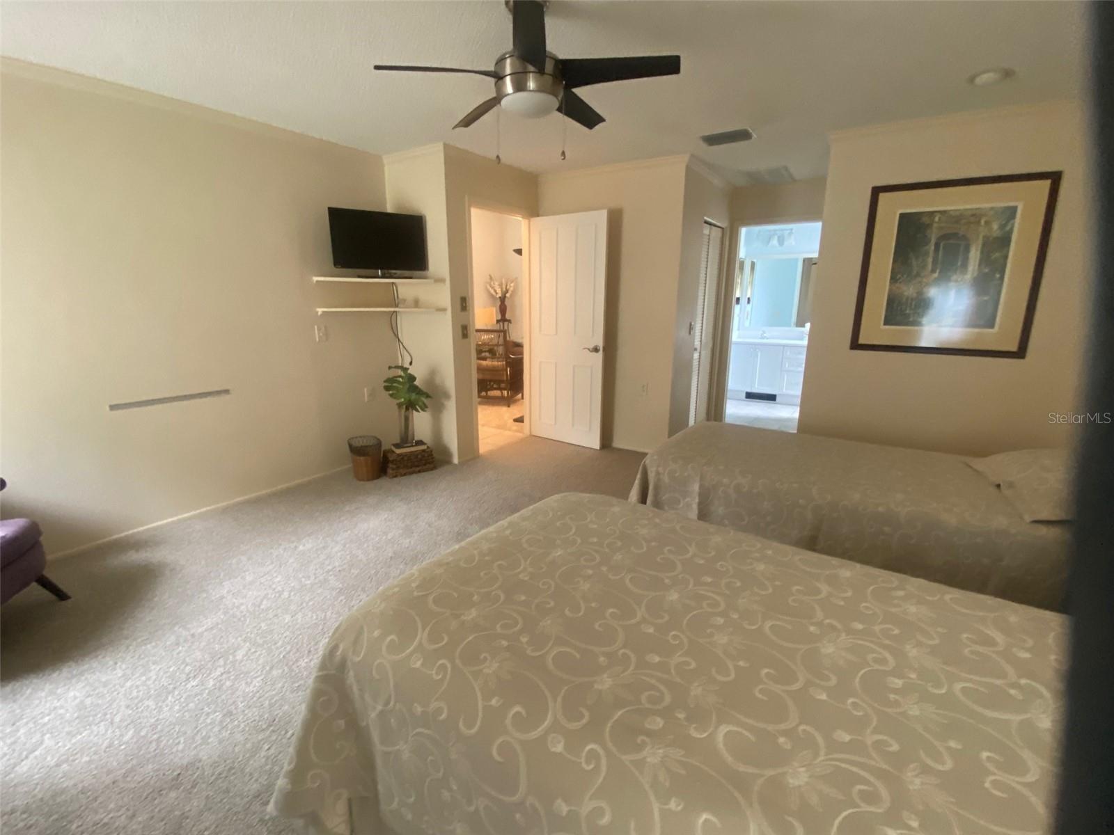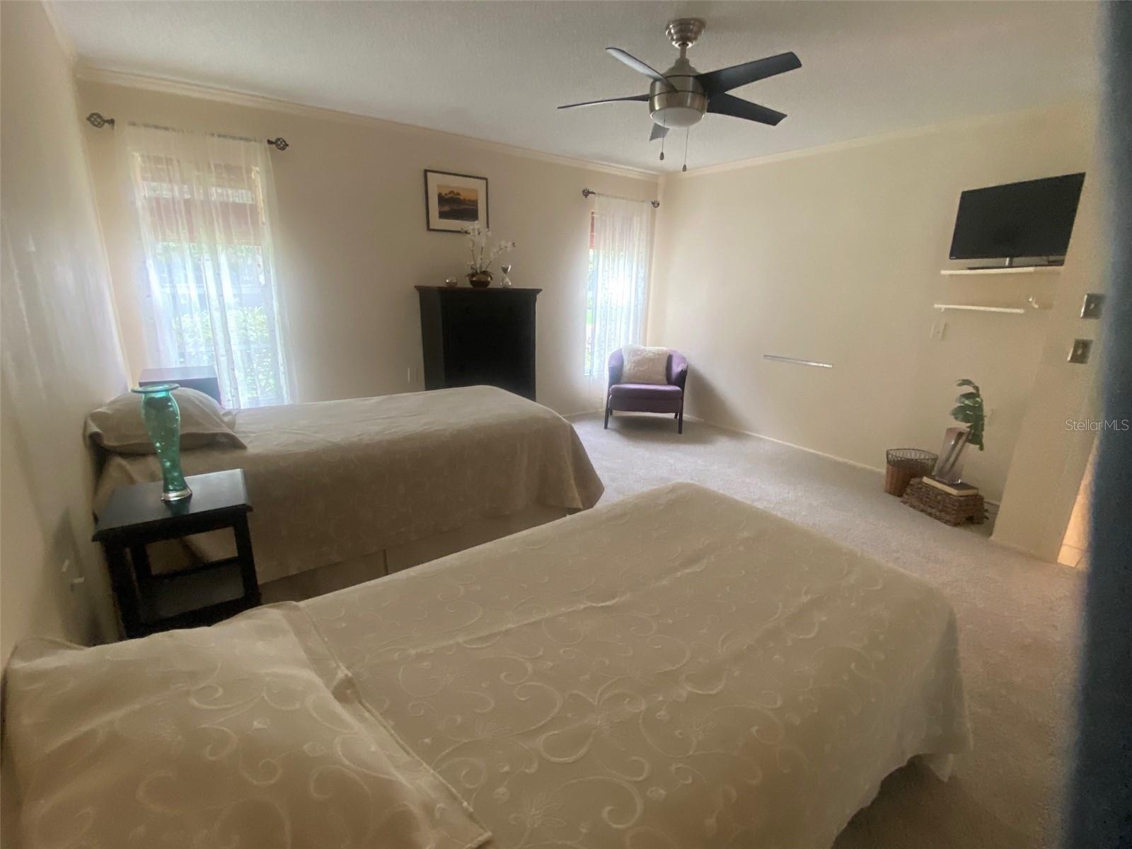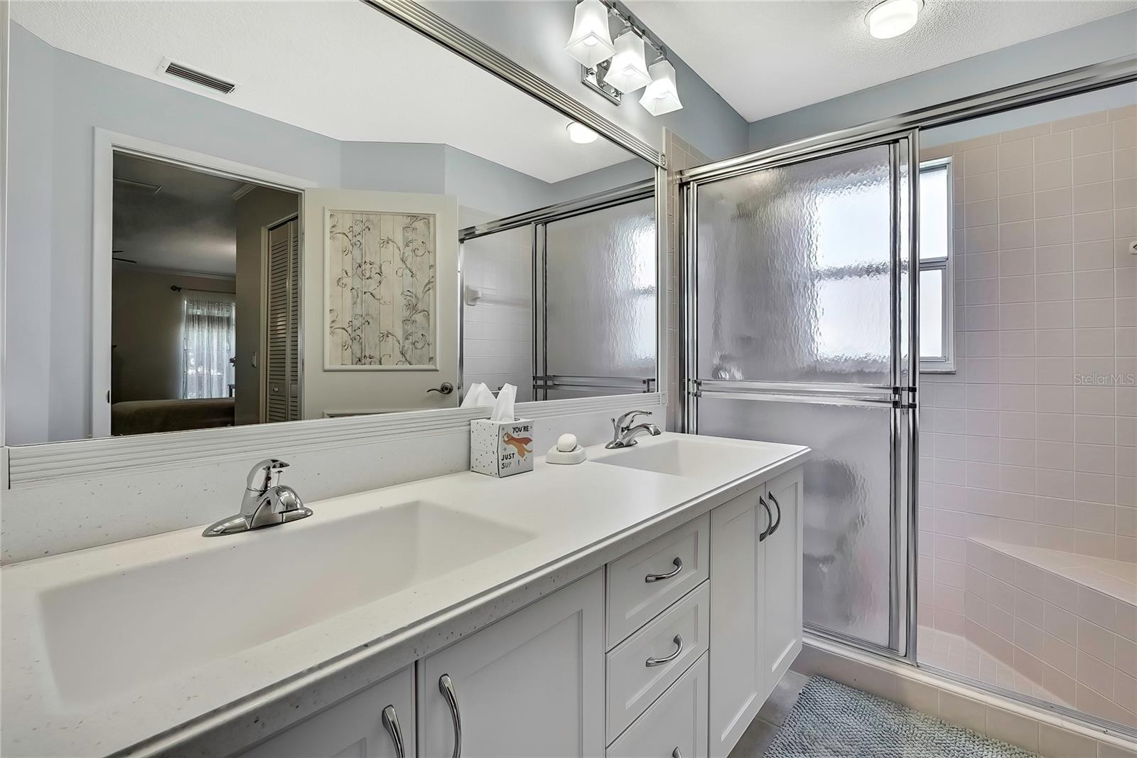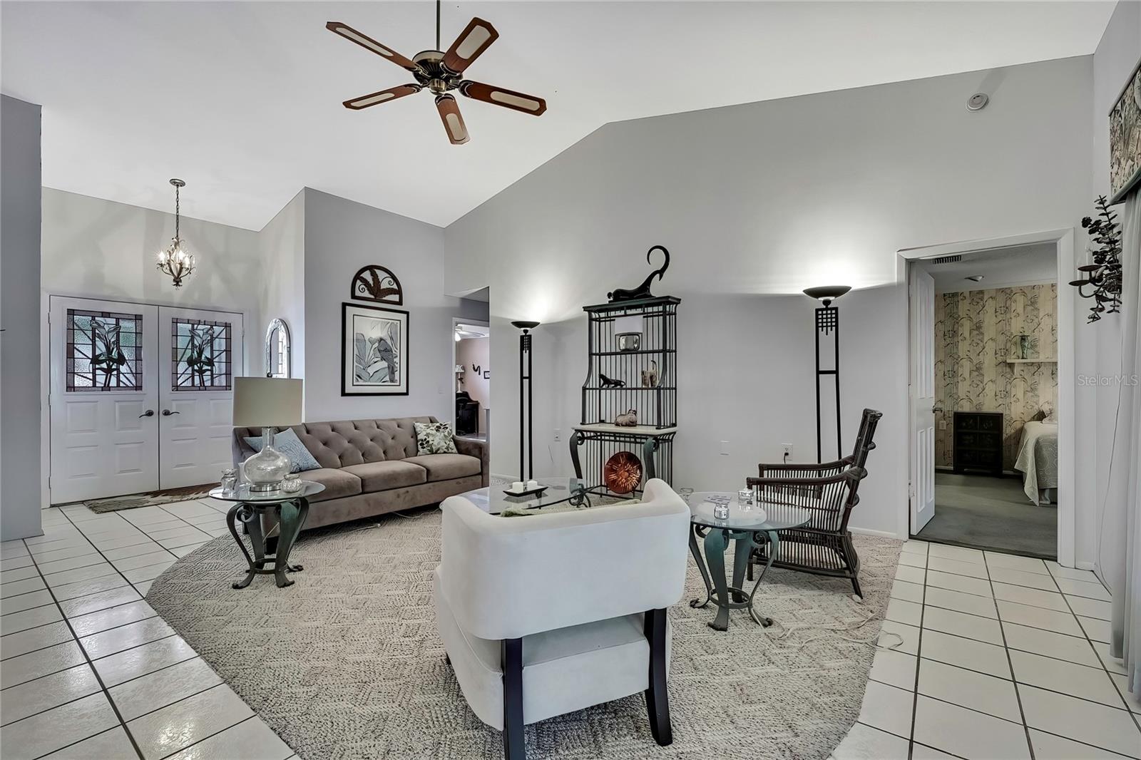 ********** MOTIVATED SELLER – WILL CONSIDER ALL OFFERS! ************************* Just painted! This beautiful home has a fresh new look with exterior paint and updates to several rooms inside, making it feel bright, clean, and move-in ready! Located in the highly sought-after Timber Pines 55+ gated community, this two-bedroom, two-bathroom home offers a two-car garage and open living areas with vaulted ceilings throughout. The welcoming front porch and double-door entry lead you into a spacious and well-kept interior. The great room opens into a large 12 x 22 family room that overlooks a private backyard with a paver patio—perfect for relaxing or entertaining. The updated kitchen features wood and glass cabinets, Corian countertops, stainless steel appliances, a cozy breakfast nook, and a large pantry. The oversized primary bedroom includes two walk-in closets and a spacious bathroom with double sinks, a walk-in shower with a glass door, and a built-in bench. The second bedroom also has plenty of space and its own walk-in closet. Additional updates include a new roof (2019), newer air handler, and updated windows (2009). Enjoy all the amazing amenities of Timber Pines, including multiple golf courses, a clubhouse, tennis courts, swimming pools, and a variety of social clubs and events. Don’t miss out—schedule your private showing today!