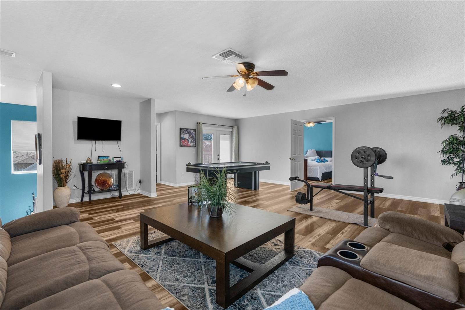 WOW! Photos do not even do this home justice, as gorgeous as they are! Tucked into the coveted Villages at Avalon, this fully renovated property has been detailed to the nines! Formerly a 3-bedroom, it now boasts 4 immaculate bedrooms and 3.5 baths! AND a bonus room and a media room in addition! Oversized driveway leads up to your 3-car garage! Fresh new look with exterior paint, new roof, 2 new AC systems, and all-new duct work throughout! Upon entering, you will love the natural lighting and open, spacious floor plan with a massive dining room/formal sitting room. Then, it opens up to a true chef's kitchen with gorgeous solid wood cabinets, granite countertops, dual ovens, a flat cooktop, and so much more. The beautiful living room separates the primary bedroom suite and the other two bedrooms on the first floor and opens to the incredible outdoor oasis and pool. The primary bedroom has gorgeous windows with that oasis view and a bathroom that will please everyone with a garden tub and separate oversized shower, secluded water closet, and dual sinks. Bedrooms 2 and 3 are separated by a "jack & jill" full bathroom with a new glass door completing that shower. No detail was overlooked downstairs, BUT WAIT UNTIL YOU SEE UPSTAIRS! Brand new luxury vinyl flooring will lead you up the stairs to the second level that includes a spacious media room and a separate 4th bedroom, and inside that bedroom is a half bath and a MASSIVE WALK-IN CLOSET. This second-level media room also has its own private balcony that's tiled and has an option for a covered awning or wide open if you prefer. Let's head back downstairs to that outdoor pool oasis! Brand new pump, saltwater system self cleaning HUGE heated pool and spa, brand new pavers surround patio and oversized fenced in yard with lighting, shed and sprinkler system! There are honestly more new features than the system allows characters in this write-up! So, let's schedule your showing today!