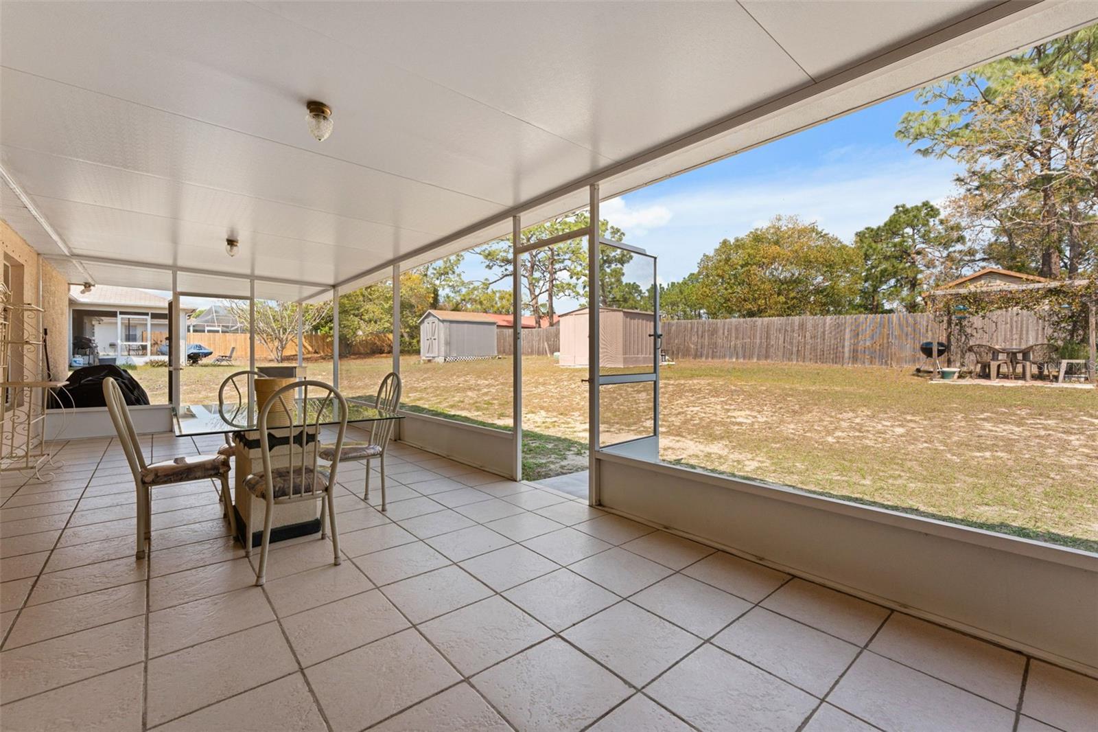 This well maintained 4-bedroom, 2-bathroom home, built by Maronda Homes, offers high quality concrete block construction, providing exceptional insulation and energy efficiency. The split floor plan places the primary suite separately from the other three bedrooms, offering privacy and convenience. The interior features matching 16x16 ceramic tiles throughout, NO CARPET, making maintenance effortless. With a formal dining room, breakfast nook, family room, and a separate living room, this home provides plenty of space for entertaining and everyday living. The kitchen showcases granite countertops, solid wood cabinetry, and an open concept design that seamlessly connects to the main living spaces. A large screened in lanai leads to a spacious backyard with a partially fenced yard and a concrete-base shed for extra storage. The two car garage and oversized driveway accommodate up to six vehicles, perfect for a multi car household, guests, or a car enthusiast. Hurricane shutters stored in the garage will convey, offering additional security during storm season. No HOA restrictions allow you to park your boat, RV, or commercial vehicle right at home. This home is located in a thriving community with parks, golf courses, walking trails, and top rated schools and is conveniently near some of the area's best attractions: 6 miles from Weeki Wachee Springs, featuring mermaid shows, kayaking, and Buccaneer Bay water park, 13 miles from Pine Island Beach, a beautiful Gulf Coast destination. 4 miles from Prime 88 Steakhouse, offering fine dining with exceptional steak and wine pairings. 10 miles from Downtown Brooksville, known for its history, unique shopping, and dining options. With a newer roof (2021) and AC (2022), both under transferrable warranties, this home is truly move in ready. Schedule your showing today before it's gone.