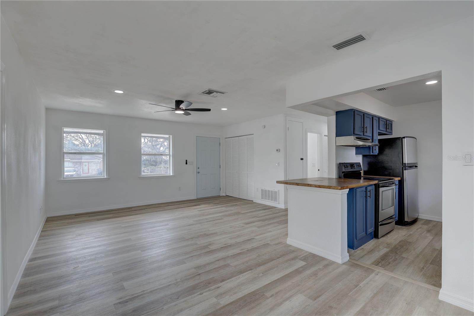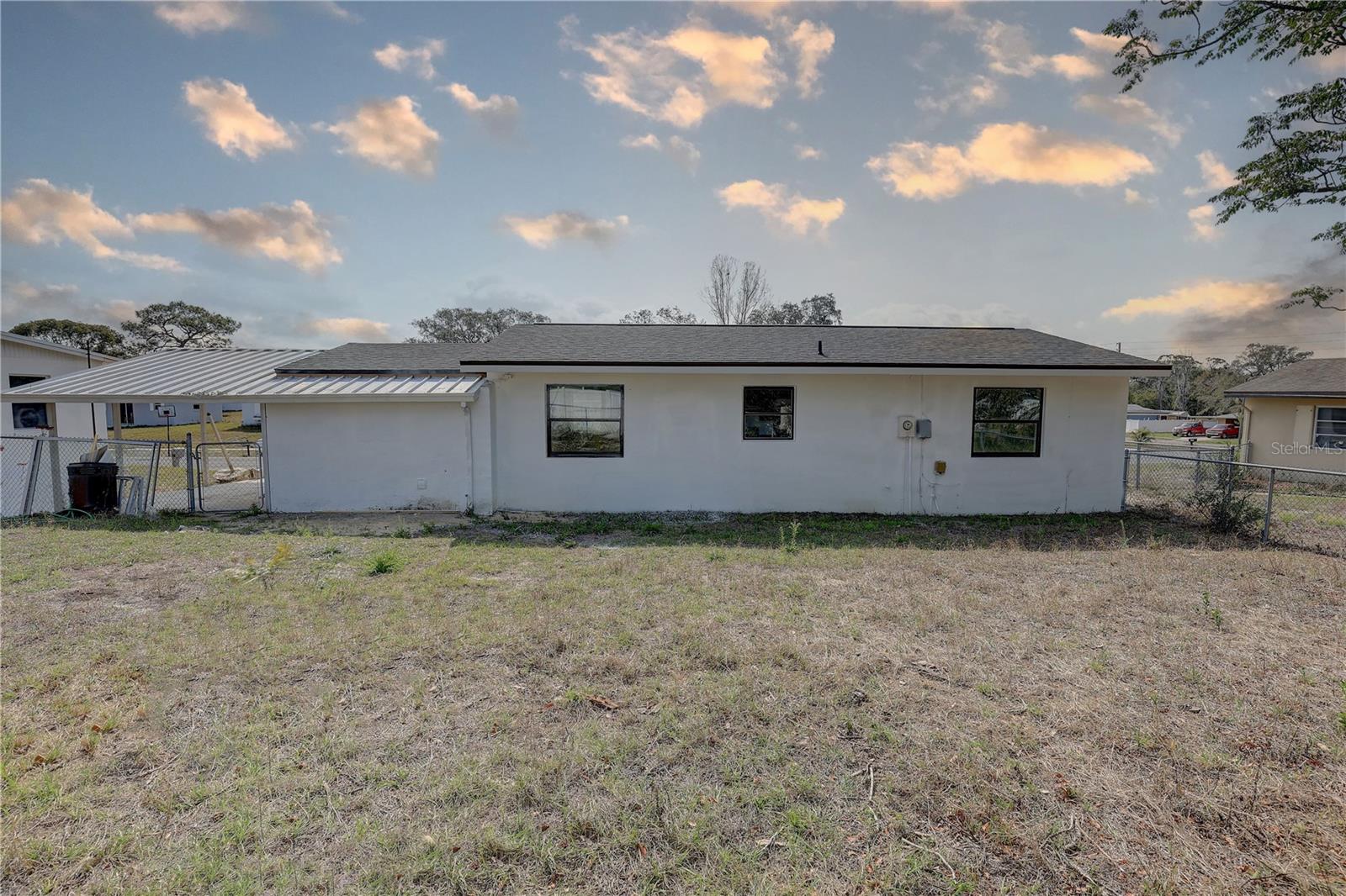 Welcome to 417 Hollyhock Lane – a delightful 3-bedroom, 2-bathroom home that perfectly combines modern comforts with timeless charm. Nestled in a serene neighborhood, this residence boasts an open-concept layout designed to maximize space and natural light. Step inside to find a beautifully appointed interior where luxury vinyl flooring flows seamlessly throughout the living, dining, and kitchen areas, offering a contemporary aesthetic while ensuring durability. The heart of this home is the spacious, thoughtfully designed kitchen, equipped with a sleek cooktop, convection oven, range hood, and refrigerator, making meal prep a joy. Whether you're hosting family gatherings or enjoying a quiet evening, the open layout ensures you’re always connected to the heart of the home. Ceiling fans enhance the airiness of each room, providing a cool, comfortable atmosphere. The primary suite is a true retreat, offering a generous layout with a built-in closet for excellent storage. Its en-suite bathroom creates a private sanctuary for relaxation, making it the ideal place to unwind. On the opposite side of the home, the split-bedroom design ensures privacy and versatility. Two additional well-sized bedrooms, each with built-in closets, share a spacious second bathroom, offering flexibility for family, guests, or a home office. Outside, the charm continues with a welcoming front porch, perfect for sipping morning coffee or enjoying the peaceful surroundings. The fully fenced yard, with secure chain-link fencing, offers a safe space for pets, children, or outdoor activities. The home is also equipped with practical features, such as rain gutters to manage stormwater, a dedicated washer/dryer hookup, and a newly installed shingle roof, ensuring peace of mind for years to come. Additional highlights include central air conditioning for year-round comfort, a covered carport for sheltered parking, and sturdy block construction for added durability. The property is situated on a generous 7,500-square-foot lot with paved streets and sidewalks, offering a quiet retreat just minutes from the natural beauty of Hernando Beach and Weeki Wachee Springs. Whether you're looking for your forever home or a smart investment opportunity, 417 Hollyhock Lane is ready to welcome you. Don’t miss the chance to make this charming property yours!