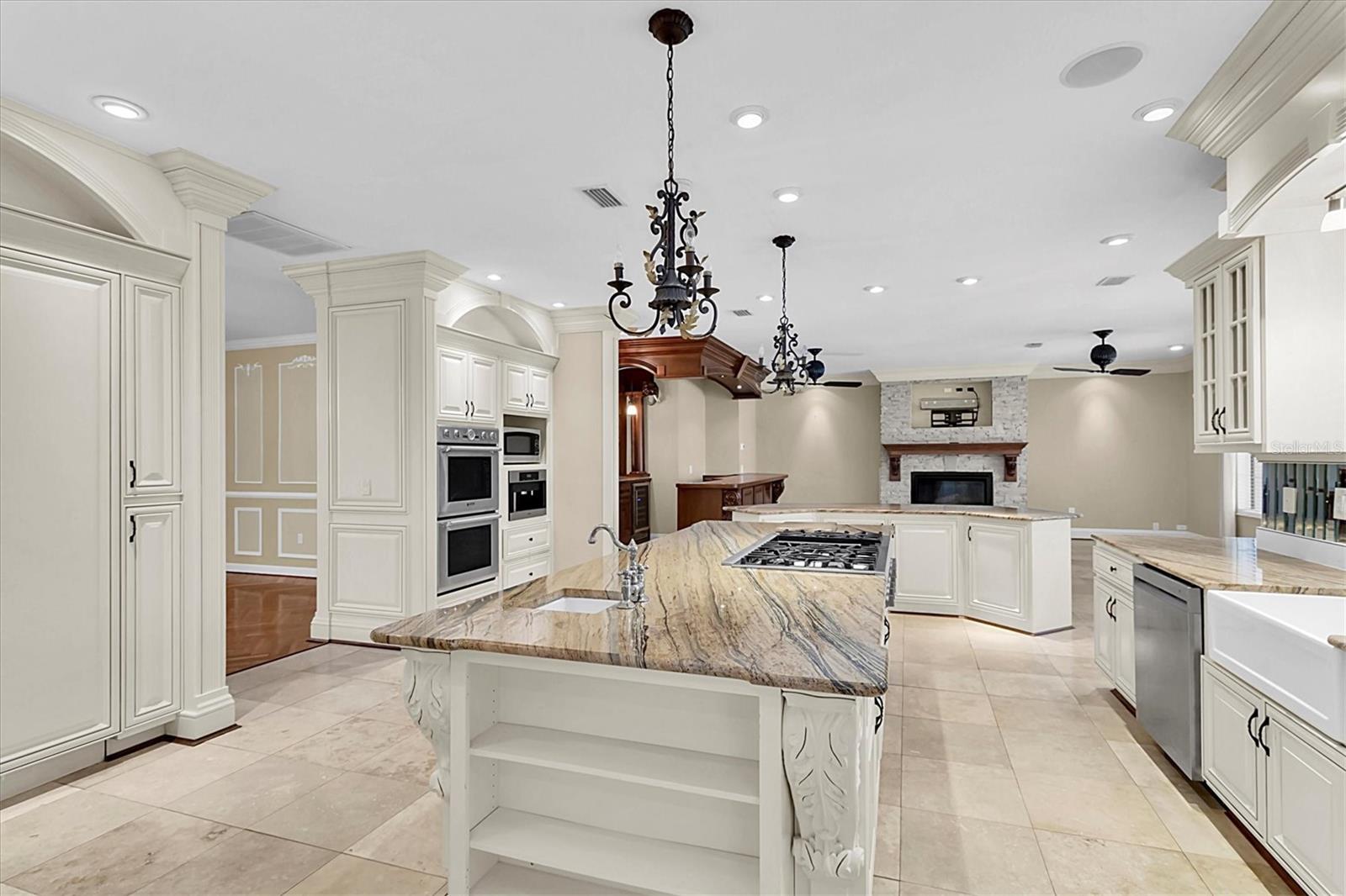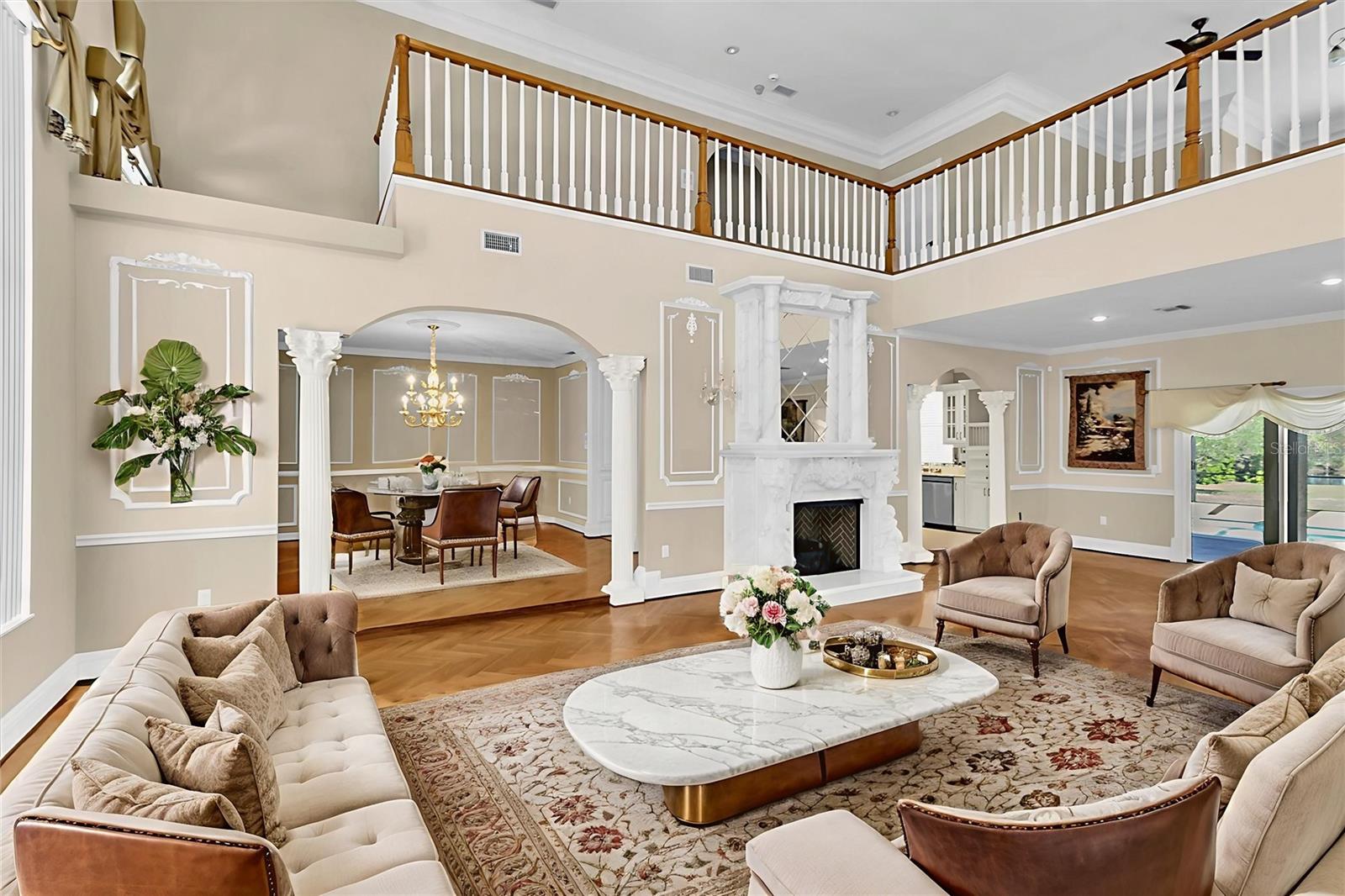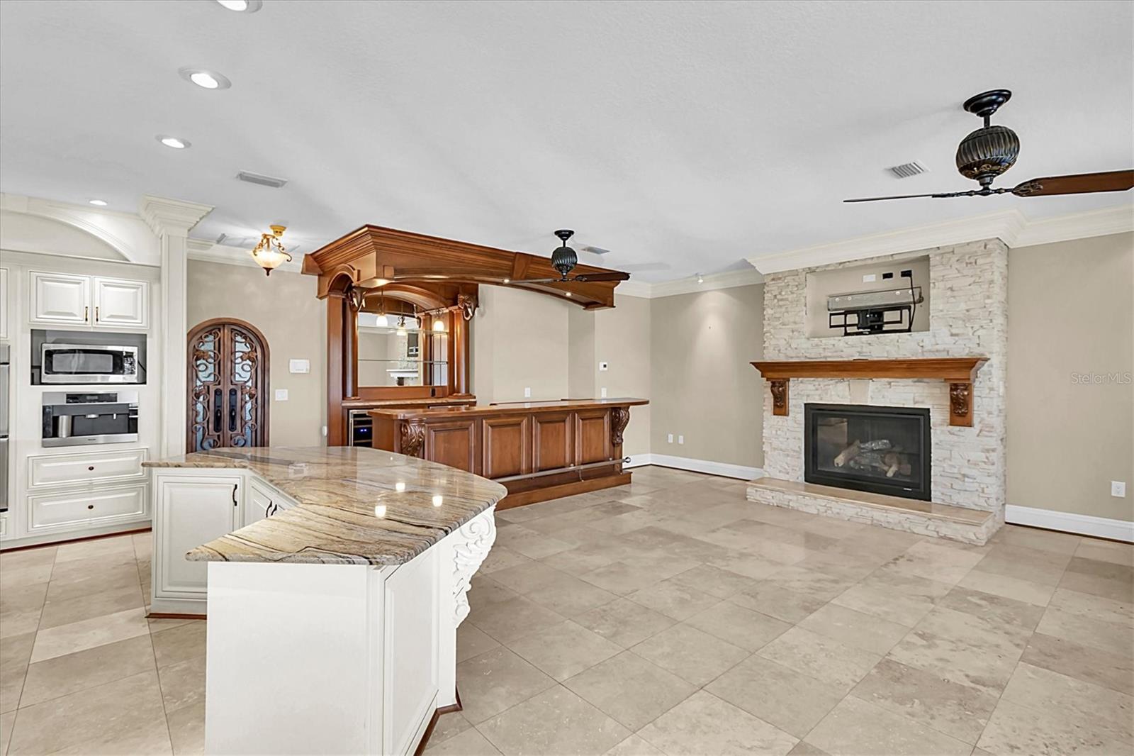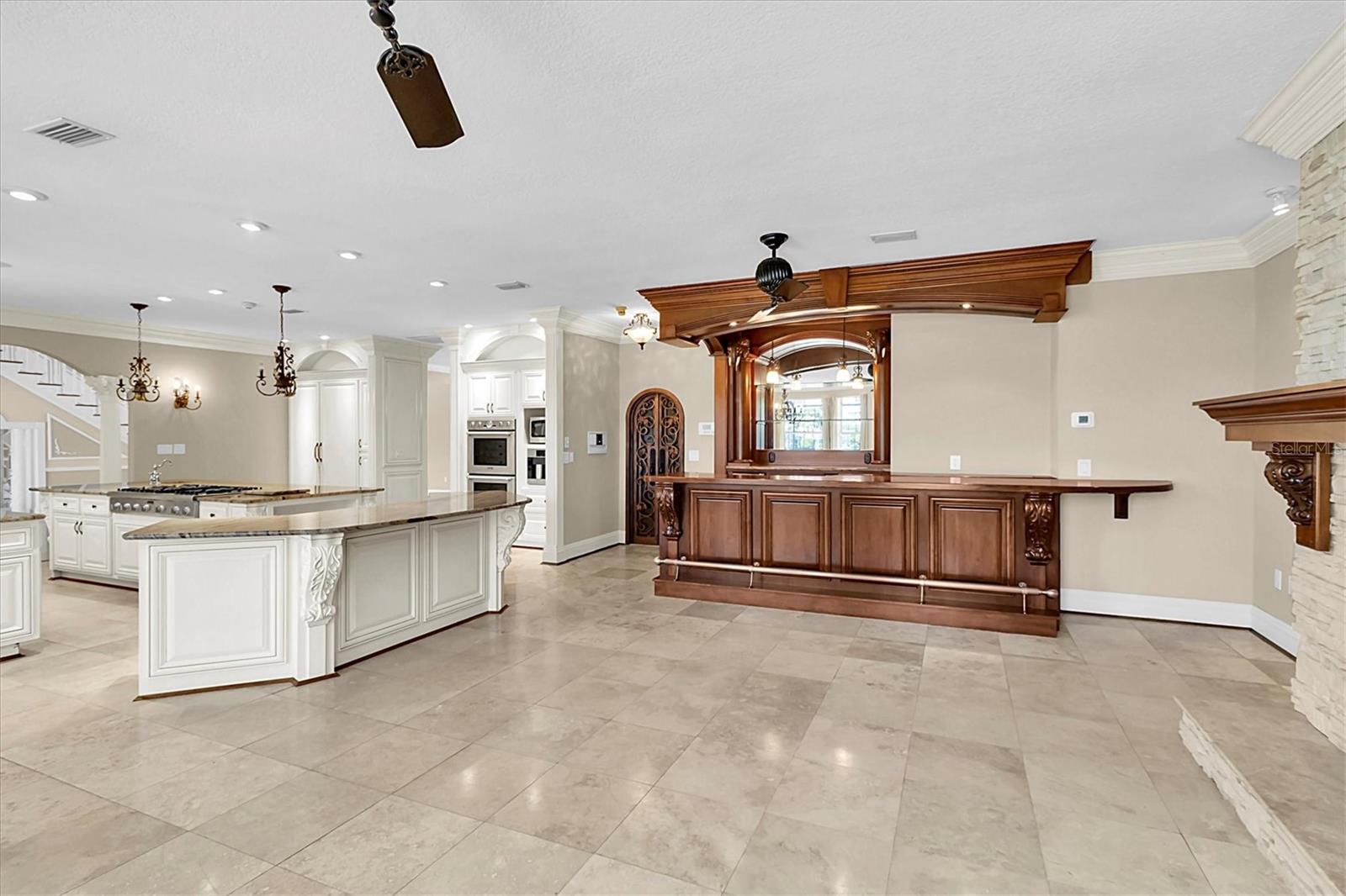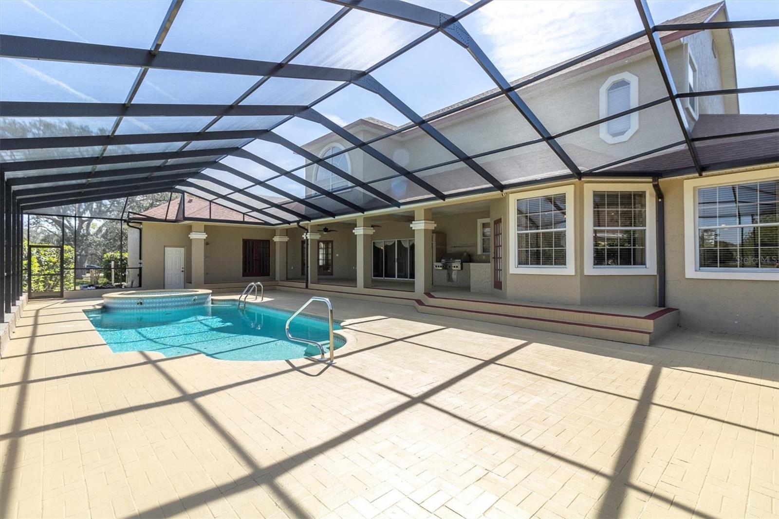 One or more photo(s) has been virtually staged. One or more photos have been virtually staged 4404 Lake in the Woods which features 4 Bedrooms 3.5 Bathroom Garage: 3-car Living Space of 5,410 sq. ft. The home has undergone significant enhancements to ensure a contemporary living experience with a new roof in 2023 enhancing the home's structural integrity and aesthetic appeal. Upgraded Air Conditioning (2022 & 2018): the home maintains a comfortable environment year-round. The home's interior is thoughtfully designed for both luxury and functionality. With a grand entrance double leaded glass front doors open to a spacious living area with soaring ceilings and a dazzling crystal chandelier, craved marble gas fireplace setting the tone for the home's elegance. The gourmet kitchen is equipped with high-end appliances, ample counter space, and a layout that caters to both casual meals and formal entertaining along with a second fireplace, a wood bar with wine cellar, and views of the pool. The primary bedroom is on the first floor along with the primary bathroom fit for a king or queen with a towel warmer, stand-up showing, sauna tub, and a second washer and dryer hookup for the convenience of the owner. The beautiful wood staircase that will take you to the 23 ft. x 23 ft. loft area serves as a flexible space for a billiard room, play area, or additional living quarters. The outdoor spaces are designed to maximize the enjoyment of Florida's beautiful climate. Let’s not forget the outdoor shower and bedroom and bathroom for your guess. Expansive Pool Area The 30 ft. x 63 ft. pool deck offers ample space for sunbathing, socializing, and enjoying the picturesque lake views. The pool also has a new pool enclosure in 2024 The outdoor kitchen includes a built-in Thermador grill and a beer refrigerator, making outdoor cooking and entertaining a delight. Lush Landscaping 0.74-acre lot features palm trees, rock beds, a water fountain in the front yard with Curb-A-Lawn edging, irrigation well, creating a verdant and inviting outdoor space. Lake in the Woods is renowned for its serene environment and exceptional amenities: The community offers 24/7 staffed, gated access, ensuring a secure and private living environment. Residents can enjoy tennis courts, a pickleball court, a dog park, fishing on the lake, an island pavilion, and scenic walking trails. Convenient Location situated near the Gulf of Mexico, local businesses, hospitals, and major highways, Lake in the Woods provides both tranquility and accessibility.