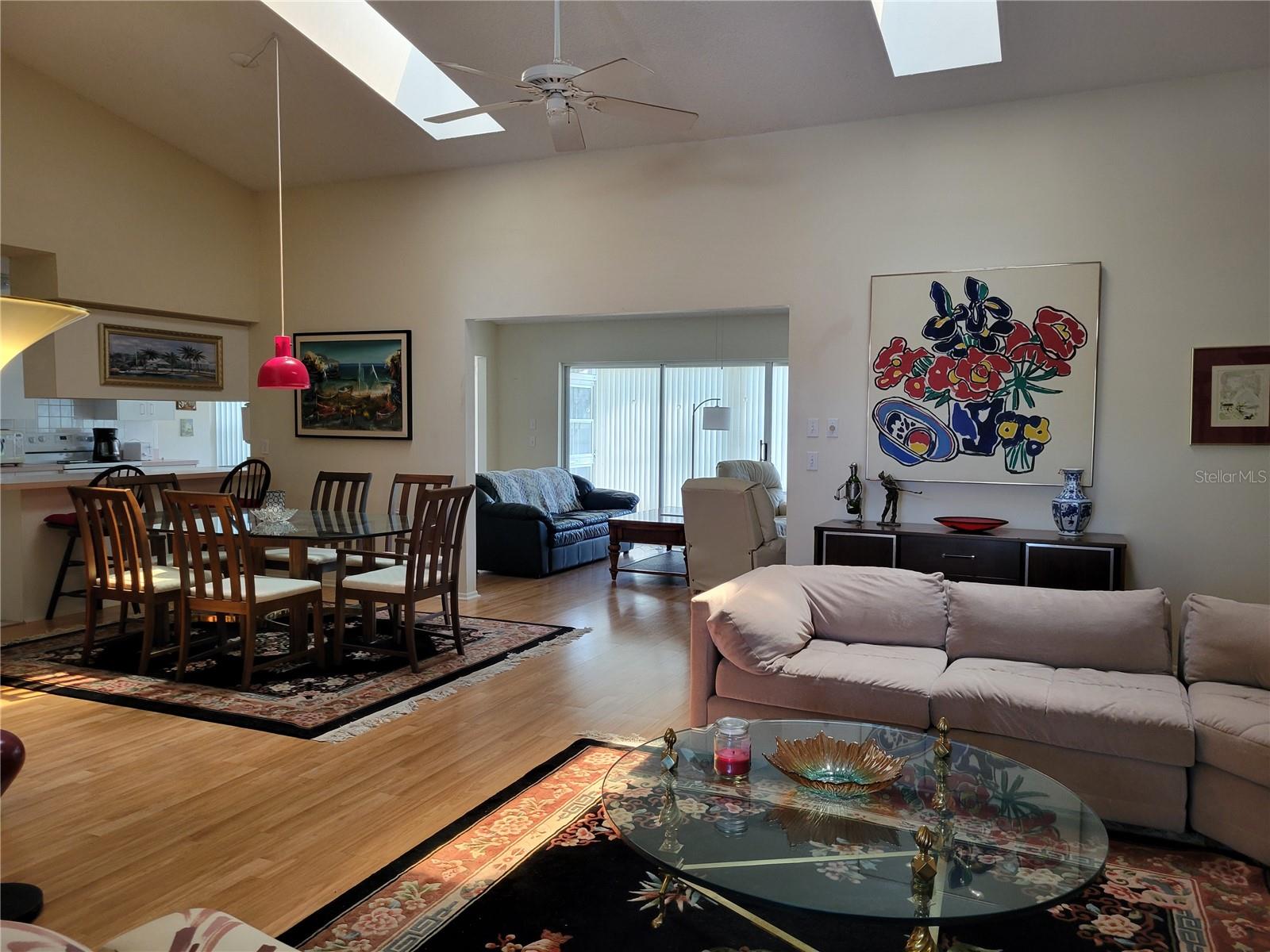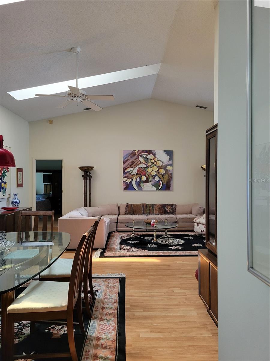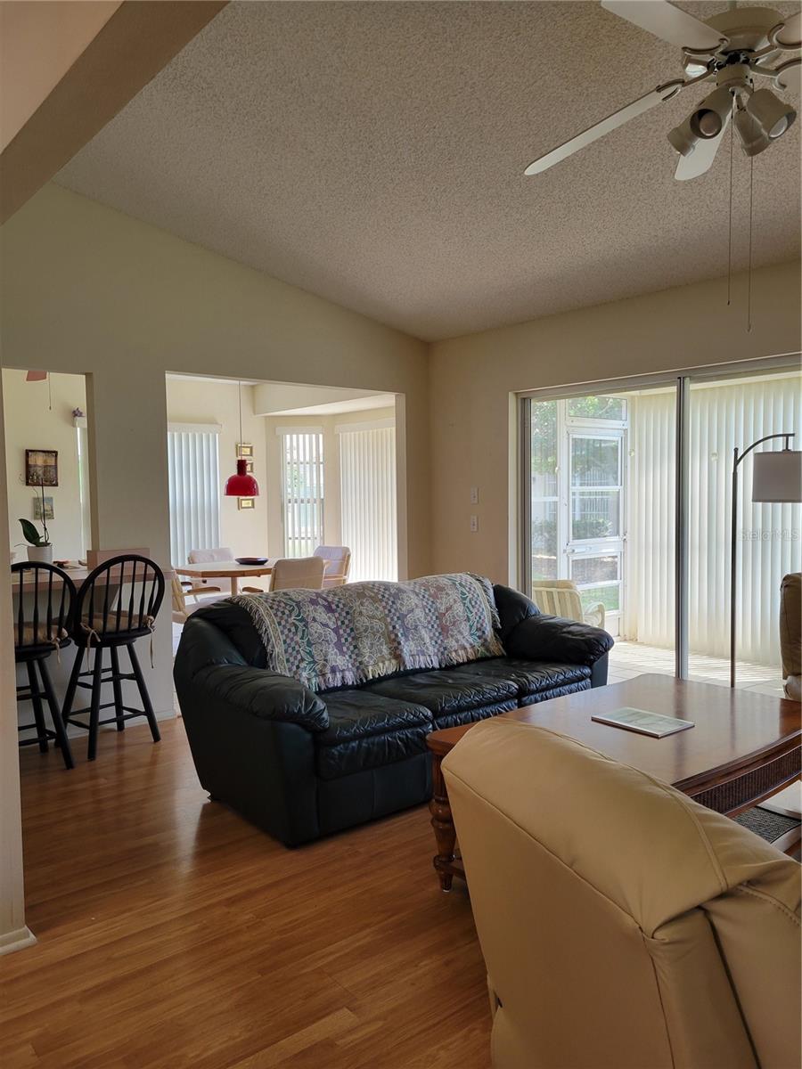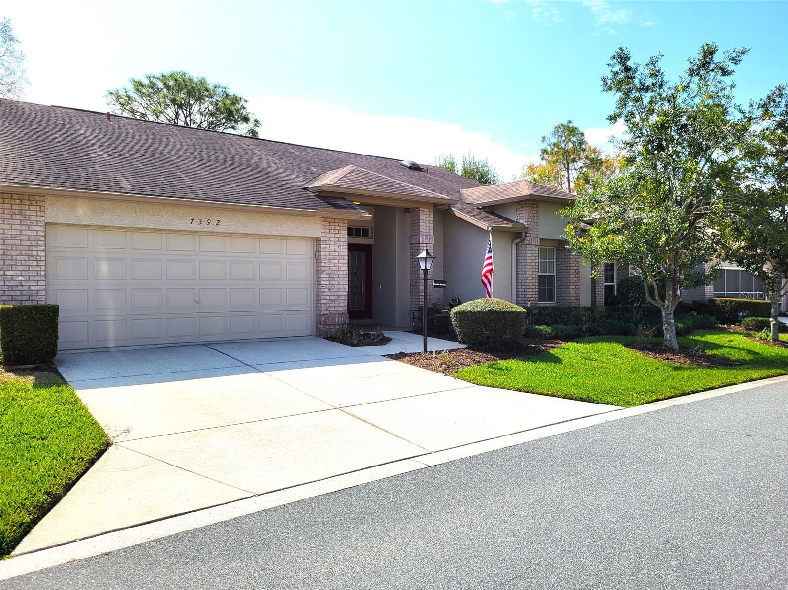 Welcome to this spacious, 1700+ s/f, maintenance-free villa, 45 MINUTES NORTH OF DOWNTOWN TAMPA in Timber Pines, one of Hernando County’s MOST ACTIVE, 55+ COMMUNITIES! Once inside either of the 2 GUARDED ENTRANCES to this meticulously maintained, 1,400-acre complex, you’ll be awed by the serene landscape of natural wildlife, walking trails, and multiple golf courses that wind through the various enclaves of villas and single-family homes. This particular, CONTEMPORARY STYLE villa – with its enchanting, 15 X 22’ GREAT ROOM (combination ‘formal’ living and dining area) with soaring, 14’ CEILINGS and SKYLIGHTS that flood it with natural light – boasts ONE OF THE MOST SOUGHT AFTER LAYOUTS in all of Timber Pines. Beyond the Great Room is the more casual, 11’ X 21’ FAMILY ROOM that overlooks the SCREENED PATIO and adjacent space for outdoor grilling. At the front of the unit is the 1ST OF 2 GENEROUSLY SIZED BEDROOMS (ALSO NICE AND BRIGHT), which could even 'double' as a den or hobby room. Toward the back of the Great Room is the entrance to the 15’ X 16’ MASTER BEDROOM, a 7’ X 11’ Ensuite Bathroom with DOUBLE SINKS and a SHOWER (no tub), plus an adjoining hallway with TWO (2) SEPARATE, WALK-IN CLOSETS. On the opposite side of the home, adjacent to both the formal dining area and family room, is a fully equipped, GALLEY KITCHEN (mostly original, but with all 'NEWER' APPLIANCES and an adjoining BREAKFAST NOOK OVERLOOKING THE PATIO AND SMALL GREEN SPACE in back). Adjacent to the entry to the kitchen is a SMALL LAUNDRY (with washer, dryer, and laundry tub) that leads to the 2-CAR GARAGE, where you’ll find a gorgeous, 'LIKE-NEW' YAMAHA GOLF CART that's INCLUDED with the purchase of this villa! Not a golfer? No worries…this community has something for everyone, including: …a NEW, STATE-OF-THE-ART FITNESS & WELLNESS CENTER, 2 GEOTHERMAL POOLS, HOT TUBS, TENNIS and PICKLE BALL COURTS, and other facilities for the ‘healthy-minded’ … plus an impressive PERFORMING ARTS CENTER, huge ARTS & CRAFTS AREA, and WOODWORKING SHOP for the more ‘creative-minded’ residents. For everyone else, there are OVER 100 CLUBS and other community activities. So, if you like what you see, you better call us TODAY to arrange a tour before it’s gone!