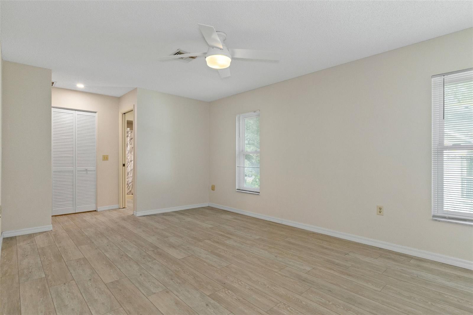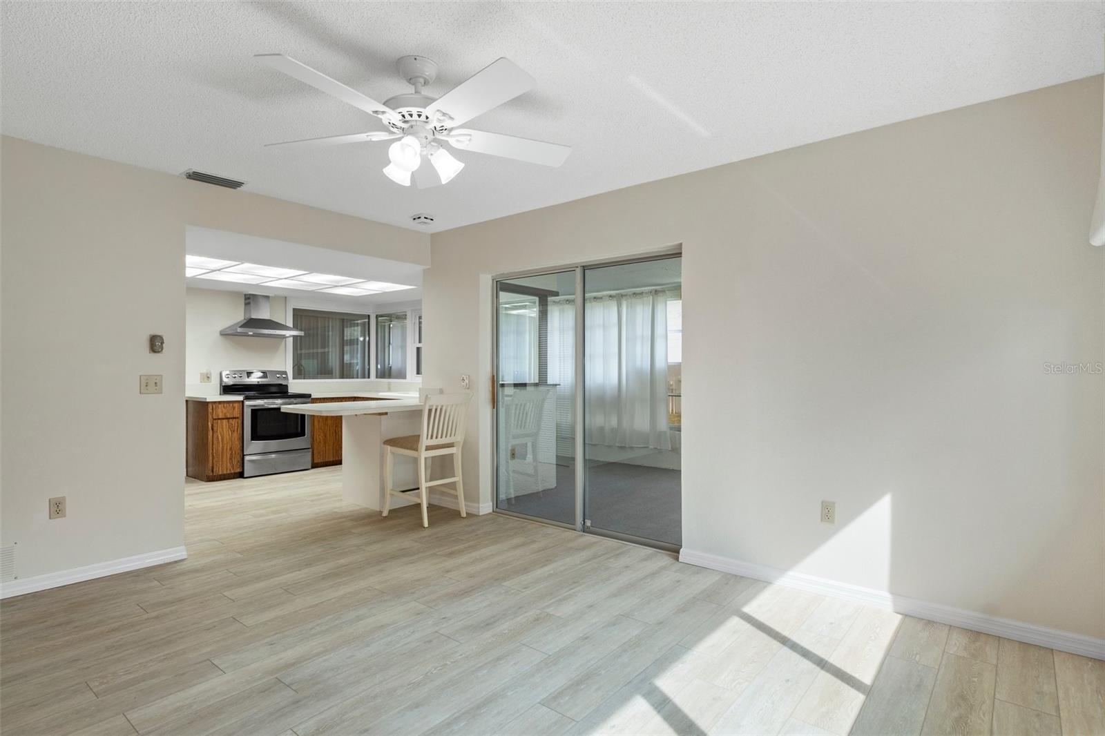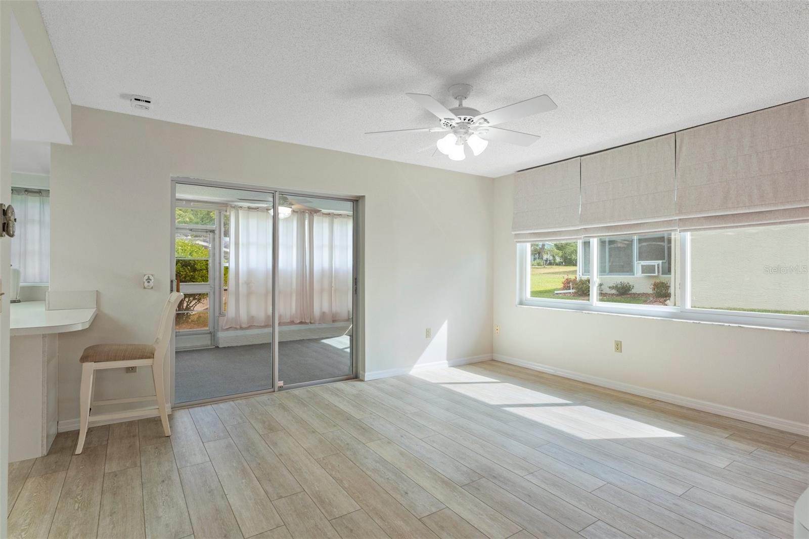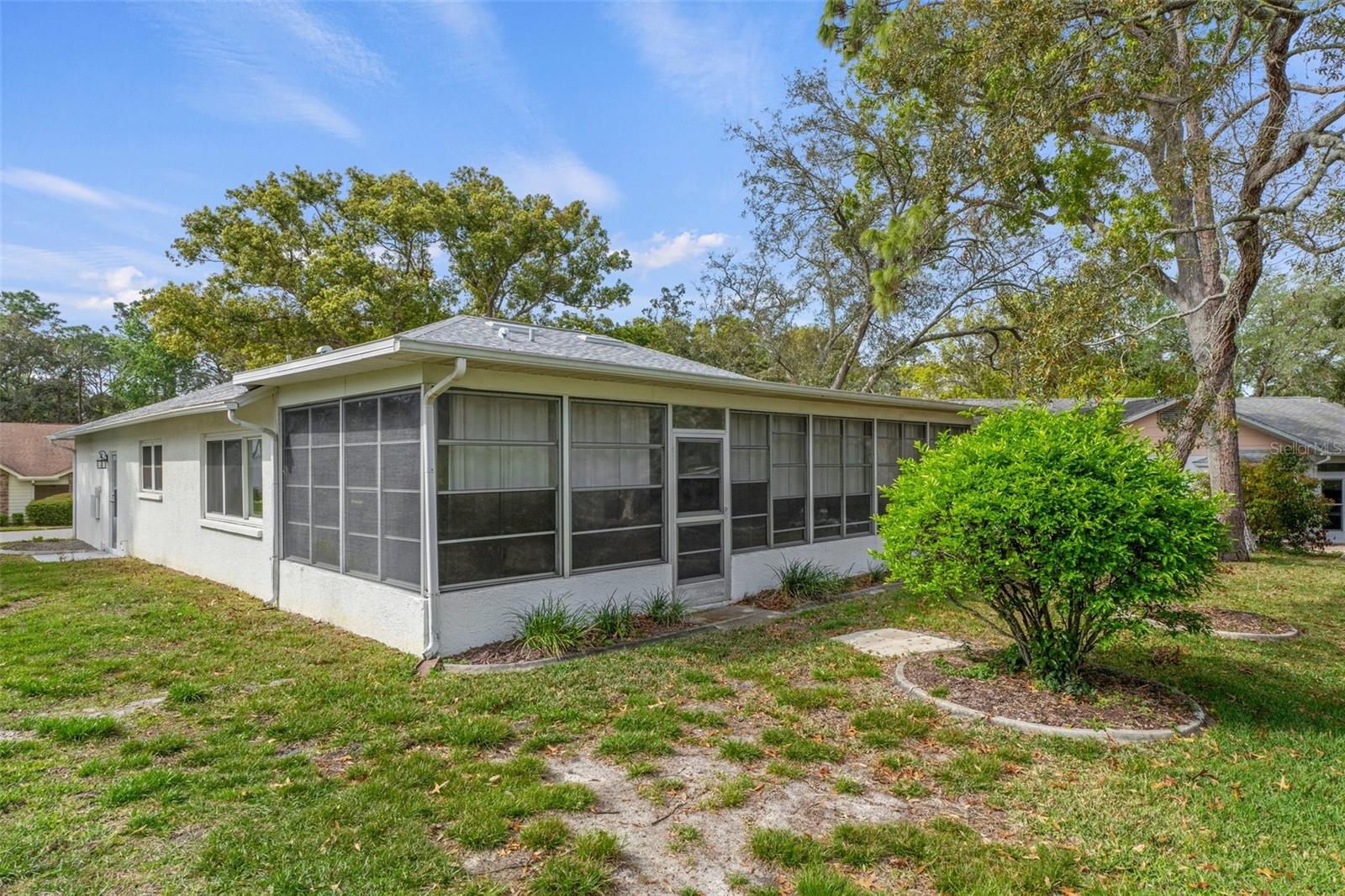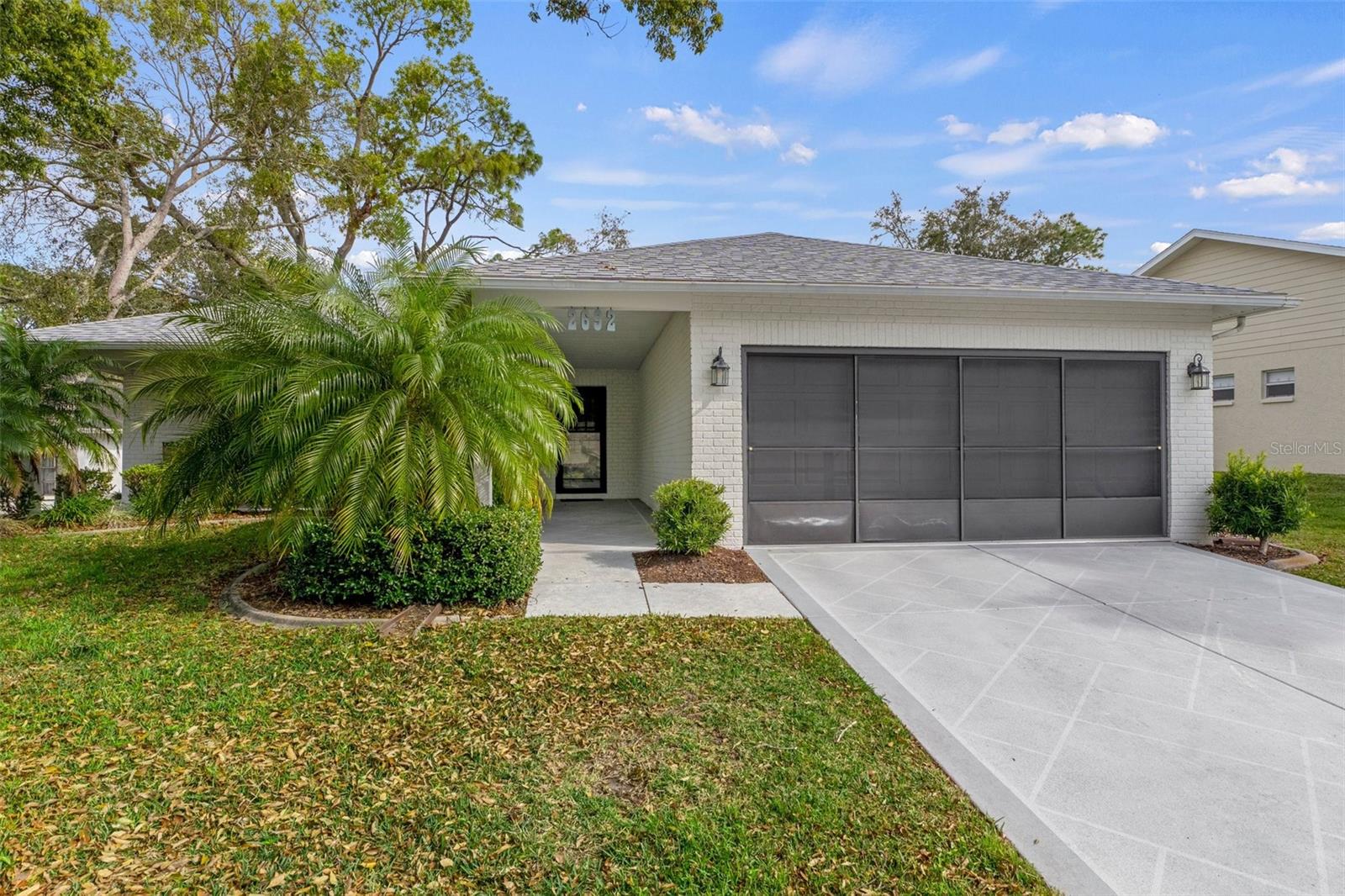 Come see this light and bright, move-in ready home--a true gem that boasts a NEW ROOF, NEW INSULATED WINDOWS, and NEW FLOORING,. The kitchen offers a beautiful view of the large 36-foot screened lanai—ideal for entertaining family and friends. The split floor plan provides guests with their own privacy, complete with a separate bathroom. Just off the kitchen is an additional room perfect for an office/den. Additional highlights include Inside laundry room and a screened garage. Located in a highly sought-after 55+ Timber Pines Community, enjoy access to four golf courses including a champion course, 2 executive course and a pitch and putt course, two swimming pools, two hot tubs, a restaurant, and a performing arts center, among numerous other activities. The state-of-the-art Community Wellness Center offers new pickleball courts, a fitness center, and yoga rooms. This community and this home are a must-see and offers everything you need for an active, carefree lifestyle!