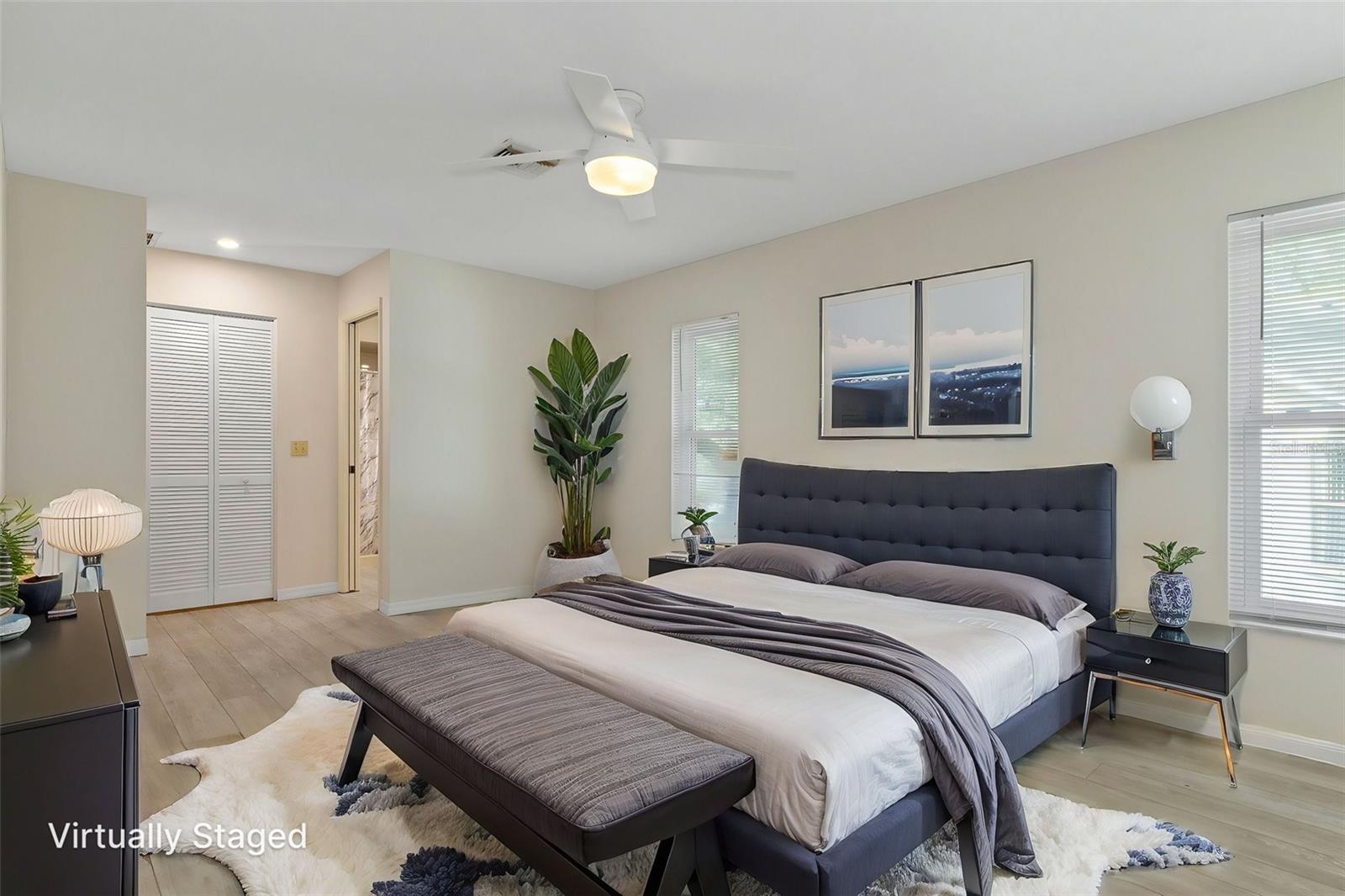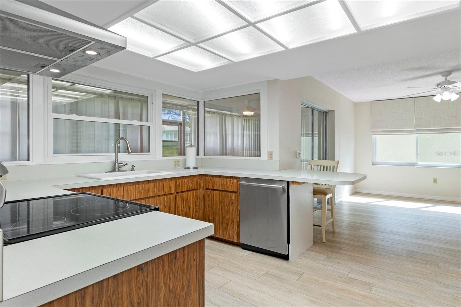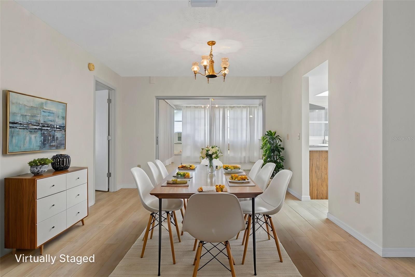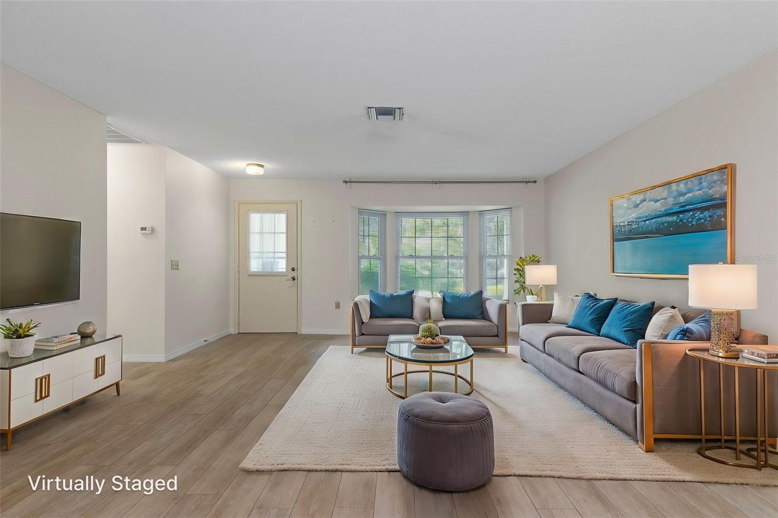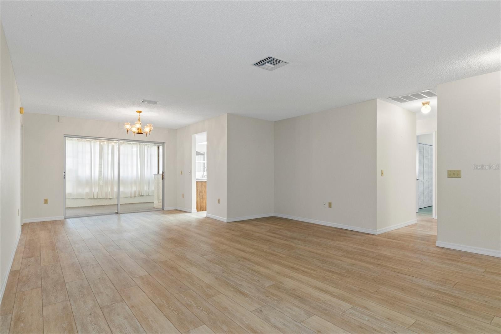 Come see this light and bright, move-in ready home--a true gem that boasts a NEW ROOF, NEW INSULATED WINDOWS, and NEW FLOORING,. The kitchen offers a beautiful view of the large 36-foot screened lanai—ideal for entertaining family and friends. The split floor plan provides guests with their own privacy, complete with a separate bathroom. Just off the kitchen is an additional room perfect for an office/den. Additional highlights include Inside laundry room and a screened garage. Located in a highly sought-after 55+ Timber Pines Community, enjoy access to four golf courses including a champion course, 2 executive course and a pitch and putt course, two swimming pools, two hot tubs, a restaurant, and a performing arts center, among numerous other activities. The state-of-the-art Community Wellness Center offers new pickleball courts, a fitness center, and yoga rooms. This community and this home are a must-see and offers everything you need for an active, carefree lifestyle!