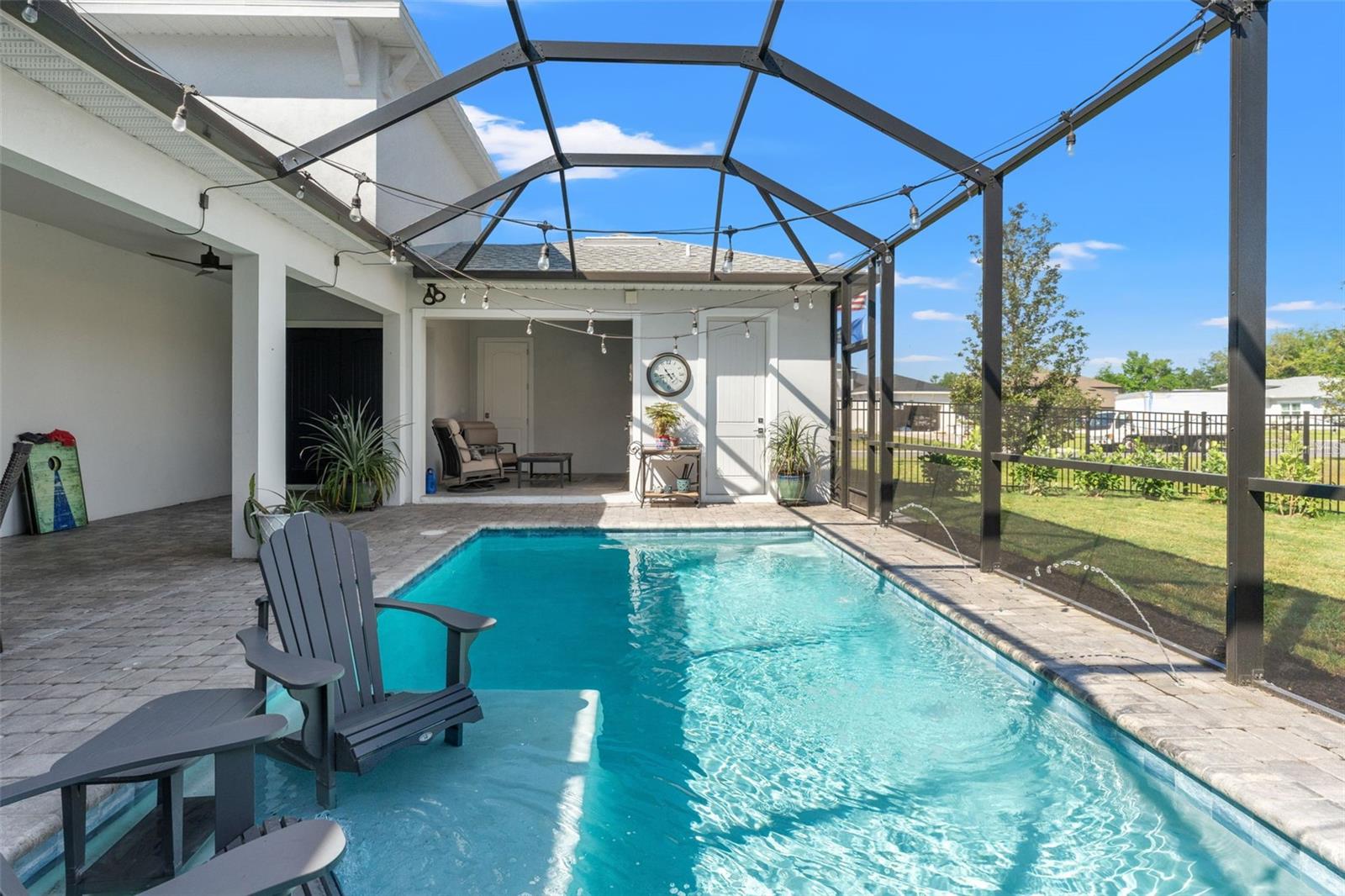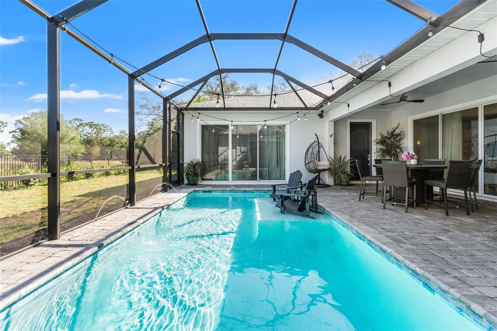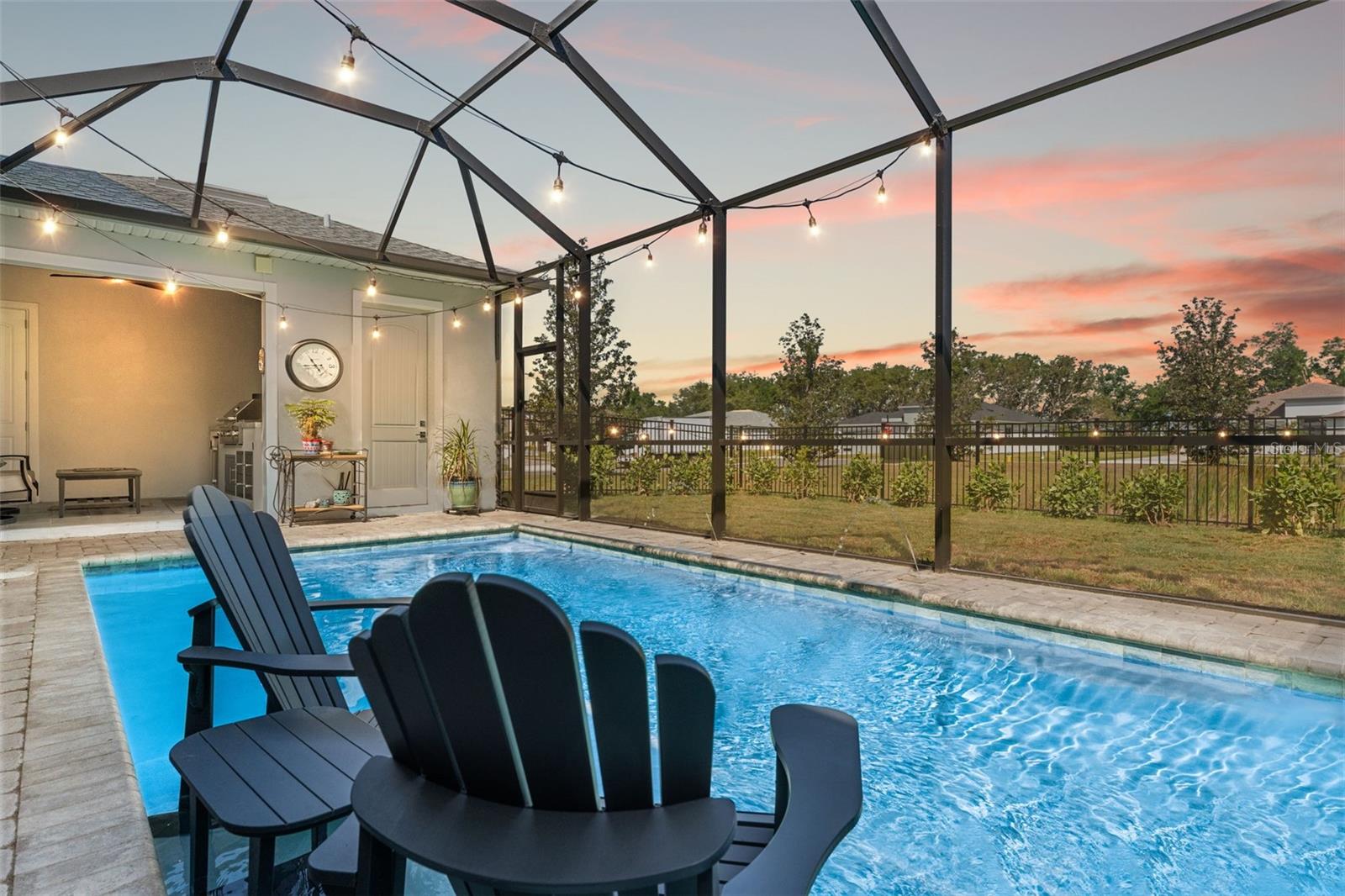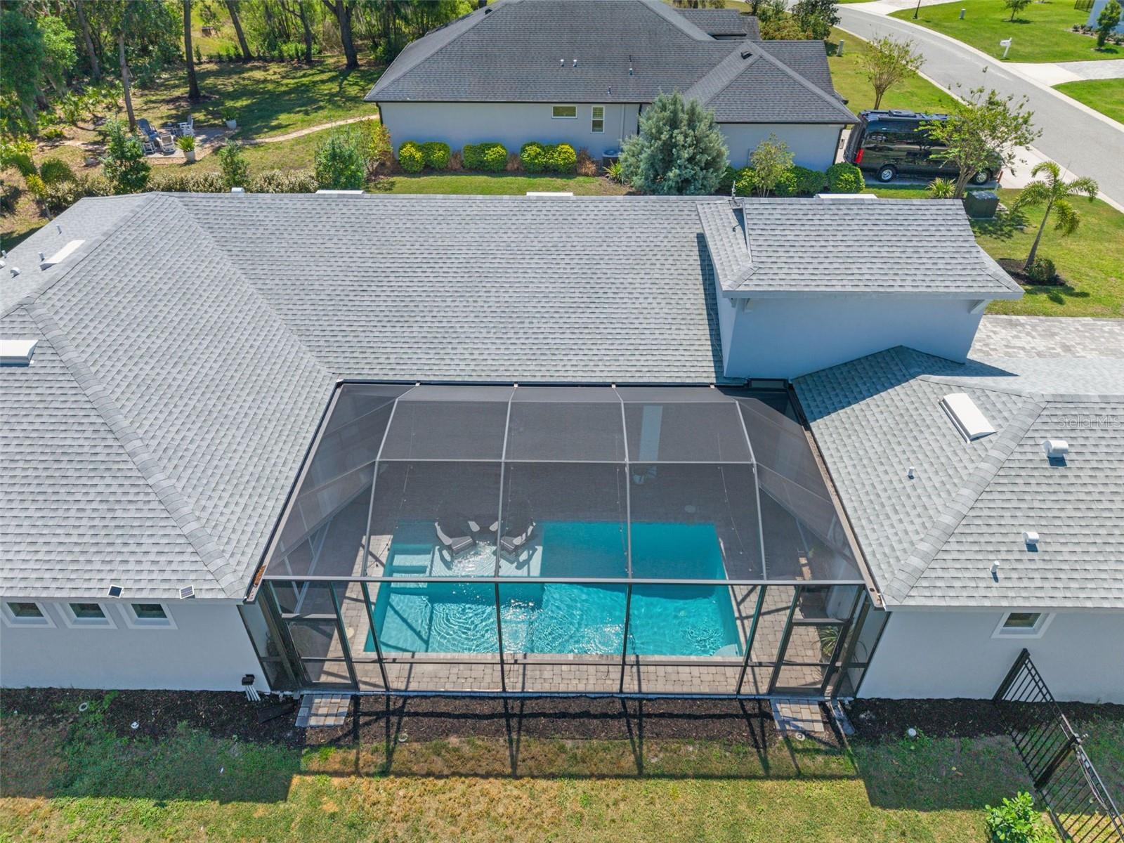 This home qualifies for a 6% Assumable Mortgage. Terms & Restrictions apply. Welcome to Serengeti in Spring Hill; tucked away, yet close to everything, this community is a favorite. Built by DRB Homes (formerly Biscayne Homes), this one features an award-winning floor plan, the Osprey 1 on a corner, oversized lot and pond view. With over 3,400 sq. ft (2,202 heated sq. ft.), three bedrooms, two full bathrooms + a pool bath near the cabana, an open floor plan with Luxury Vinyl Plank flooring, white kitchen cabinets, quartz countertops, a gourmet kitchen with glass cooktop, vent hood, cus, stainless steel appliances and upgraded with the window package. This means larger sliders that open in the middle, the triple picture windows in both the living room and the primary bedroom, allowing for natural light to enter the home at the best times throughout the day. The primary suite has a huge walk-in closet, and upgraded with the wet bath, which includes a soaking tub inside the shower space. Start planning a self-care spa day at home now! One of the best features is that you can see the beautiful pool from several spaces in the house because it sits right in the middle of the home, just like you've seen the movies. Popular in Palm Springs, California homes during the mid-century, these courtyard style homes are great for indoor/outdoor lifestyle for the ultimate entertainer. Only this one is newer, built in 2023, with all the modern touches you dream of. The pool dimensions are 24 x 16 and 6 ft deep. It's equipped with a heater, an auto fill option, bubbler, fountain jets and auto temp control as well as a cover to keep it warm in the cooler months.The Cabana has an outdoor kitchen with a 10 ft grill by Paradise Grills, it has 350 Rolled steel with dual side burner and back shearer, shelving, sink and refrigerator. The cabana is next to the third garage that could easily be converted to a whole suite, if you have multigenerational living needs. This home has so much potential while it's also a turnkey home. Start your new home journey now and stay forever as you convert this home through all the changes that may come. With three garage spaces, there is plenty of space for storage or a home gym, a man cave, a home-schooling room or even a playroom. The third single garage has a mini split AC Unit, the necessary wiring to install an EV charger. There home is always wired for a security system, and the home is wired with CAT-6 ethernet cabling in all rooms. This area of Spring Hill of east of SR-41 and the home is just off SR-52. Near to shopping, restaurants, major highways, and only 20 minutes from Hudson Beach, FL. About 30 minutes from Weeki Wachee Springs where you can paddle down the crystal clearwater or catch the Mermaid Show. Only a hour to Clearwater Beach, Honeymoon Island and Caladesi State Park. Are you ready to make a move to the sunshine state!? Call to book a tour right away. This home is ready for a new Buyer.