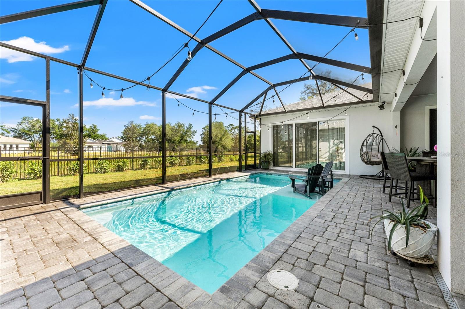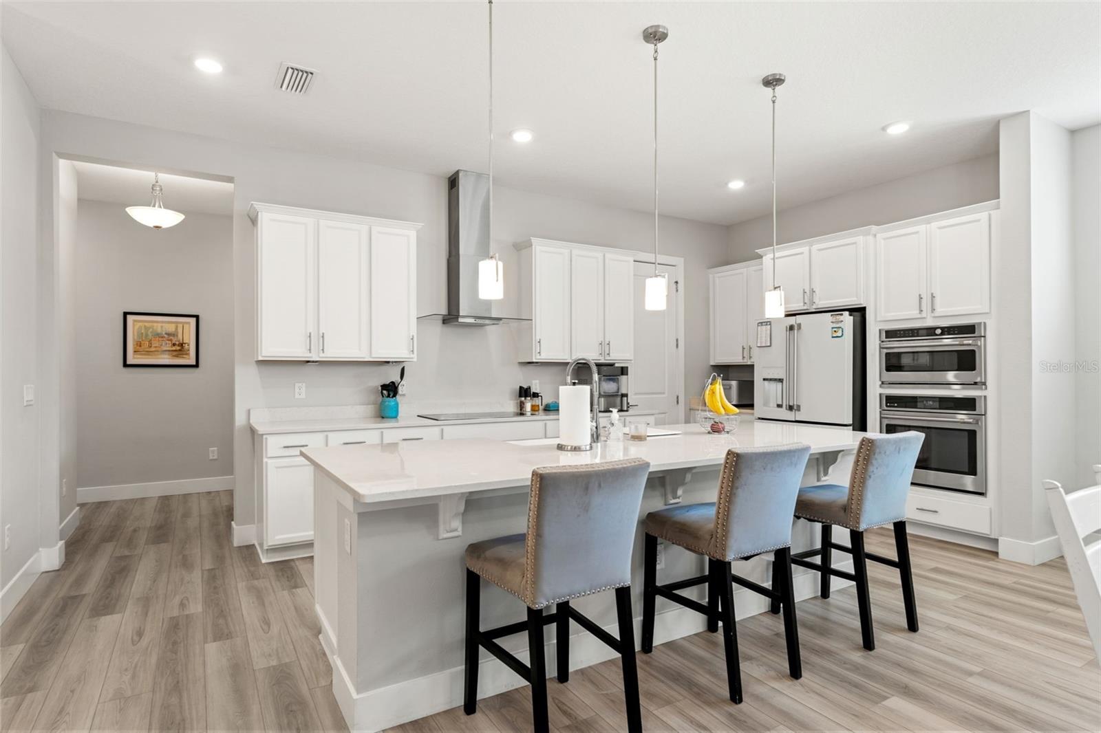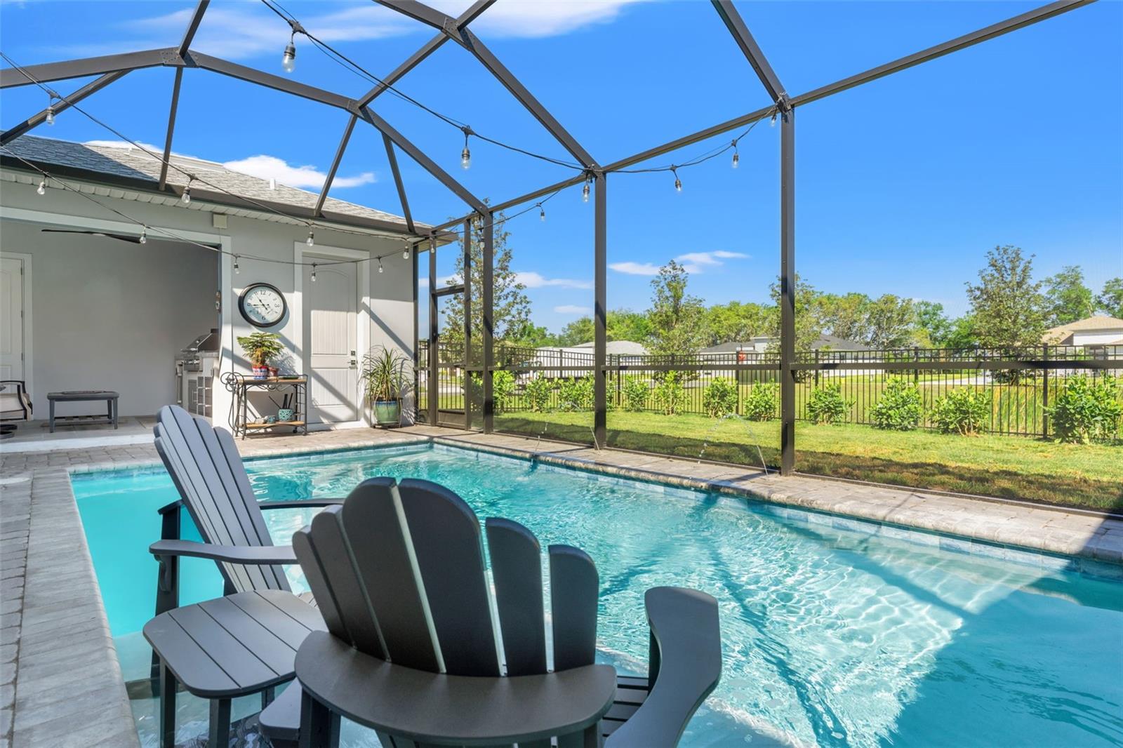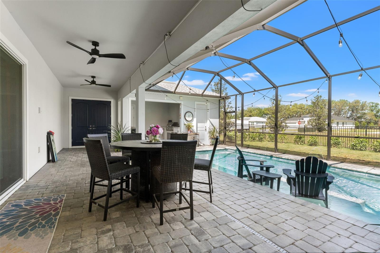 This home qualifies for a 6% Assumable Mortgage. Terms & Restrictions apply. Welcome to Serengeti in Spring Hill; tucked away, yet close to everything, this community is a favorite. Built by DRB Homes (formerly Biscayne Homes), this one features an award-winning floor plan, the Osprey 1 on a corner, oversized lot and pond view. With over 3,400 sq. ft (2,202 heated sq. ft.), three bedrooms, two full bathrooms + a pool bath near the cabana, an open floor plan with Luxury Vinyl Plank flooring, white kitchen cabinets, quartz countertops, a gourmet kitchen with glass cooktop, vent hood, cus, stainless steel appliances and upgraded with the window package. This means larger sliders that open in the middle, the triple picture windows in both the living room and the primary bedroom, allowing for natural light to enter the home at the best times throughout the day. The primary suite has a huge walk-in closet, and upgraded with the wet bath, which includes a soaking tub inside the shower space. Start planning a self-care spa day at home now! One of the best features is that you can see the beautiful pool from several spaces in the house because it sits right in the middle of the home, just like you've seen the movies. Popular in Palm Springs, California homes during the mid-century, these courtyard style homes are great for indoor/outdoor lifestyle for the ultimate entertainer. Only this one is newer, built in 2023, with all the modern touches you dream of. The pool dimensions are 24 x 16 and 6 ft deep. It's equipped with a heater, an auto fill option, bubbler, fountain jets and auto temp control as well as a cover to keep it warm in the cooler months.The Cabana has an outdoor kitchen with a 10 ft grill by Paradise Grills, it has 350 Rolled steel with dual side burner and back shearer, shelving, sink and refrigerator. The cabana is next to the third garage that could easily be converted to a whole suite, if you have multigenerational living needs. This home has so much potential while it's also a turnkey home. Start your new home journey now and stay forever as you convert this home through all the changes that may come. With three garage spaces, there is plenty of space for storage or a home gym, a man cave, a home-schooling room or even a playroom. The third single garage has a mini split AC Unit, the necessary wiring to install an EV charger. There home is always wired for a security system, and the home is wired with CAT-6 ethernet cabling in all rooms. This area of Spring Hill of east of SR-41 and the home is just off SR-52. Near to shopping, restaurants, major highways, and only 20 minutes from Hudson Beach, FL. About 30 minutes from Weeki Wachee Springs where you can paddle down the crystal clearwater or catch the Mermaid Show. Only a hour to Clearwater Beach, Honeymoon Island and Caladesi State Park. Are you ready to make a move to the sunshine state!? Call to book a tour right away. This home is ready for a new Buyer.