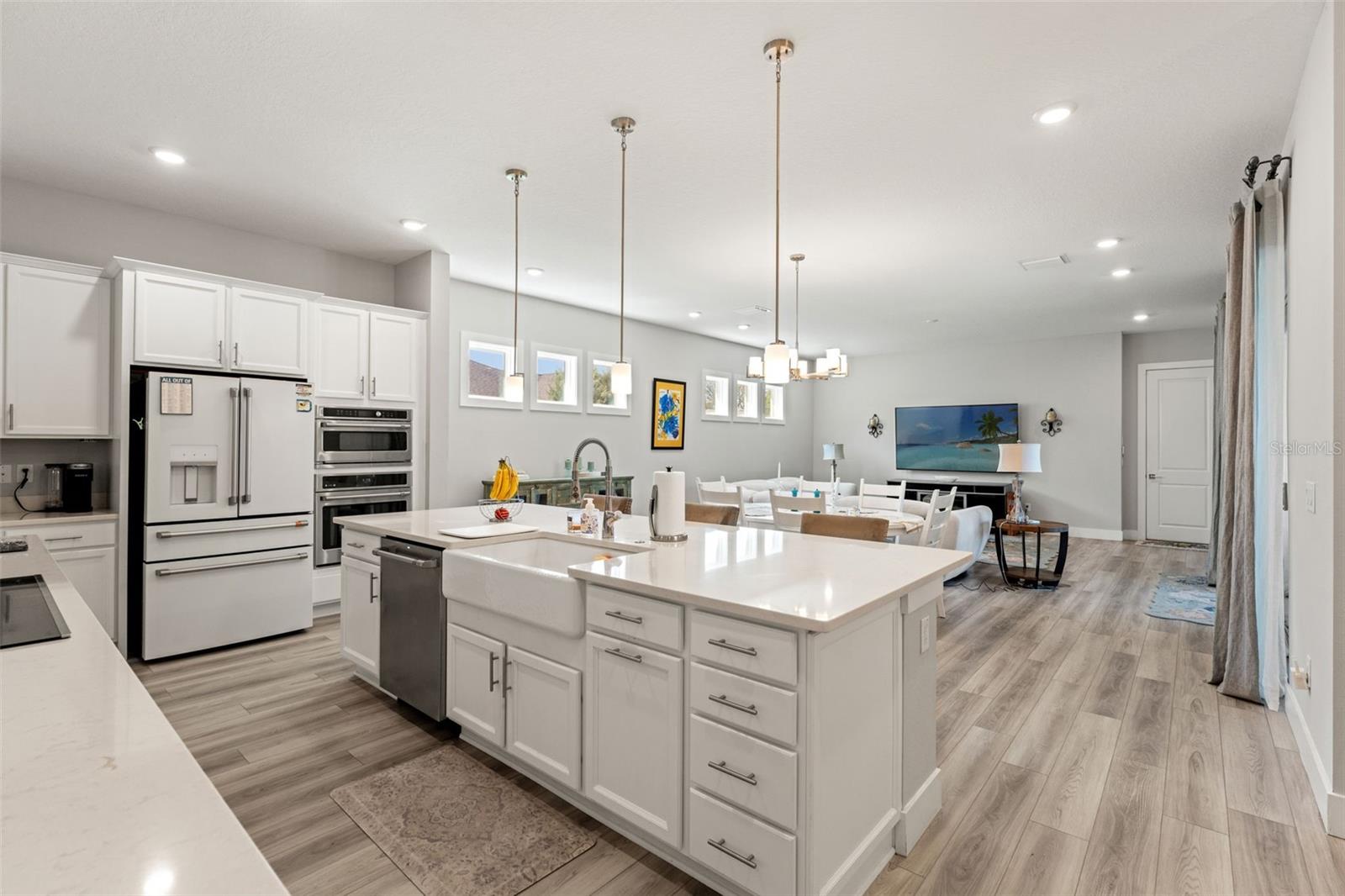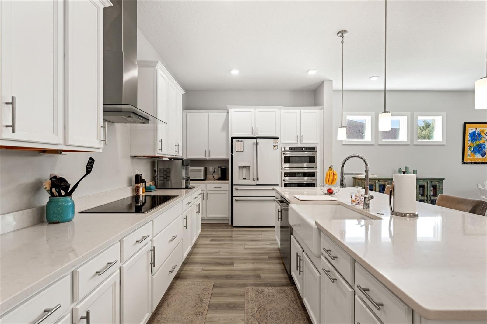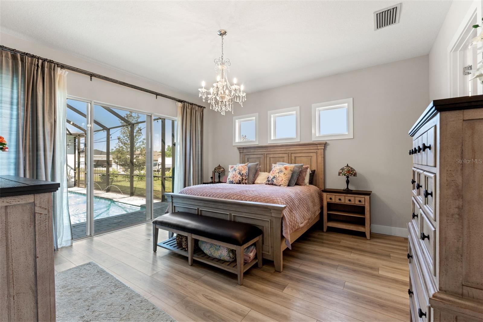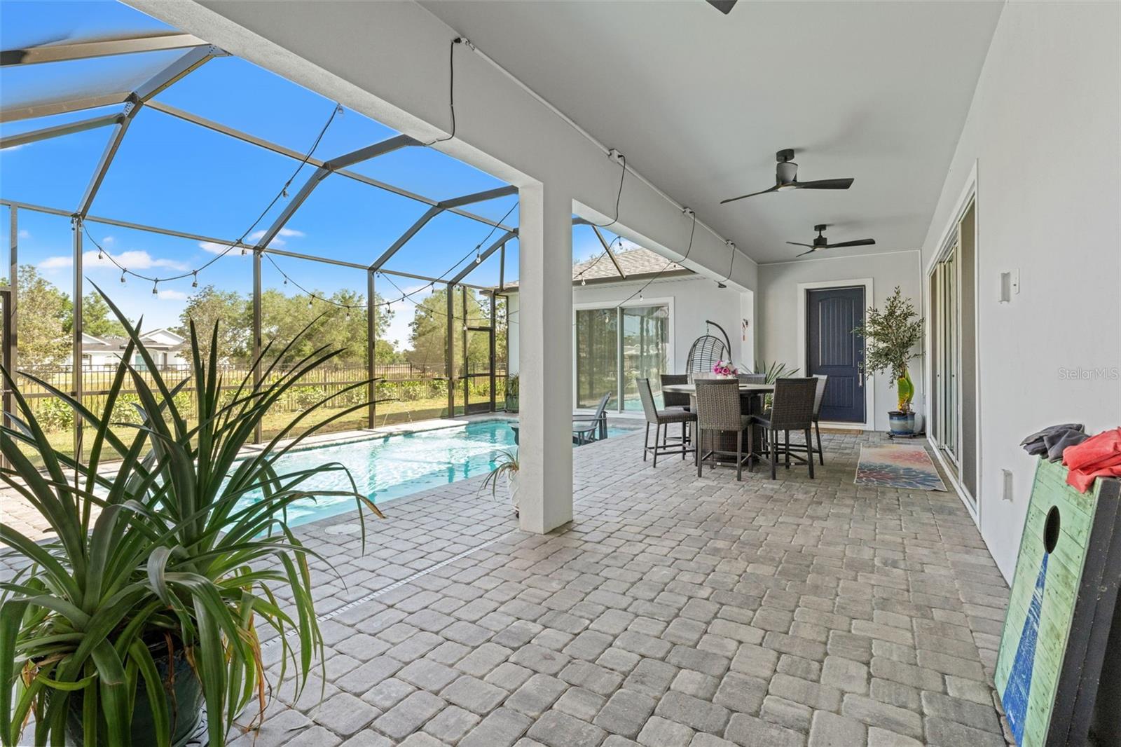 This home qualifies for a 6% Assumable Mortgage. Terms & Restrictions apply. Welcome to Serengeti in Spring Hill; tucked away, yet close to everything, this community is a favorite. Built by DRB Homes (formerly Biscayne Homes), this one features an award-winning floor plan, the Osprey 1 on a corner, oversized lot and pond view. With over 3,400 sq. ft (2,202 heated sq. ft.), three bedrooms, two full bathrooms + a pool bath near the cabana, an open floor plan with Luxury Vinyl Plank flooring, white kitchen cabinets, quartz countertops, a gourmet kitchen with glass cooktop, vent hood, cus, stainless steel appliances and upgraded with the window package. This means larger sliders that open in the middle, the triple picture windows in both the living room and the primary bedroom, allowing for natural light to enter the home at the best times throughout the day. The primary suite has a huge walk-in closet, and upgraded with the wet bath, which includes a soaking tub inside the shower space. Start planning a self-care spa day at home now! One of the best features is that you can see the beautiful pool from several spaces in the house because it sits right in the middle of the home, just like you've seen the movies. Popular in Palm Springs, California homes during the mid-century, these courtyard style homes are great for indoor/outdoor lifestyle for the ultimate entertainer. Only this one is newer, built in 2023, with all the modern touches you dream of. The pool dimensions are 24 x 16 and 6 ft deep. It's equipped with a heater, an auto fill option, bubbler, fountain jets and auto temp control as well as a cover to keep it warm in the cooler months.The Cabana has an outdoor kitchen with a 10 ft grill by Paradise Grills, it has 350 Rolled steel with dual side burner and back shearer, shelving, sink and refrigerator. The cabana is next to the third garage that could easily be converted to a whole suite, if you have multigenerational living needs. This home has so much potential while it's also a turnkey home. Start your new home journey now and stay forever as you convert this home through all the changes that may come. With three garage spaces, there is plenty of space for storage or a home gym, a man cave, a home-schooling room or even a playroom. The third single garage has a mini split AC Unit, the necessary wiring to install an EV charger. There home is always wired for a security system, and the home is wired with CAT-6 ethernet cabling in all rooms. This area of Spring Hill of east of SR-41 and the home is just off SR-52. Near to shopping, restaurants, major highways, and only 20 minutes from Hudson Beach, FL. About 30 minutes from Weeki Wachee Springs where you can paddle down the crystal clearwater or catch the Mermaid Show. Only a hour to Clearwater Beach, Honeymoon Island and Caladesi State Park. Are you ready to make a move to the sunshine state!? Call to book a tour right away. This home is ready for a new Buyer.