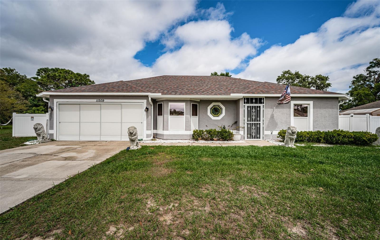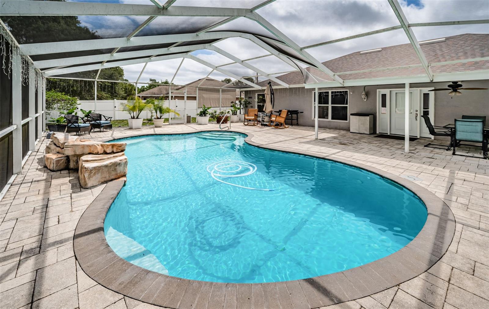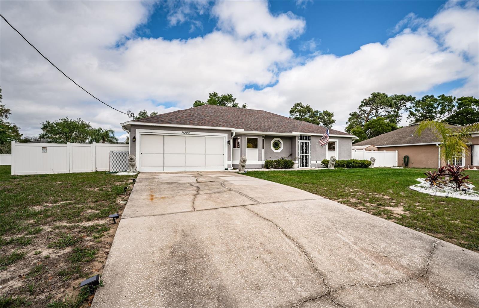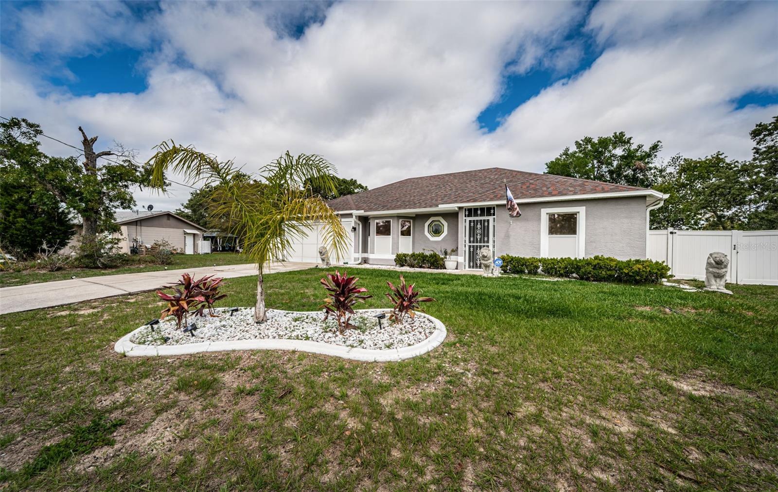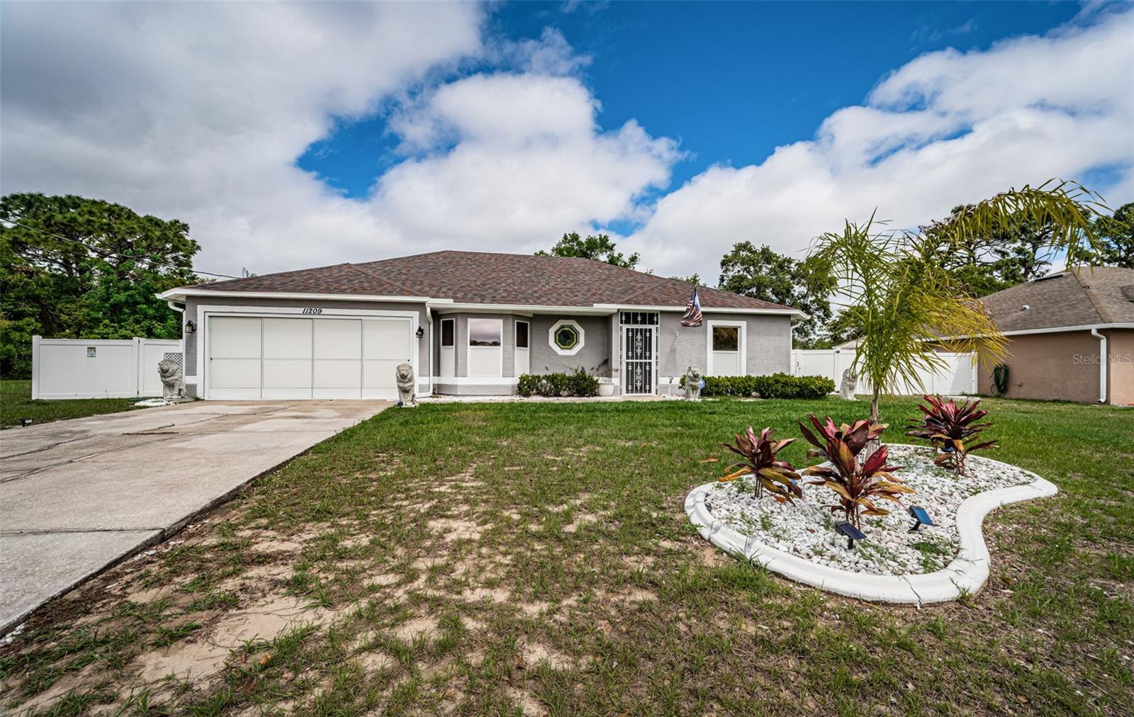 Don’t miss the opportunity to make this beauty your home! Move-in beautiful condition and ready for its next owner. True pride of ownership at this 3 bedroom/2 bath home with a living and dining room area and kitchen and family room area too. The kitchen is a culinary haven with its sleek wood cabinets, granite tops -and sleek SS appliances. A huge closet pantry too! endless updates during ownership to include freshly painted interior and exterior, gorgeous new wide plank laminate flooring, and new range and microwave in 2025, lanai privacy, roller shades, generator hook up to the electric panel, new security front and back doors, new gutters, a new garage security door to name a few! Roof is only 5 yrs of age! Lots of closet space and a wonderful split floor plan! An alarm system in 2022 as well. The outdoors is truly an oasis with a fully fenced yard, a sparkling, newer ( 2021) saltwater pool with rock fountain, paver decking, and a screened birdcage with lots of room for lounging! The yard is massive with plenty of room for the family to enjoy the ultimate FL lifestyle from gardening, family barbecues or simply to enjoy entertaining with family and friends. Septic serviced 2025! No flood zone & No hurricane damage!This one is beautiful, immaculate and move in ready!