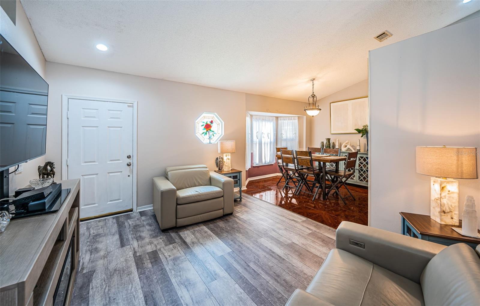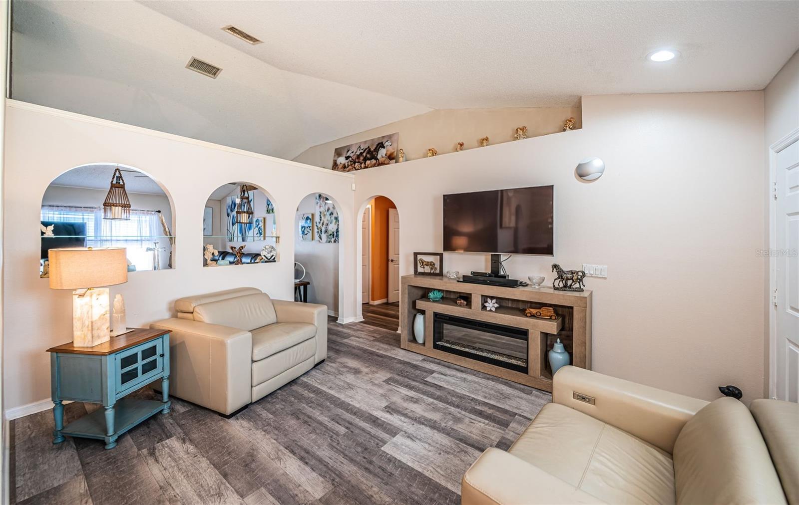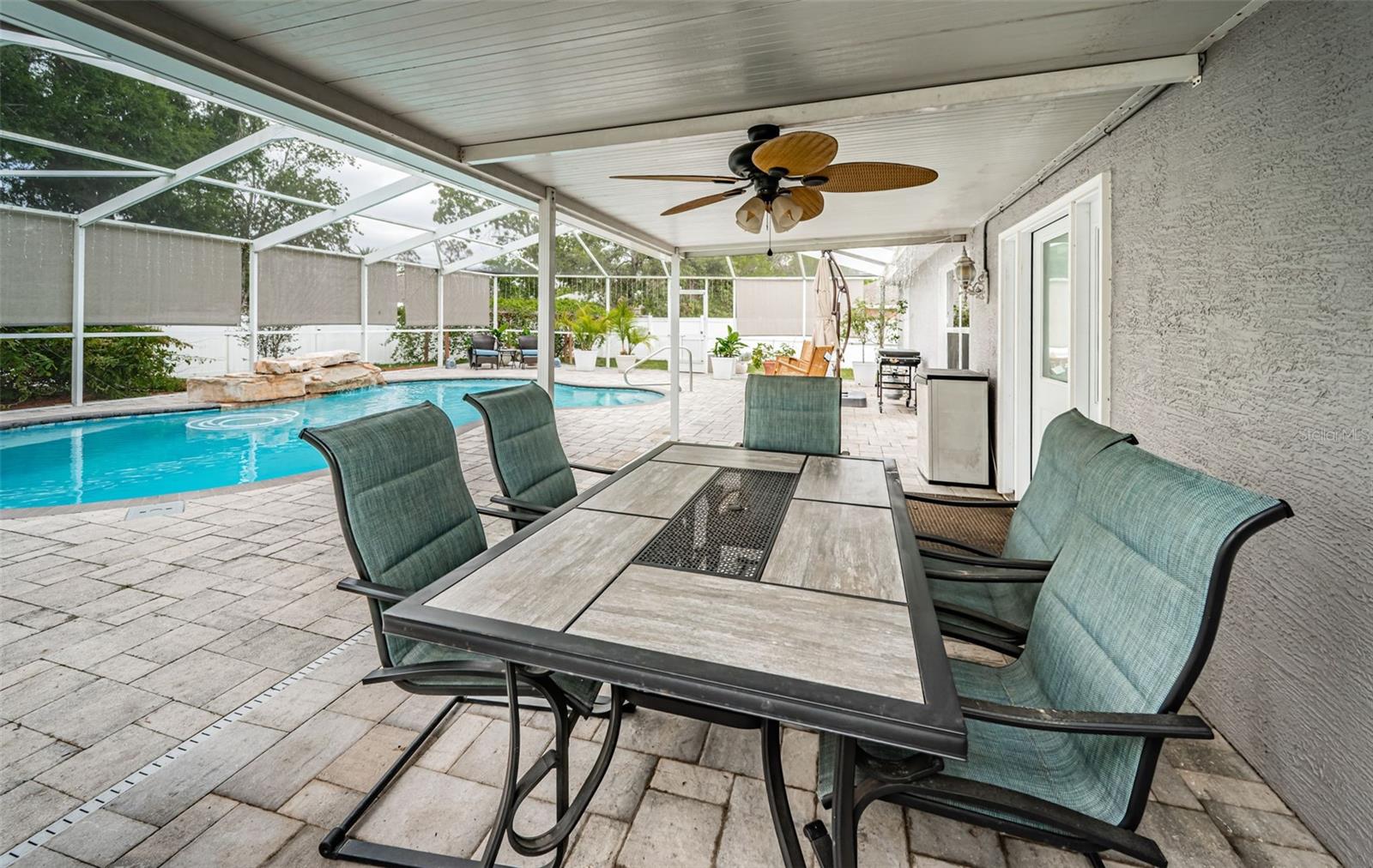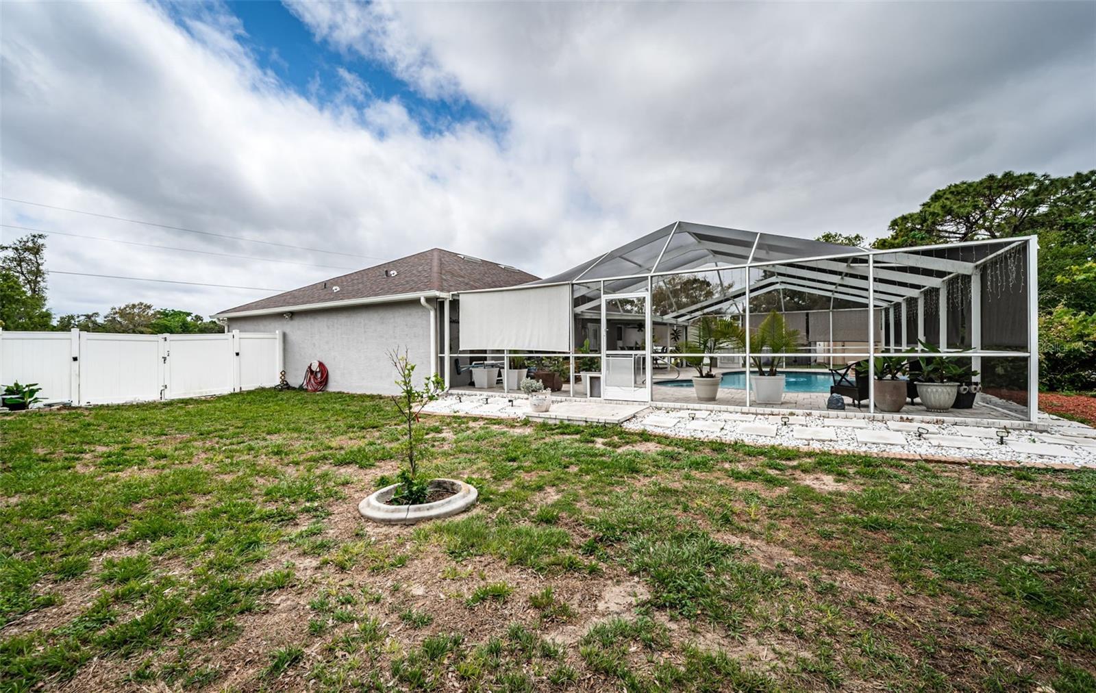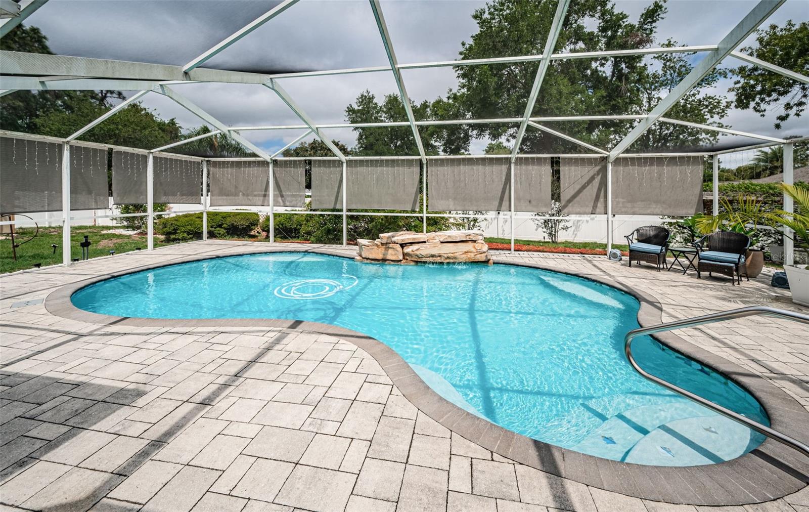 Don’t miss the opportunity to make this beauty your home! Move-in beautiful condition and ready for its next owner. True pride of ownership at this 3 bedroom/2 bath home with a living and dining room area and kitchen and family room area too. The kitchen is a culinary haven with its sleek wood cabinets, granite tops -and sleek SS appliances. A huge closet pantry too! endless updates during ownership to include freshly painted interior and exterior, gorgeous new wide plank laminate flooring, and new range and microwave in 2025, lanai privacy, roller shades, generator hook up to the electric panel, new security front and back doors, new gutters, a new garage security door to name a few! Roof is only 5 yrs of age! Lots of closet space and a wonderful split floor plan! An alarm system in 2022 as well. The outdoors is truly an oasis with a fully fenced yard, a sparkling, newer ( 2021) saltwater pool with rock fountain, paver decking, and a screened birdcage with lots of room for lounging! The yard is massive with plenty of room for the family to enjoy the ultimate FL lifestyle from gardening, family barbecues or simply to enjoy entertaining with family and friends. Septic serviced 2025! No flood zone & No hurricane damage!This one is beautiful, immaculate and move in ready!