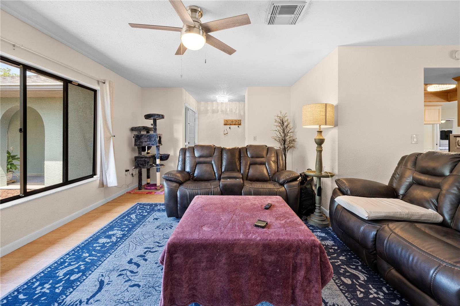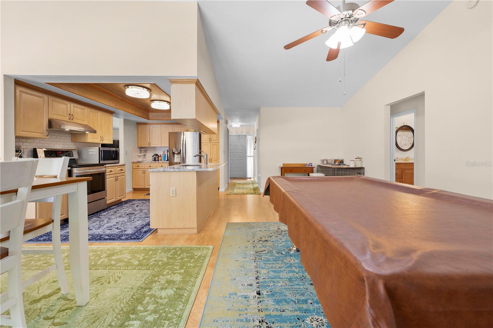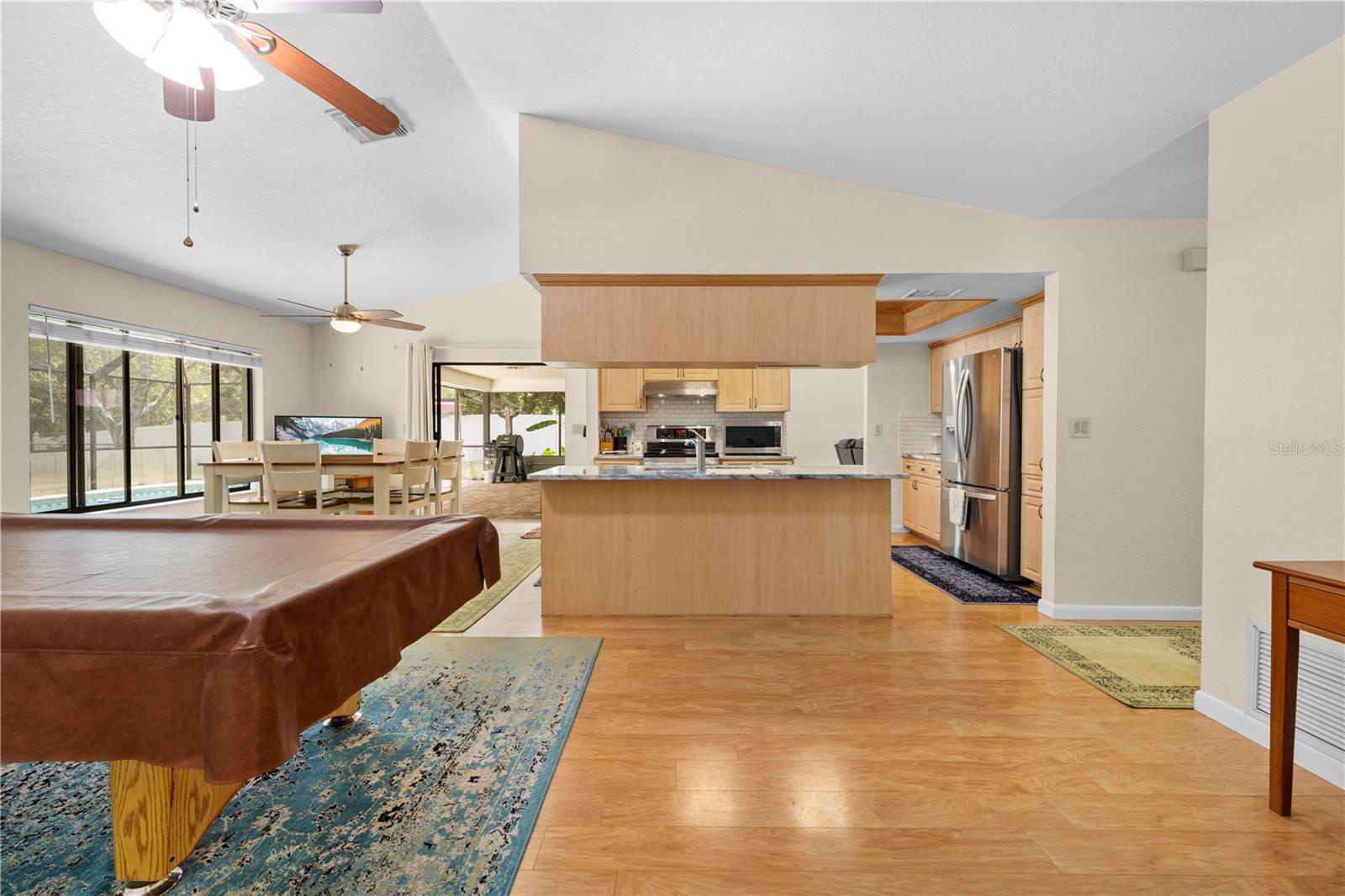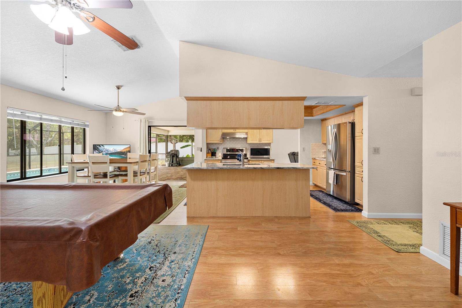 Immaculate 4-Bedroom, 3-Bath Pool Home with Canal View & Upgrades! This beautifully maintained split-plan 4-bedroom, 3-bathroom pool home offers both space and flexibility, perfect for families or multi-generational living. From the moment you enter, you're welcomed into a formal living and dining room, with the spacious master suite located just off the dining area for added privacy. The remodeled master bathroom features elegant quartz countertops and updated finishes. Continue through the foyer to the open-concept family room, updated kitchen, and casual dining area. The remodeled kitchen boasts granite countertops, newer stainless-steel appliances, and plenty of cabinetry. Two generously sized guest bedrooms and a shared full bath are located on one side of the home, while a fourth bedroom and third bathroom are tucked away at the back of the home. This area can be closed off with a pocket door, making it ideal for guests, a home office, or in-law suite. It also features private access to the pool. Enjoy the best of Florida living with a 15x30 screened, caged pool surrounded by brick pavers, powered by a Rheem heat pump. The backyard is fully fenced and overlooks a freshwater canal leading to Bluesink Pond, offering a peaceful natural backdrop and birdwatching opportunities. A spacious 8x10 shed provides additional storage. The property also includes a beautifully landscaped exterior, fresh paint, decorative curbing, and a full irrigation system supplied by an irrigation well. Major updates include a new roof (2021), new drain field (2024), and a grouted, repaired sinkhole with a transferable balance of a 20-year warranty for added peace of mind. The brick-paver driveway complements the pool deck, adding curb appeal and functionality. This home checks all the boxes: space, updates, outdoor living, and a location that combines nature with convenience. Don’t miss your chance to see this exceptional property—schedule your showing today!--