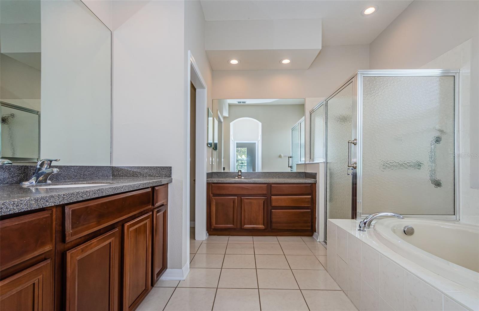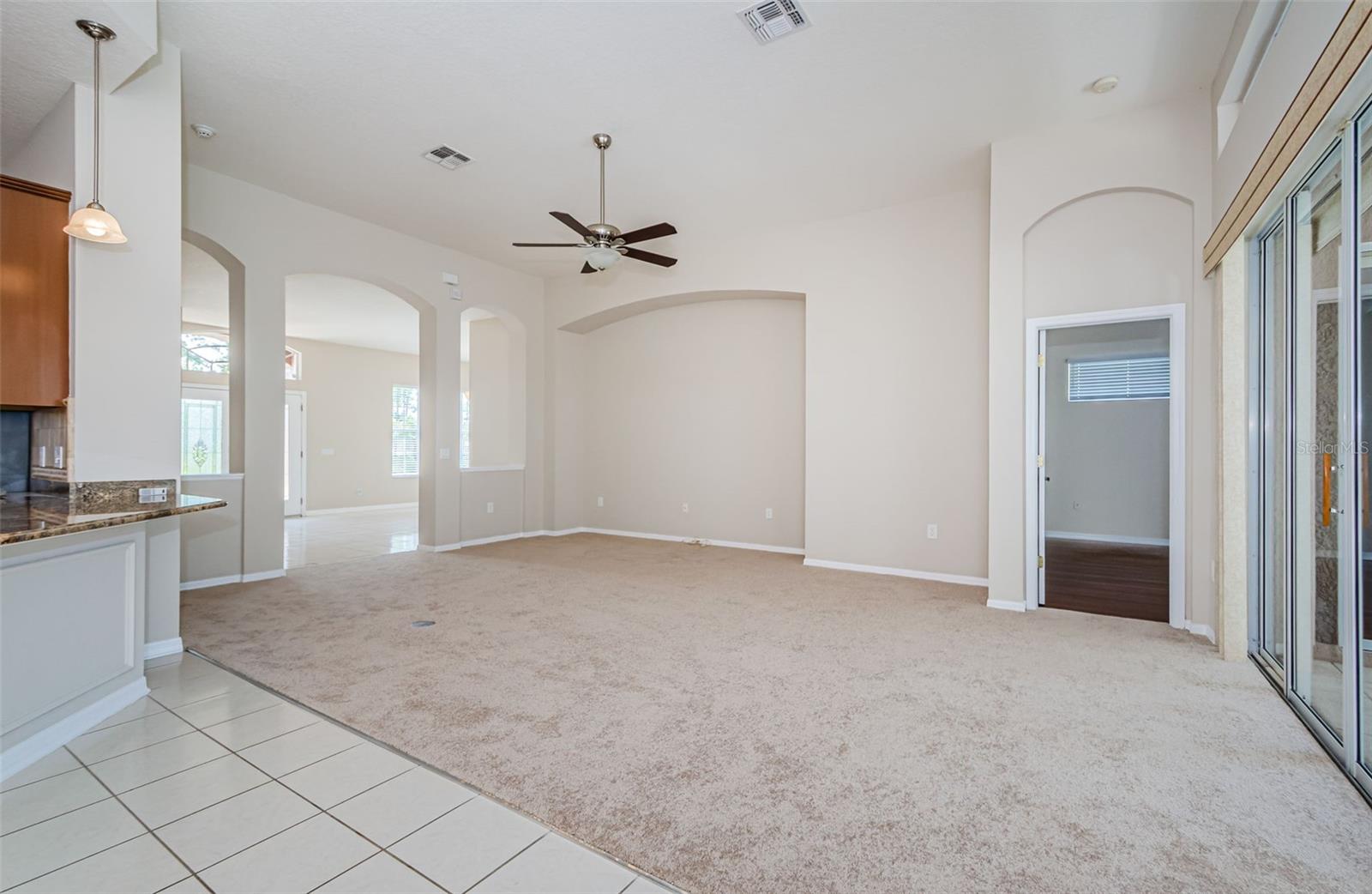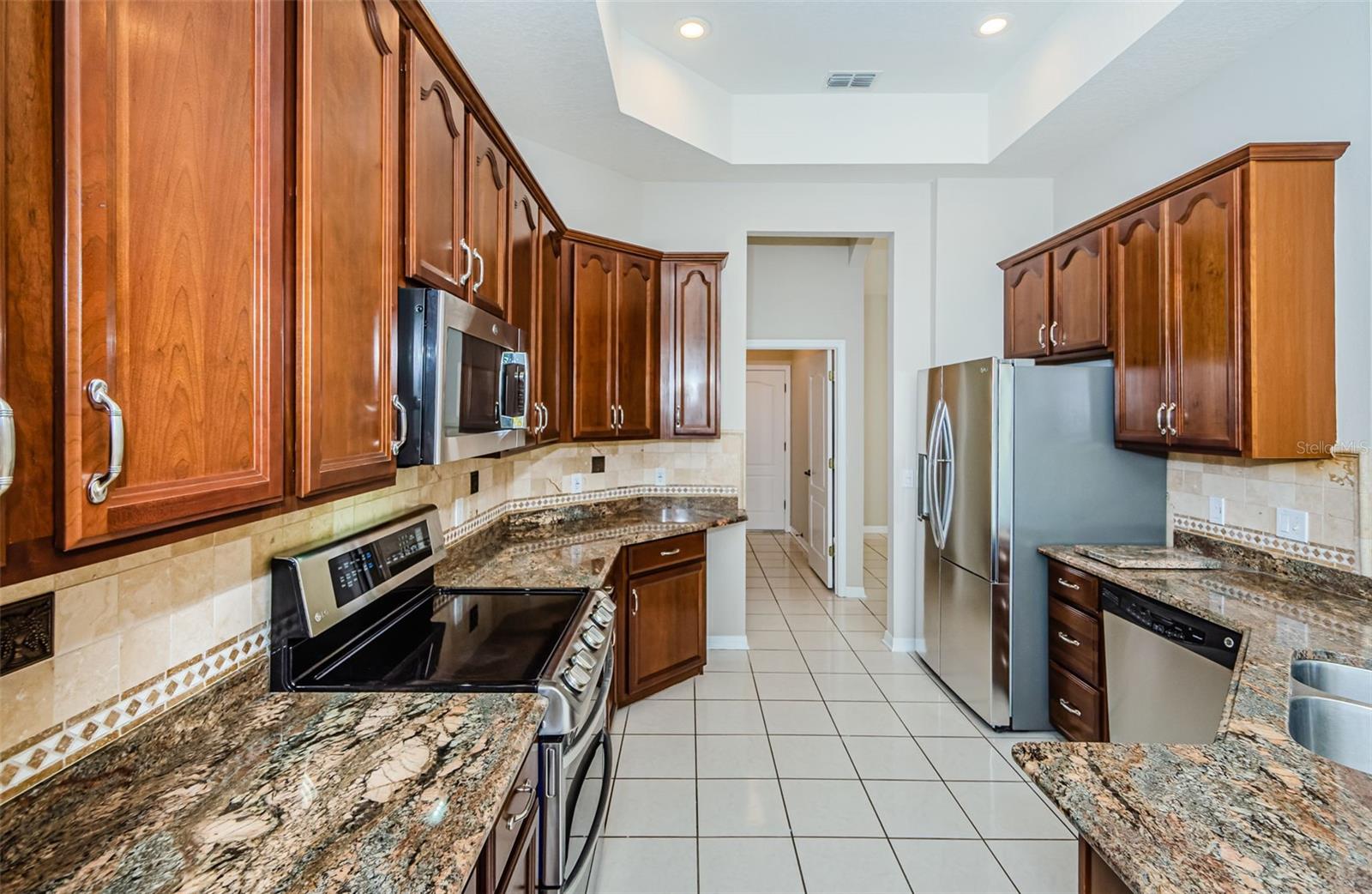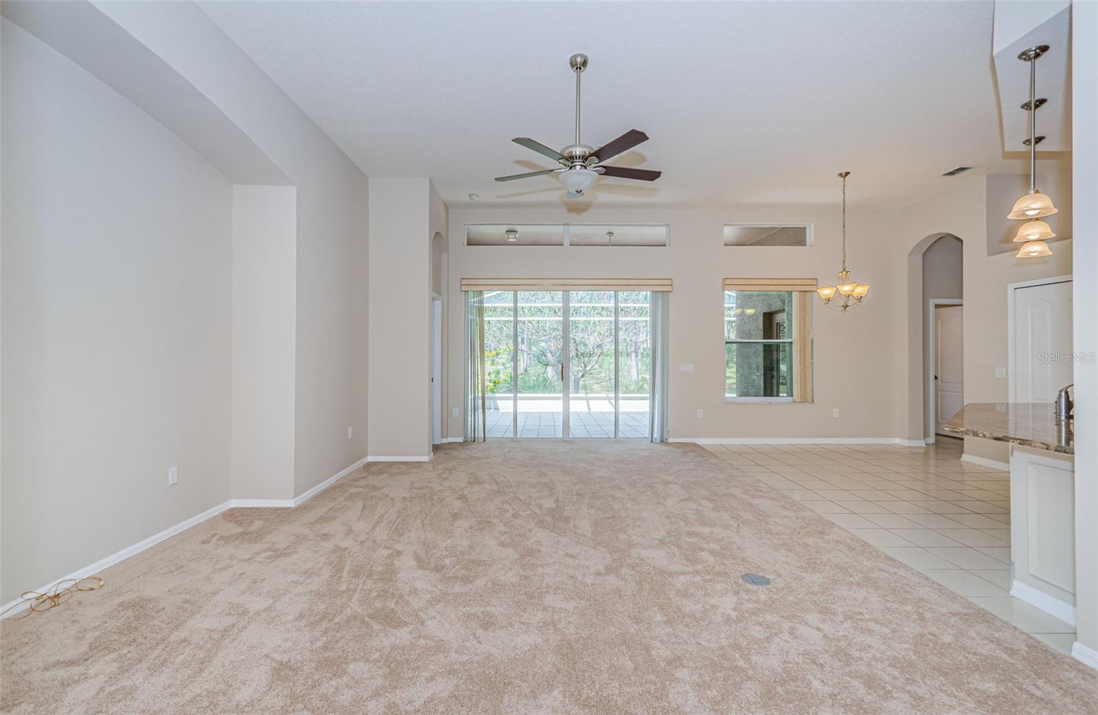 Welcome to this stunning Remington model in the highly sought-after Wellington at Seven Hills, a guard-gated 55+ community with 24/7 security patrol. This home has had only one owner and was meticulously maintained. This move-in ready open floorplan offers 4-bedroom, 3-bathroom, 3-car garage home is situated on a premium corner lot with no rear neighbors, offering serene, wooded views. Recently updated in 2025, this home features a new roof replaced in March of 2025 with a transferable warranty, new HVAC system 4/25 also has a warranty, a new water heater, interior and exterior paint, new carpet in the family room and a new dryer. The washer and microwave convection oven are less than a year old. The kitchen is a chef’s delight, featuring granite countertops, custom backsplash, stainless steel appliances, 42-inch wood cabinets with pull-out shelving, a tray ceiling, a closet pantry, and a cozy breakfast nook. The adjacent spacious family room includes eight-foot-high sliding doors to the extended screened lanai with tile flooring and a ceiling fan—perfect for indoor-outdoor living. The thoughtfully designed split-bedroom layout offers privacy and flexibility. The primary suite includes sliding doors to the lanai, tray ceiling, two large closets (one walk-in), and a luxurious en-suite bath with a garden tub, walk-in shower, and 36-inch dual wood vanities with Corian countertops. Bedrooms 2 and 3 are located in a private wing and share a full bath, while bedroom 4 is adjacent to a third full bath with lanai access, all featuring 36-inch wood cabinets and Corian countertops, ideal for guests or multigenerational living. The utility room includes cabinets and a new oversized stainless-steel sink, a new dryer (2025), and a washer less than a year old. Additional highlights include keyless entry, Ring doorbell, security system, gutters, Pest tubes in walls, cement curbed plant beds, single garage door screen, extended brick paver walkway and cement patio off the lanai, and an irrigation system serviced in 2025. Enjoy this beautifully updated home in a vibrant, amenity-rich community offering a clubhouse, Wellington’s Bar & Grill Restaurant, pool, spa fitness center, pickleball, tennis, bocce, billiards, and endless social activities.