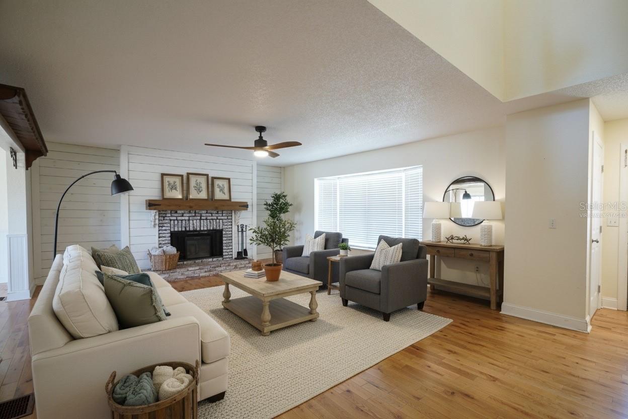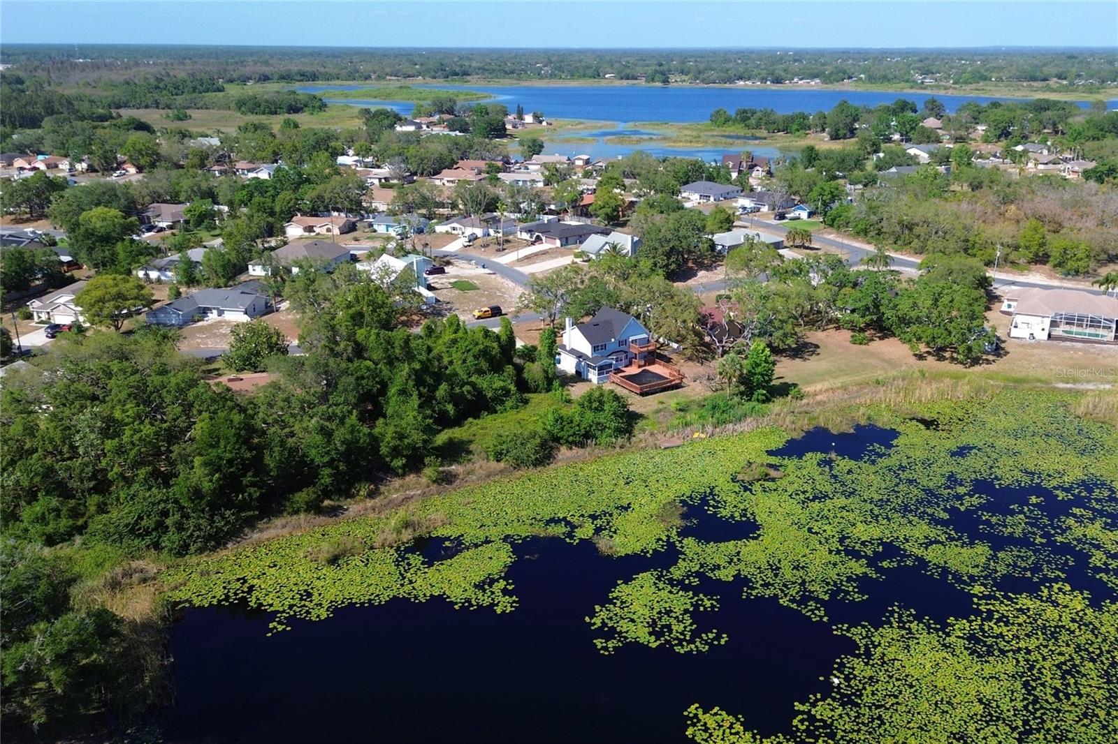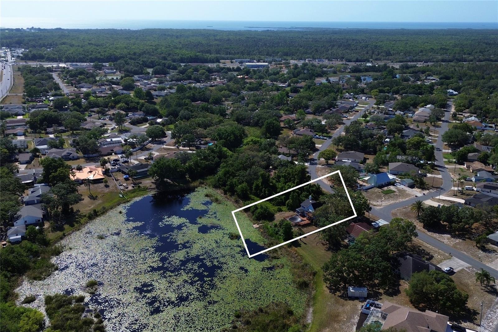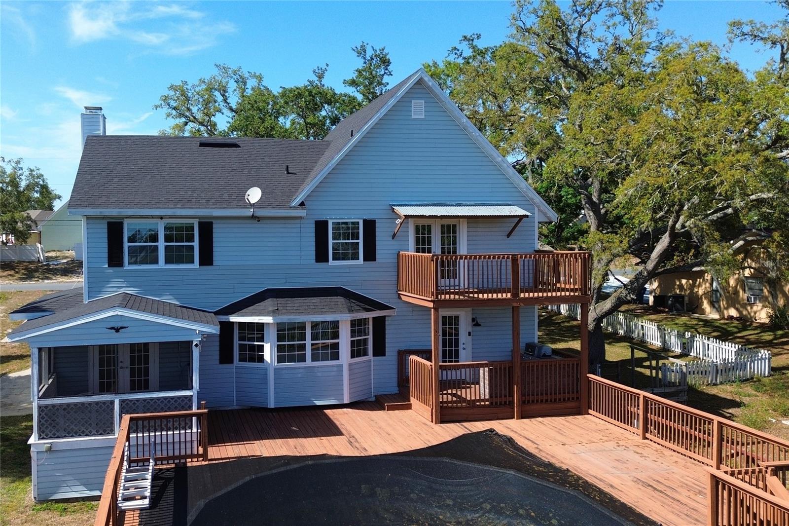 One or more photo(s) has been virtually staged. Across the street from a golf course, just off Hunter’s Lake, four miles from the Gulf, four miles from Weekiwachee Preserve, on a pond with a fishing dock, this property is an outdoor lover’s paradise! This .35-acre property boasts a 2,674-square-foot home that includes a pool, large front porch, back screened porch, and a balcony with water and golf course views, making it one of the best offers on the market at this price. ROOF WAS REPLACED IN 2024. Appliances are included (washer, dryer, dishwasher, microwave, refrigerator/freezer, oven, range, outdoor grill), and the spacious kitchen presents ample storage and custom cabinetry. The upstairs primary suite features vaulted ceilings, a walk-in closet, an updated bath with a beautiful stand-alone soaking tub, and a private balcony overlooking the pond and dock in the backyard. Additional highlights include a lake-fed irrigation system, two HVAC units, an electric fireplace and security cameras.