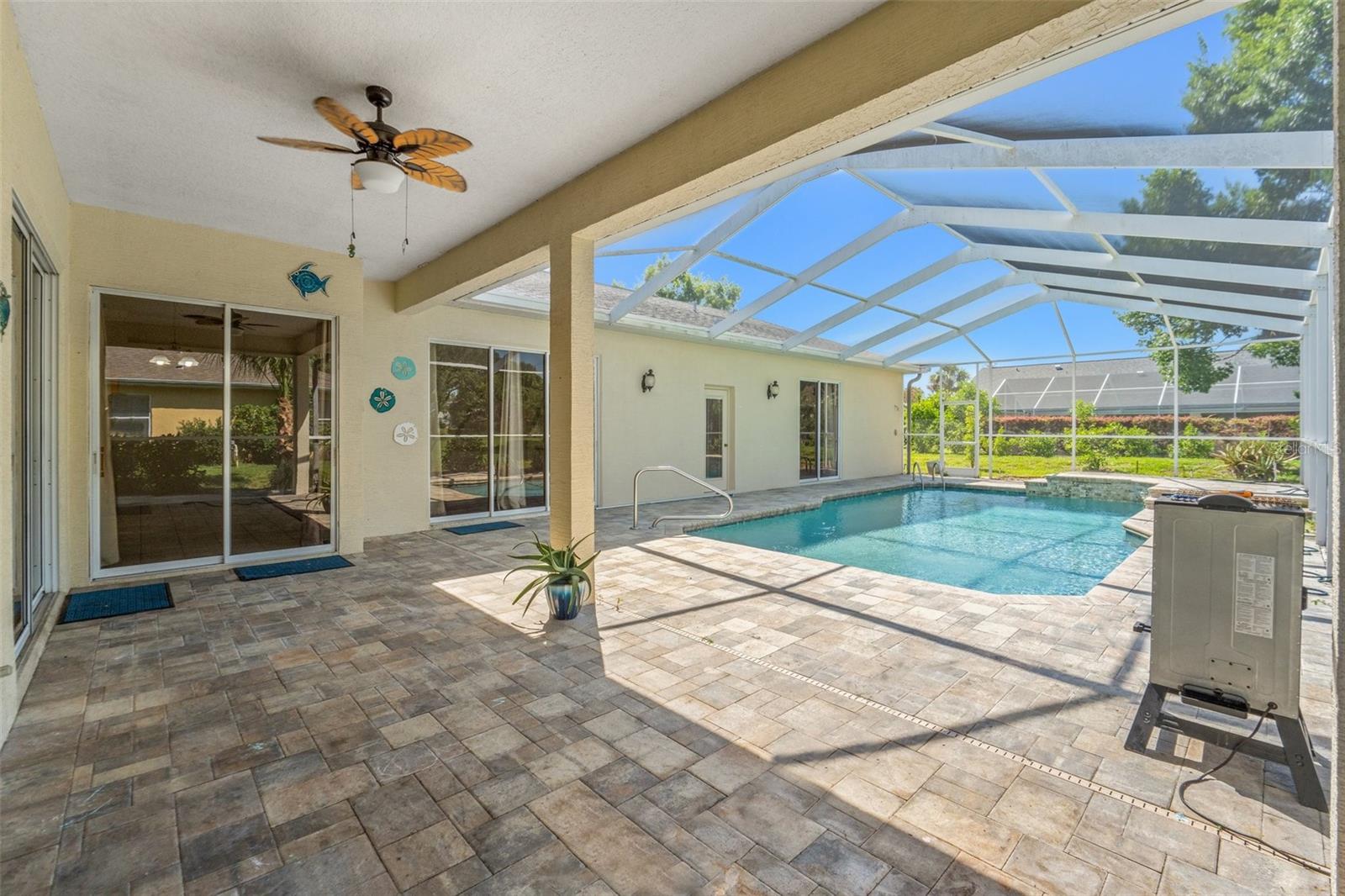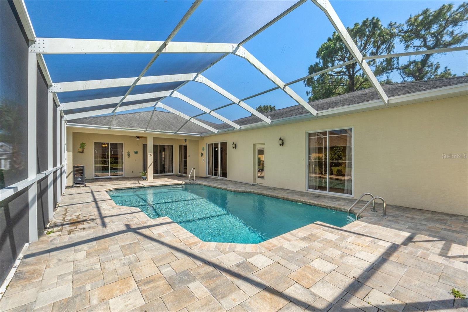 MOTIVATED SELLER, PRICE REDUCED FOR A QUICK SALE. Spacious and versatile, this 4-bedroom, 3-bathroom pool home with a 3-car garage is located in the desirable gated community of Pristine Place. Offering over 3,000 square feet of living space and more than 4,000 total square feet under roof, this home is ideal for multi-generational living or anyone needing extra room to spread out. The layout includes an in-law suite, ideal for extended family or guests, a large bonus room perfect for a media or game room, and a dedicated home office for added convenience. The master suite features two walk-in closets, dual vanities, a jetted tub, snail shower, and private access to the screened lanai and oversized 15x30 saltwater pool with a waterfall feature (Refinished in 2022). The kitchen opens to the living area and includes granite countertops, a walk-in pantry, double bowl sink, and a dinette space for casual meals. There’s also a formal dining room and living room, offering plenty of options for gathering and entertaining. Brazilian hardwood floors run through the main living spaces, with tile in wet areas and carpet in the guest bedrooms and in-law suite. Outside, the expansive 26x45 screened lanai provides plenty of room for relaxing or entertaining by the pool. There’s also a dedicated pool bath, outdoor shower, and mature landscaping with exterior lighting. Pristine Place is a gated community located in the heart of Spring Hill, offering a clubhouse, fitness center, community pool, tennis courts, pickleball court, and regular social events. Conveniently situated near shopping, dining, medical facilities, and the Suncoast Parkway, this home provides easy access to Tampa and the Gulf Coast beaches. Schedule your private showing today! If you’re looking for a home with space and potential in a great community, this is one to see. Schedule your private tour today.