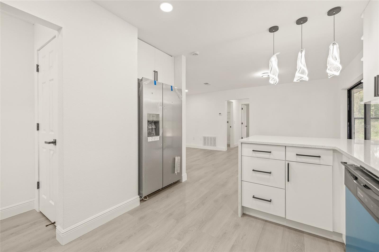 Welcome to this beautifully newly renovated 3-bedroom, 2-bathroom home in the heart of Spring Hill. From the moment you arrive, you’ll love the charming curb appeal and inviting atmosphere that make this home stand out. Step inside and you’re greeted by a spacious living and dining area filled with natural light — a welcoming space perfect for both relaxing and entertaining. The layout flows into a stylishly updated kitchen featuring brand-new countertops, modern cabinetry, stainless steel appliances, and a trendy backsplash — ready for you to enjoy your favorite meals and create lasting memories. Just off the kitchen, the primary bedroom is a bright and peaceful retreat with a large walk-in closet and a beautifully updated ensuite bathroom with fresh, modern finishes. Near the front of the home, a sunny guest room offers the perfect space for visitors or a home office. On the opposite side of the house, you'll find the second spacious guest bedroom along with the sleek guest bathroom — thoughtfully renovated with today's design trends in mind. Across from the guest bath is a convenient laundry room that includes direct access to the two-car garage, making everyday routines even easier. Additional updates include a brand-new roof, new HVAC system, and new water heater, giving you peace of mind and lasting value. At the back of the home, enjoy your own private enclosed and covered porch — ideal for morning coffee, reading, or entertaining friends. Located just 25 minutes from Hudson Beach and surrounded by a variety of restaurants, shopping, and activities, this move-in-ready home offers comfort, style, and convenience. Don’t miss the chance to make this Spring Hill gem your own!