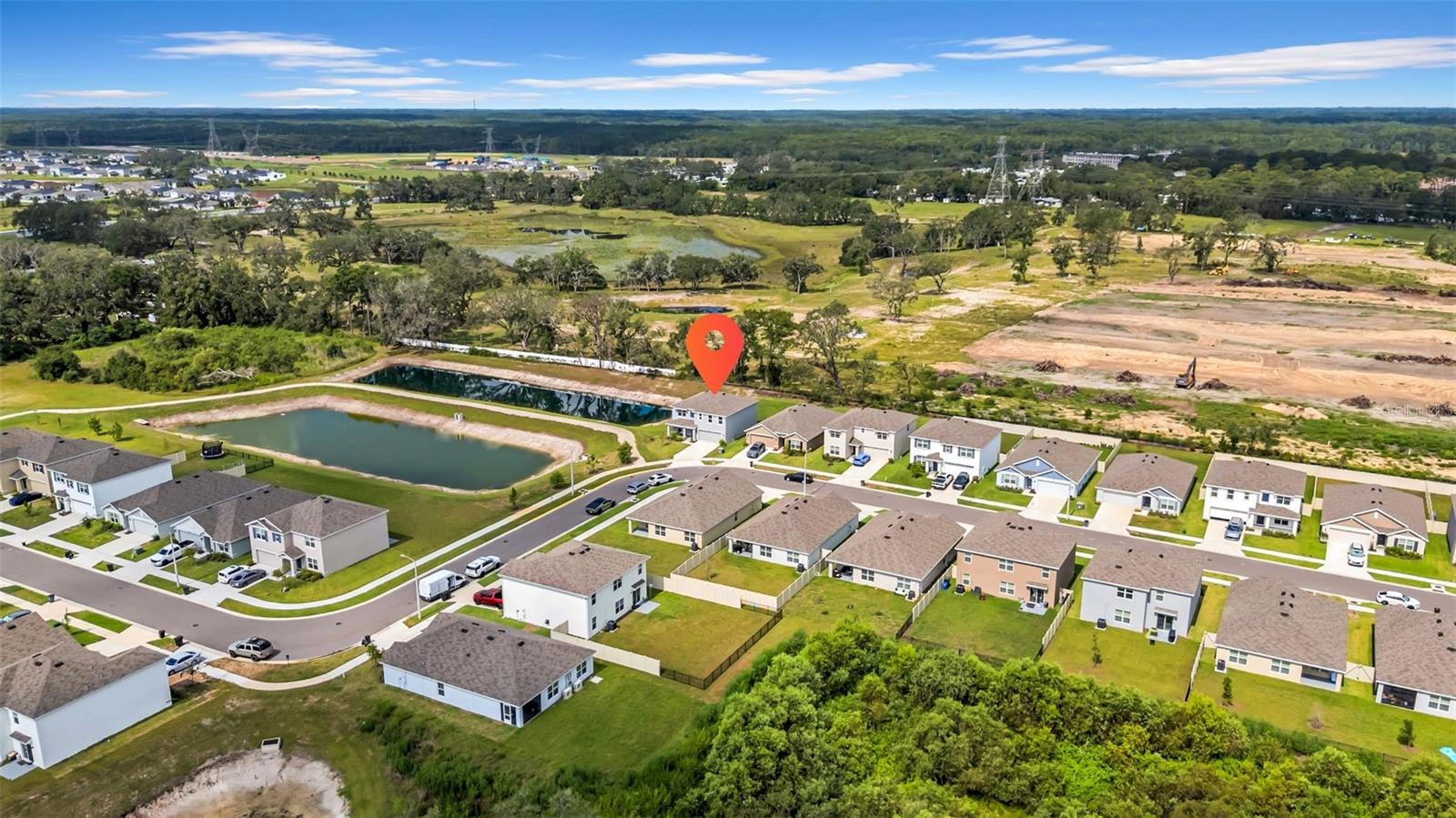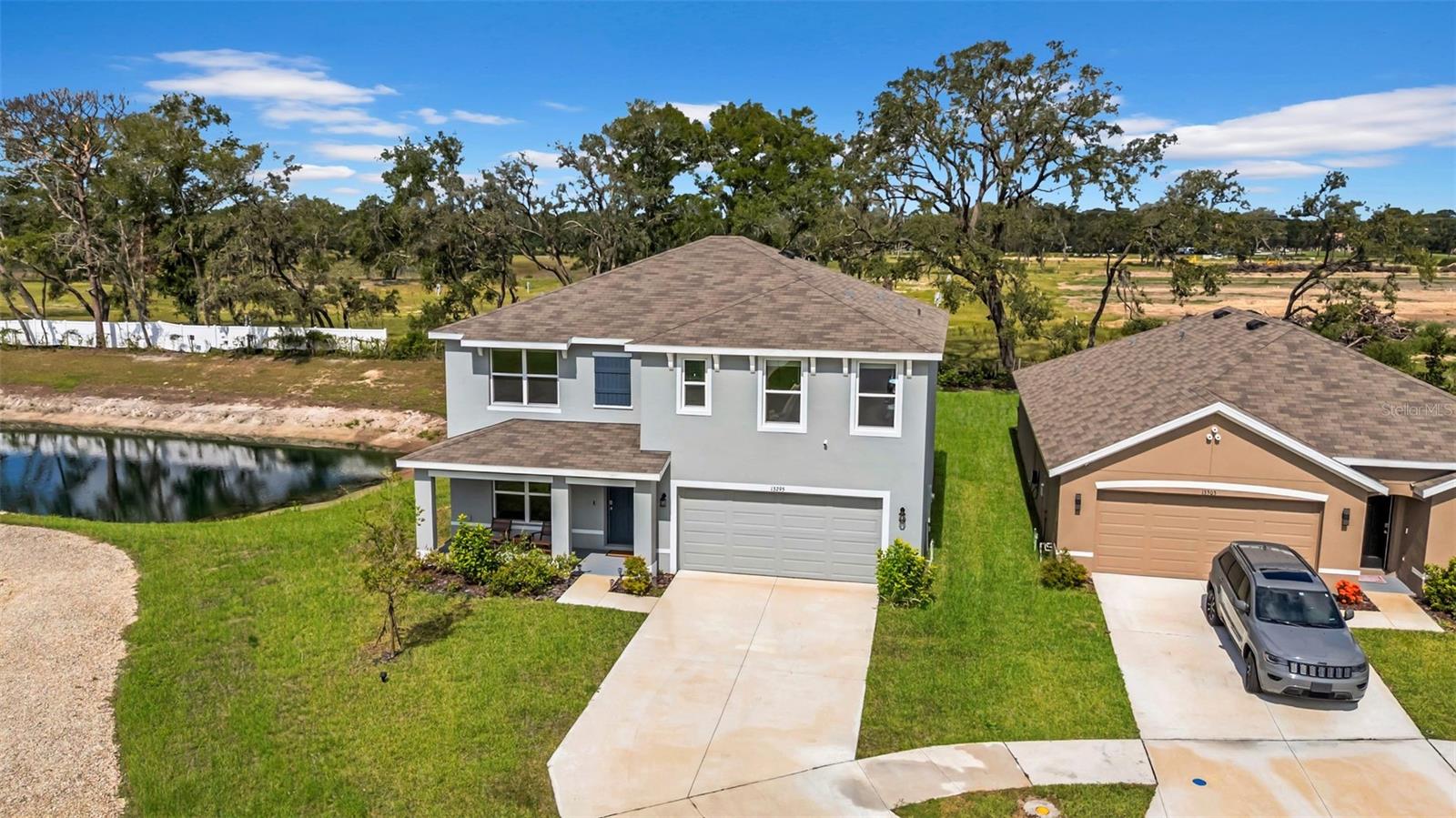 One or more photo(s) has been virtually staged. This beautiful 5-bedroom, 3-bath home with a spacious loft and large flex space sits on a premium corner lot with pond views in the boutique community of Pine Creek. Built in 2024, this thoughtfully designed home offers the perfect layout for comfort, flexibility, and function. The main floor features a versatile flex room, a full bathroom, and a private bedroom—ideal for guests or multigenerational living. Upstairs, you’ll find four additional bedrooms, two full bathrooms, a large loft, and a convenient upstairs laundry room. The primary suite is exceptionally spacious, featuring two oversized walk-in closets and a private en-suite bath designed for relaxation. Located just off the Suncoast Parkway, Pine Creek offers quick access to Tampa International Airport, shopping, dining, and outdoor adventure. Bishop McLaughlin Catholic High School—ranked #7 Best Catholic High School in Florida by Niche.com—is just around the corner. Smart home features, solid concrete block construction, walking trails, and tranquil nature views make this home the total package. Don’t wait—make this beautiful home yours before it’s gone!