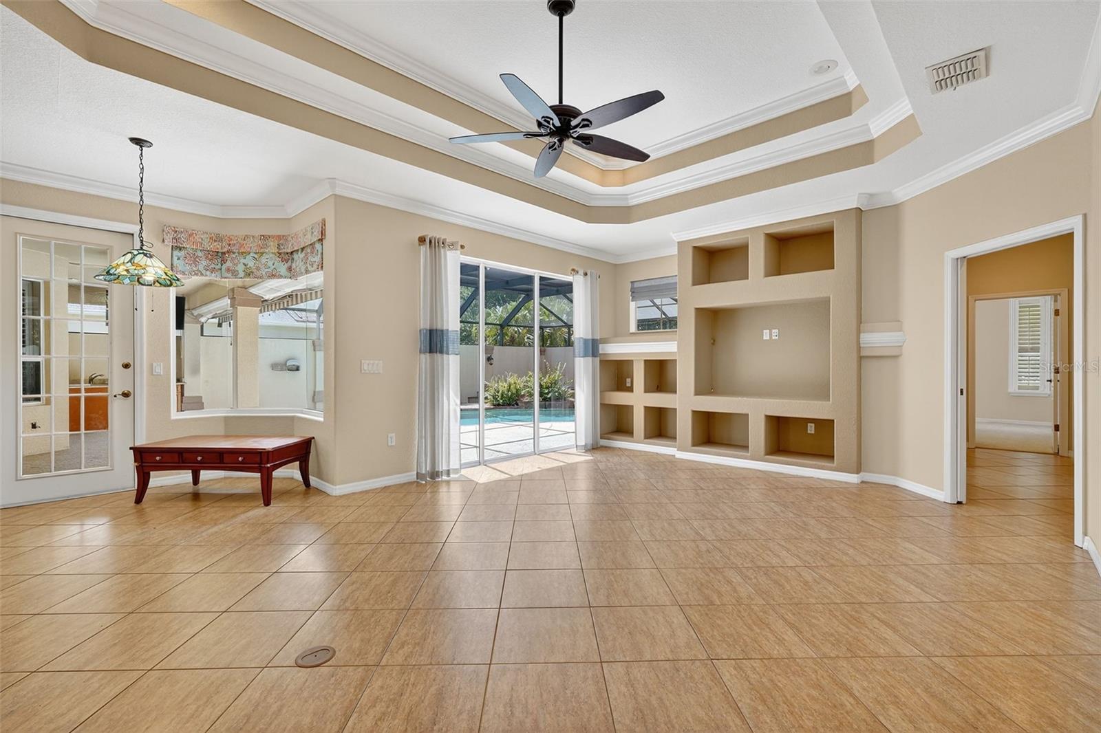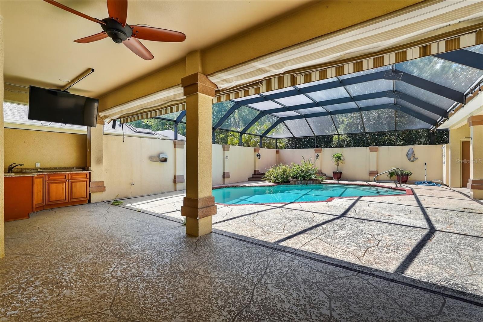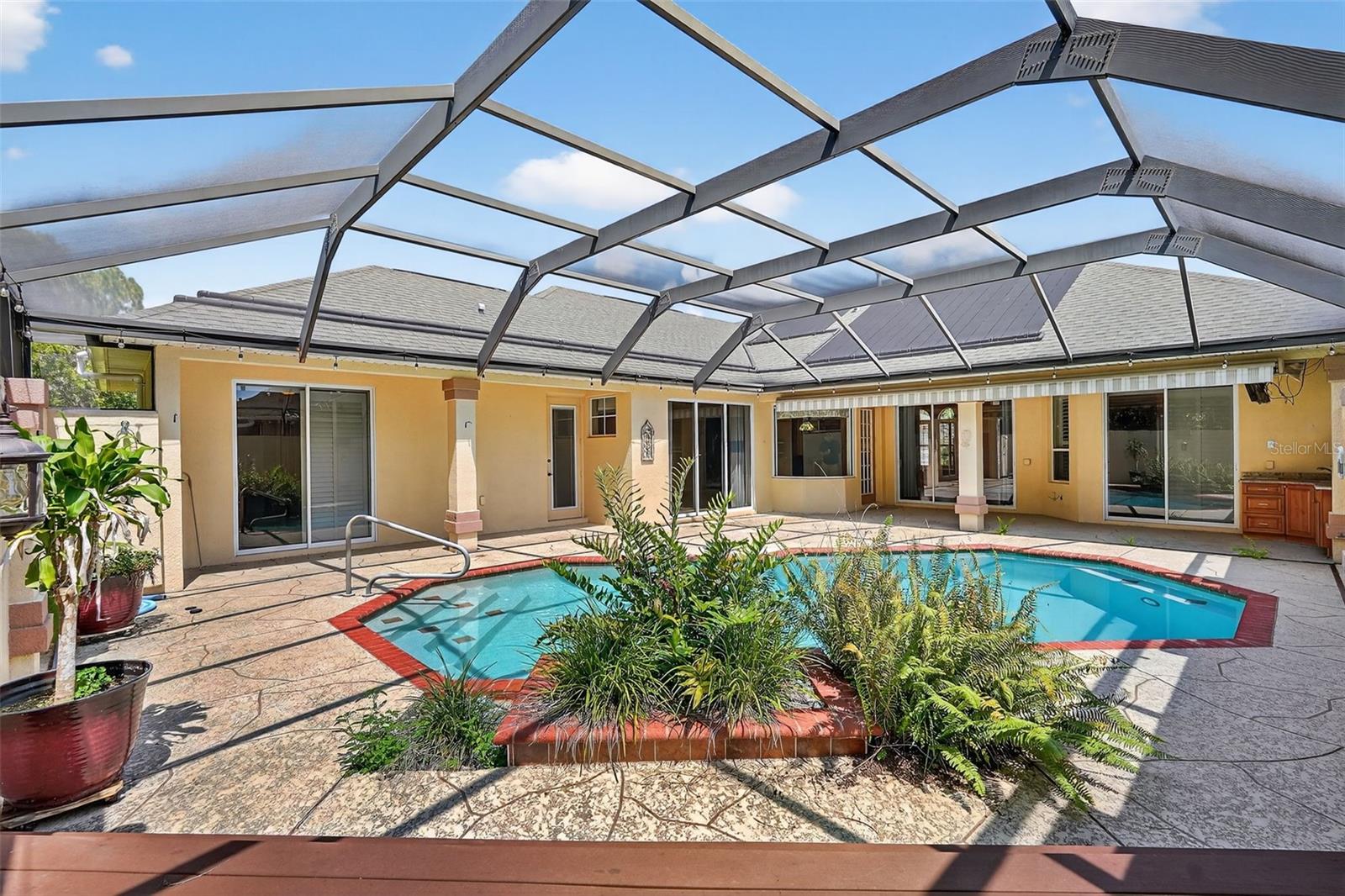 HUGE PRICE ADJUSTMENT!!! Welcome to 5378 Legend Hills Lane, a beautifully appointed home nestled in the Silverthorn Golf & Country Club—one of Hernando County’s most desirable gated communities. This stunning residence blends refined style with relaxed Florida living and is set on a beautifully landscaped lot with incredible curb appeal and a spacious 3-car tandem garage. Buyers can choose the golf membership that best fits their lifestyle — with 50% off monthly dues. You’ll also have the flexibility to select your preferred cart program, whether annual or per round, so you only pay for what you use. Step through the double front doors into a grand foyer with double tray ceilings, formal living and dining rooms, and views straight out to your private courtyard oasis. At the heart of the home, a dual-sided gas fireplace adds warmth and charm to both the living room and family room, while plantation shutters and elegant architectural details elevate the space throughout. The open-concept kitchen features a breakfast nook and seamlessly connects to the family room, which showcases a custom built-in entertainment center and oversized picture window framing the resort-style pool area. Outside, enjoy a heated saltwater pool surrounded by a privacy wall, lush landscaping, and a covered lanai with a poolside kitchenette, electric retractable awning, and a dedicated pool bathroom—perfect for entertaining. A pool safety fence is also included for peace of mind. The thoughtfully designed split floor plan offers maximum privacy, with the primary suite located on one side of the home featuring direct access to the pool and patio, while three spacious guest bedrooms are situated on the opposite side. Whether you're hosting summer BBQs, relaxing under the awning, or enjoying a morning walk around the scenic community, this home offers the lifestyle you’ve been looking for in a golf course setting. Don't miss your chance to live in Silverthorn—where elegance meets everyday comfort.