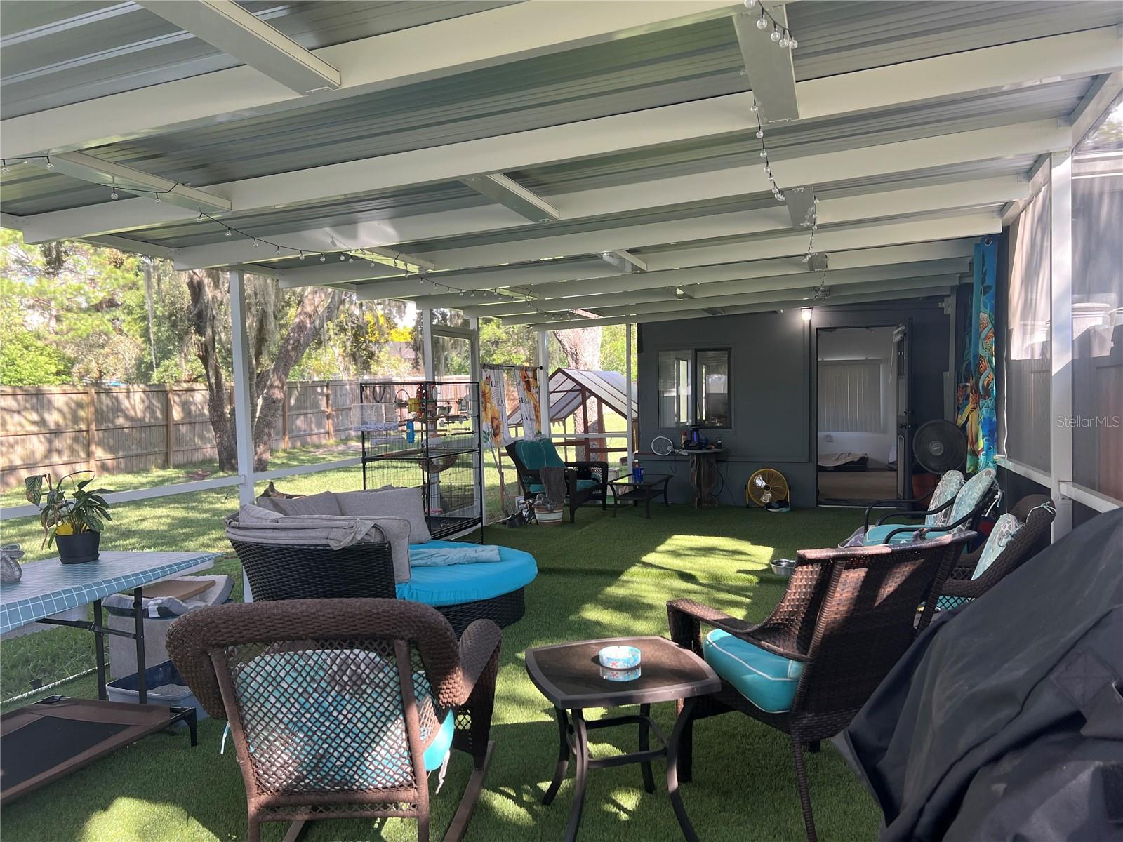 Turn key, Huge Half Acre corner lot home. Two bedroom two bath and split floor plan. No HOA, NOT IN A FLOOD ZONE. Newer windows provide ample amount of light throughout this open concept beautiful home. Master has big walk in closet. Kitchen has brand new European convection range & new quiet dishwasher. New handles and knobs on wood cabinets. New electrical panel in 2 car garage. New roof 2024 and HVAC 2021 and four year old water heater. If you like the outdoors you’ll love the lanai. It’s in the shade almost all the time, adding a couple fans will make being outdoors a pleasure. New lighting outside and New Security Camera System with 4 HD IP Cameras with 8 Channel NVR - Audio - Night Vision. Huge fenced backyard with New Saint Augustine grass that has been meticulously cared for making it feel like carpet on your feet. Updated sprinkler system too! There is a huge two story brand new shed for all your yard supplies and more! Can’t forget the brand new pool with sand filter to cool off on the hot summer days. Seller has a lot more invested than the asking price making this a great deal!