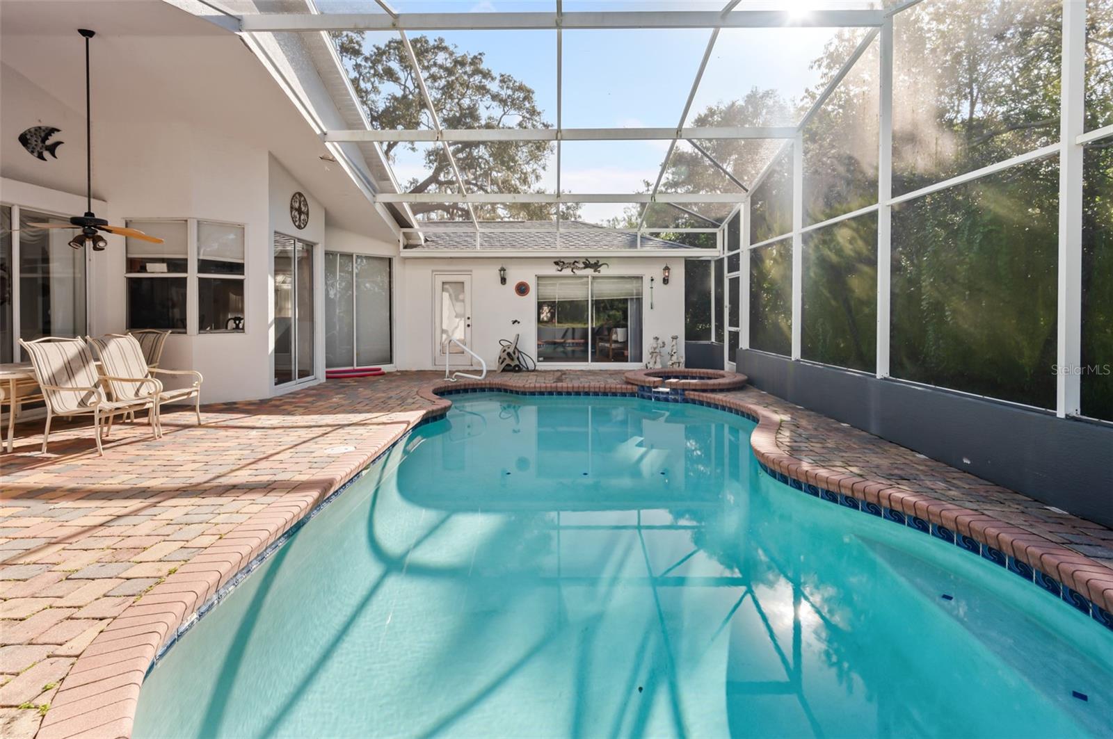 Rare opportunity in the desirable Rainbow Woods community! This spacious single-family home offers over 2,800 sq. ft. of living space with 4 bedrooms, 3.5 bathrooms, and a spacious room with additional living space above the garage. A dream setup for car enthusiasts or mechanics, the property features a 3-car attached garage plus a separate oversized 2-car garage behind the home. The well-maintained interior provides plenty of room for family and entertaining, while outside you'll enjoy a private pool with screened lanai, perfect for year-round Florida living. Homes in Rainbow Woods seldom come available. Don't miss your chance to own this one-of-a-kind property!