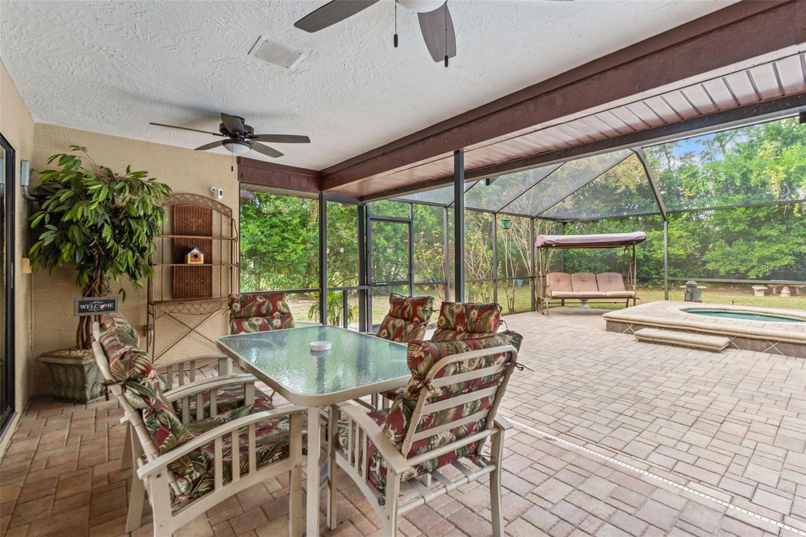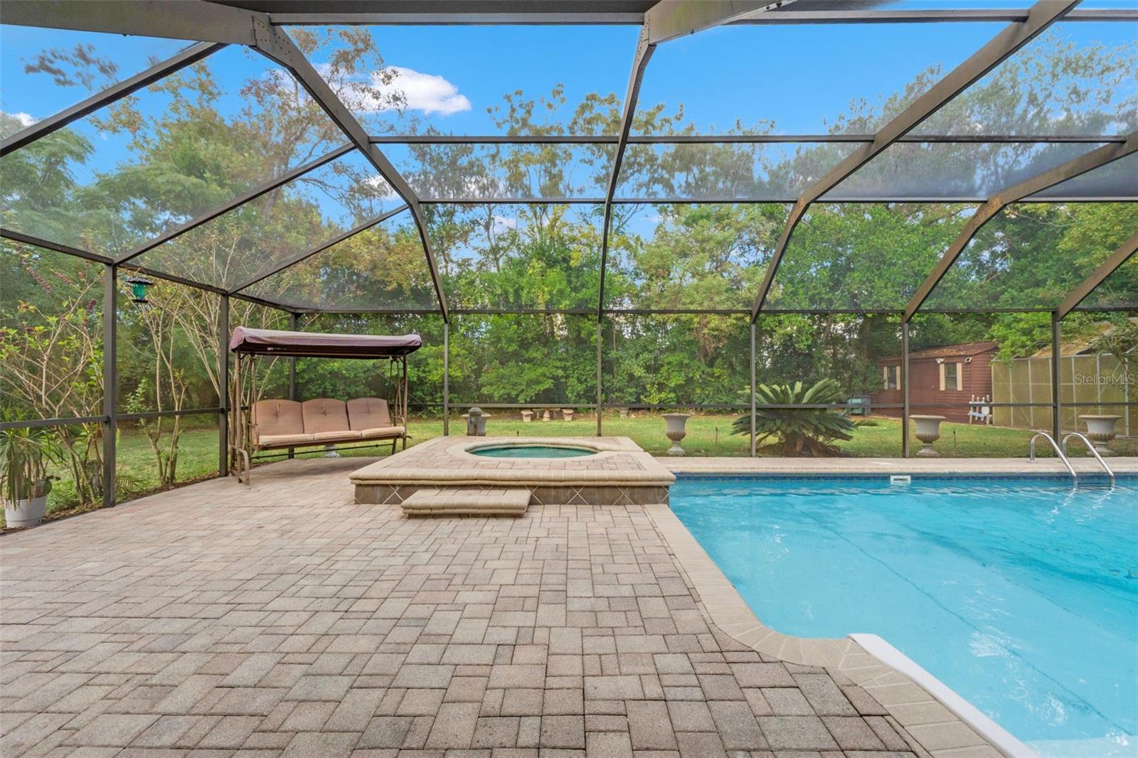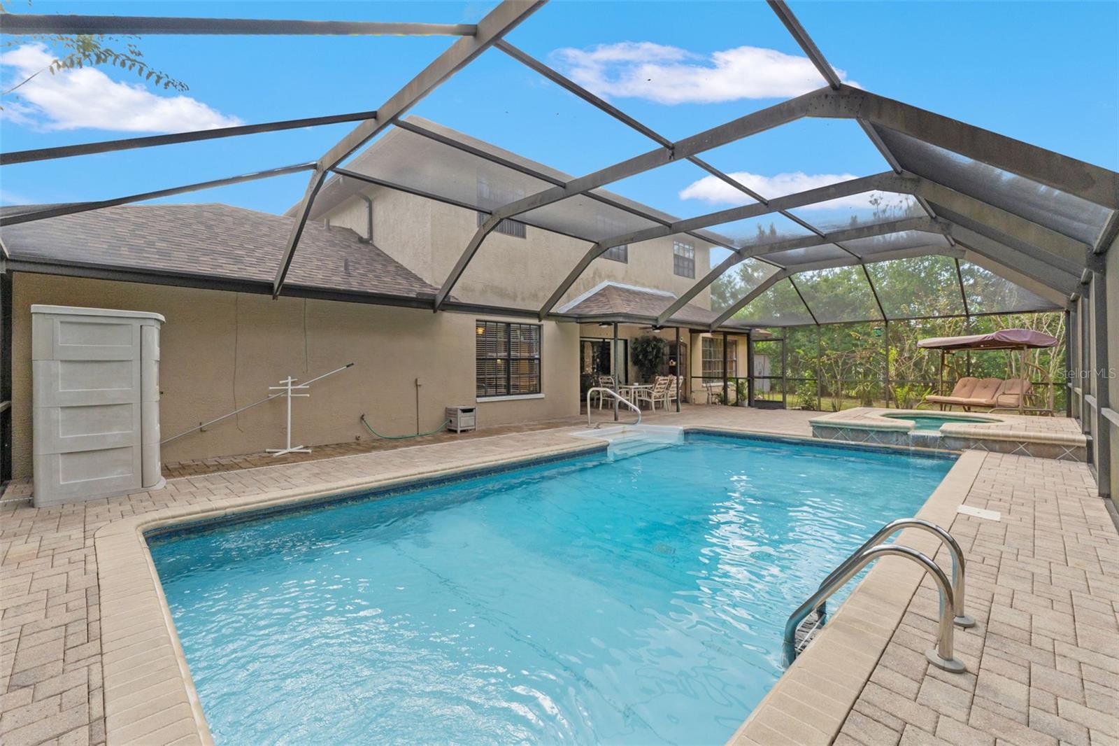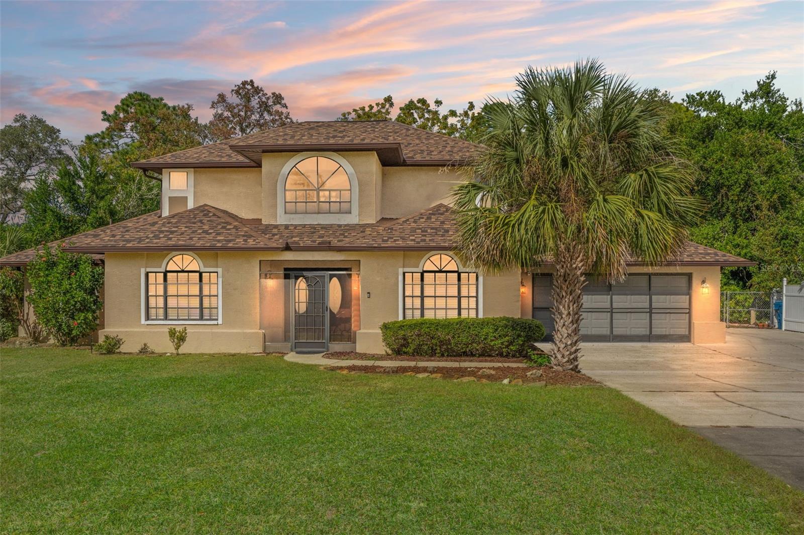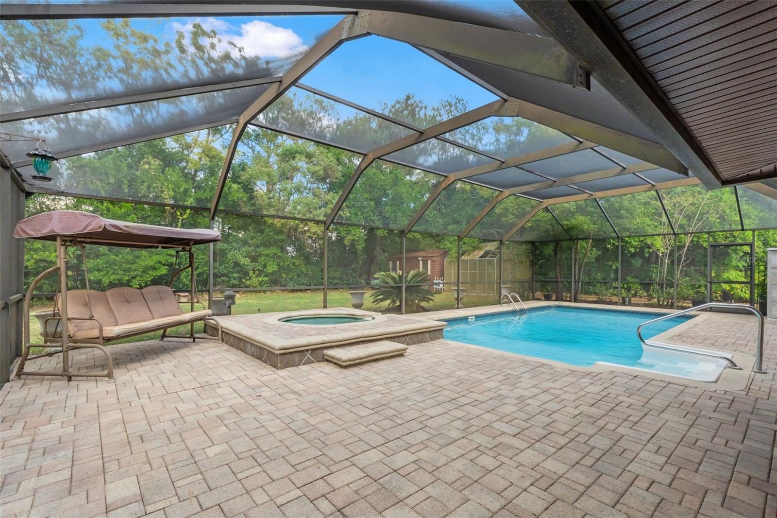 Welcome to Amber Woods! This beautifully maintained 4-bedroom, 2.5-bath home offers the perfect blend of comfort, privacy, and functionality — all with no HOA fees. Situated on a half-acre lot in desirable Hernando County, this property features a new roof (2025) with transferable warranty, tankless water heater (2022), Ring doorbell, exterior cameras, and an alarm system for peace of mind. Inside, you'll find a thoughtful layout with a den/office with double doors to the left of the entryway and a formal dining room to the right. The kitchen offers wood cabinetry, great natural light, and a cozy breakfast nook, all overlooking the open living area with views of the paver lanai and screened pool. A half bath is conveniently located for guests. The owner's suite is located on the first floor, offering privacy and convenience, complete with a large walk-in closet, dual sinks, and a walk-in shower. Upstairs, you'll find three spacious bedrooms, a shared bath with a tub/shower combo, and an oversized storage closet currently used as an additional sleeping area. Outside, enjoy your private oasis with a re-screened (2024) pool and spa, covered lanai, and plenty of space for lounging or grilling under the screen enclosure. Additional highlights include a storage shed with electric, greenhouse with electric, a deep freezer, extra storage cabinets in the garage, a newer irrigation well (2024), and an extended driveway with room for extra parking. This home truly has it all — space, updates, and a peaceful setting close to everything Spring Hill has to offer!