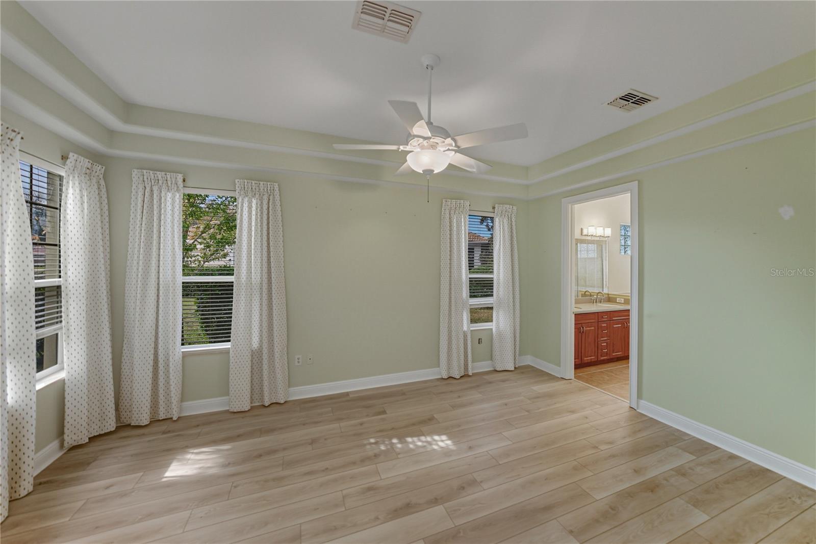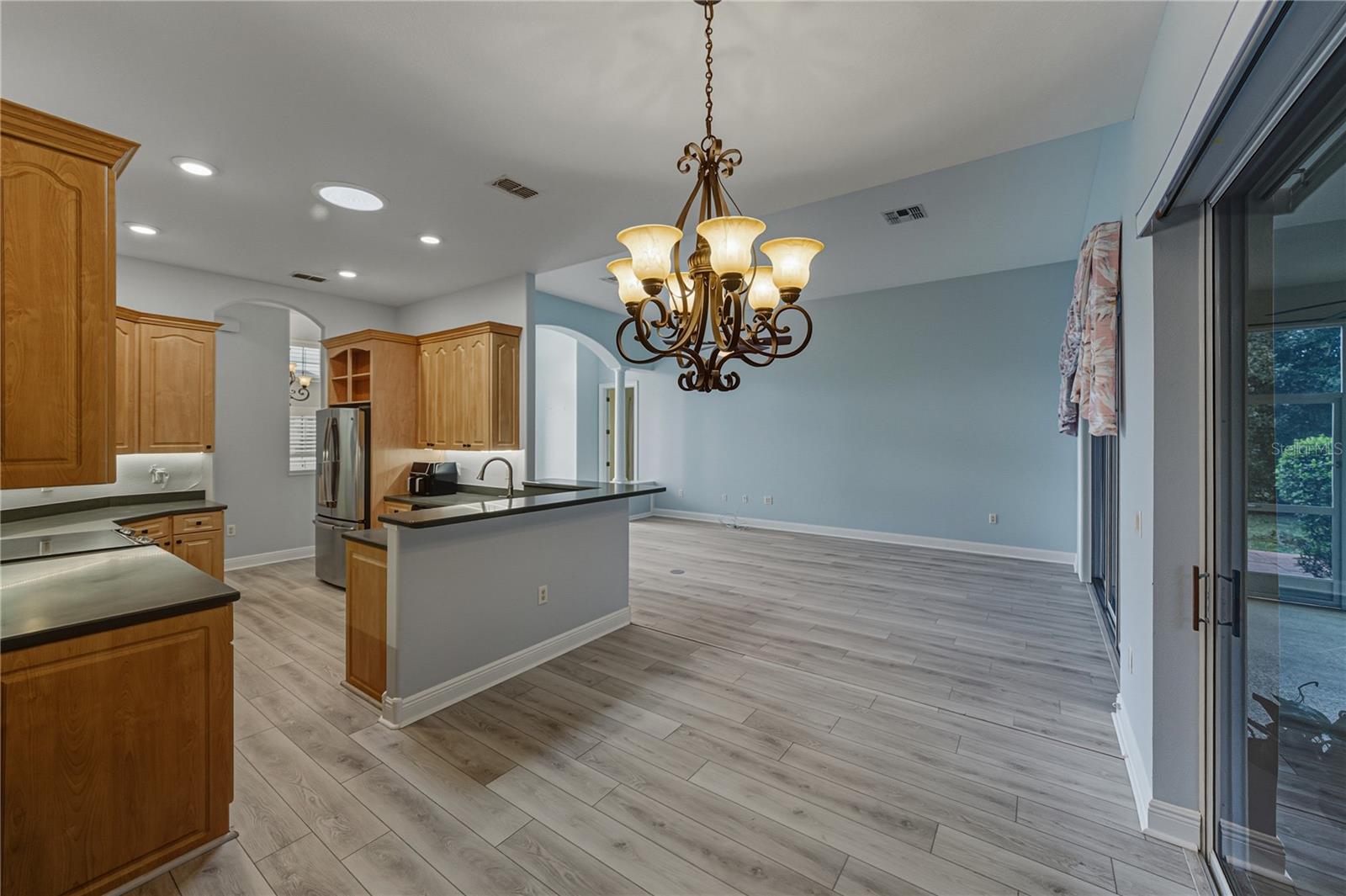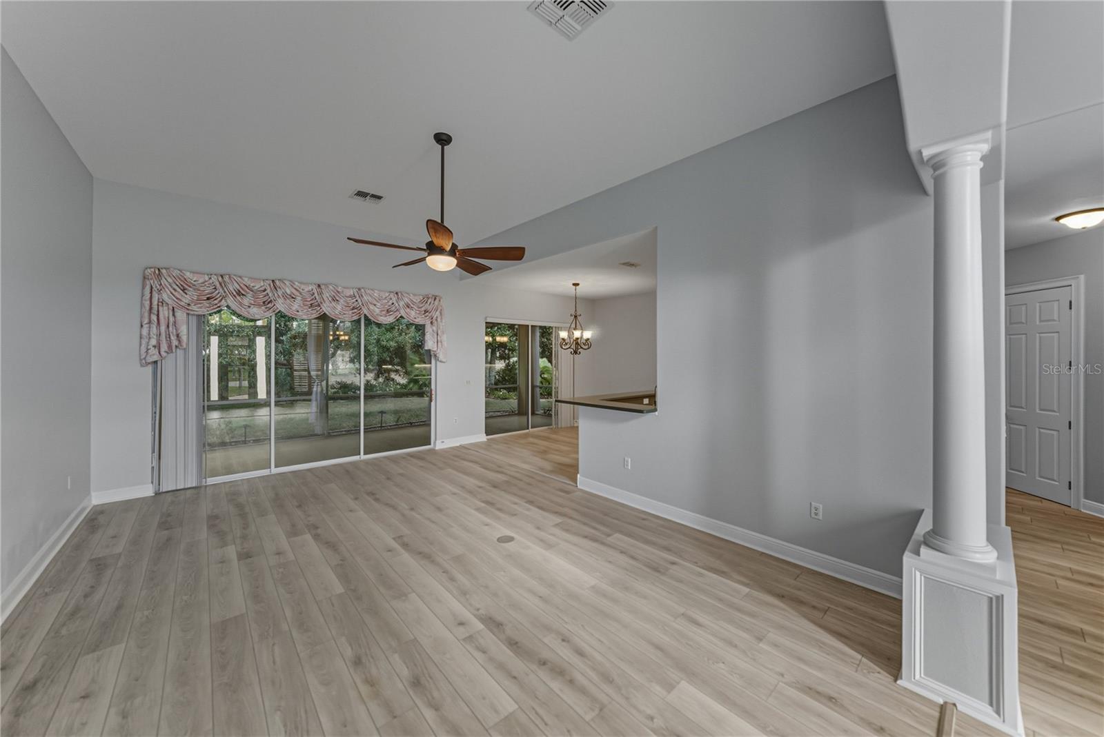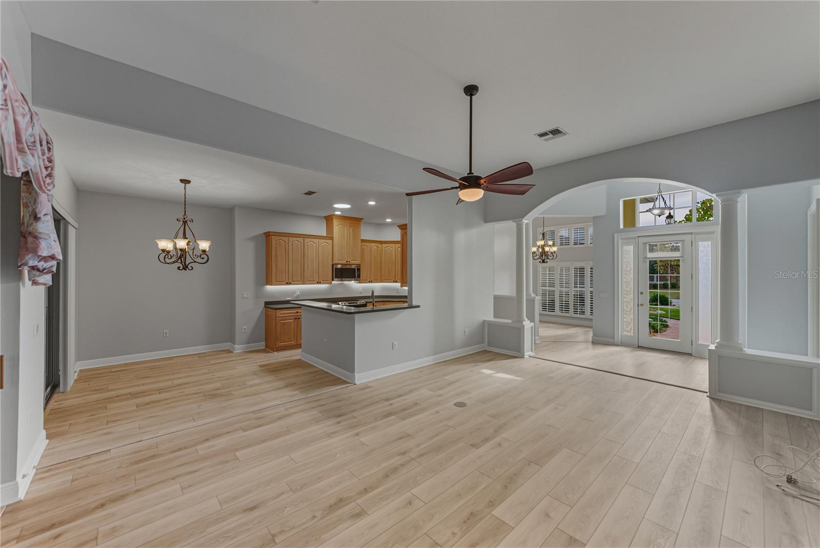 Live every day like a resort-style Florida vacation in the highly desirable, amenity-filled, and gated community of Glen Lakes, where this thoughtfully updated 3 bedroom, 2 bath home offers a well-cared-for setting with meaningful updates already in place. A 2024 roof and 2023 AC add long-term value and make this an easy move-in opportunity in one of the area’s most loved neighborhoods. The arrival sets the tone with fresh landscaping, newer landscape lighting, a newer paver driveway, and a conveniently covered front entry that adds both curb appeal and function. Inside, the living room has been nicely refreshed with luxury vinyl plank flooring that flows throughout most of the home, complemented by newer paint and elegant columns that add architectural appeal. Triple sliding glass doors, enhanced with tinting are designed to reduce heat and add privacy without sacrificing connection to the outdoors. This inviting space transitions effortlessly into the formal dining room and the eat-in kitchen, creating an ideal layout for everyday living and entertaining. The kitchen offers solid surface Corian countertops, breakfast bar seating, stainless steel appliances, and ample cabinet storage. An eat-in dinette with sliders to the lanai adds to the easy entertainer's flow, while one of two recently added skylights fills the space with natural light. The split-bedroom floor plan provides privacy, with the generously sized primary suite tucked away as a true retreat. It features a tray ceiling, a spacious walk-in closet, and an ensuite bath with dual sinks, a soaking tub, a separate walk-in shower with bench seating, and a private water closet. On the opposite side of the home, bedrooms two and three are conveniently located near the laundry room and the second full bath, which includes a tub/ shower combination with a glass enclosure. Out back, the oversized screened porch is a fantastic space to relax or dine alfresco while overlooking lovingly maintained landscaping that enhances the tranquil setting. Residents of Glen Lakes enjoy golf cart friendly streets and a vibrant lifestyle with a pool, clubhouse, on-site restaurant, fitness center, tennis and pickleball courts, a golf course, and a full calendar of social activities. This is a wonderful opportunity to enjoy resort-style living in a well-established community. Call today to learn more and schedule your private showing.