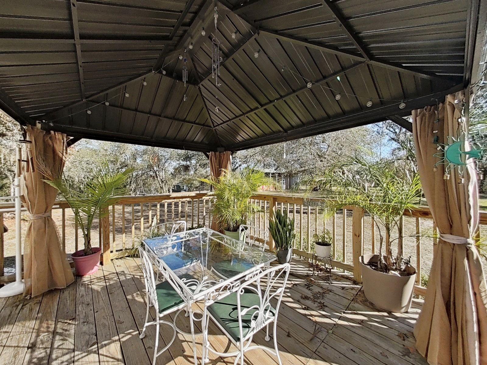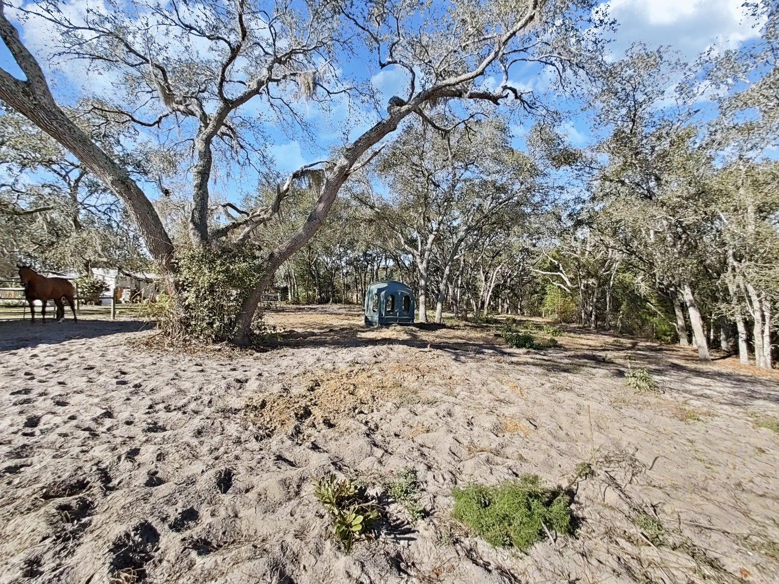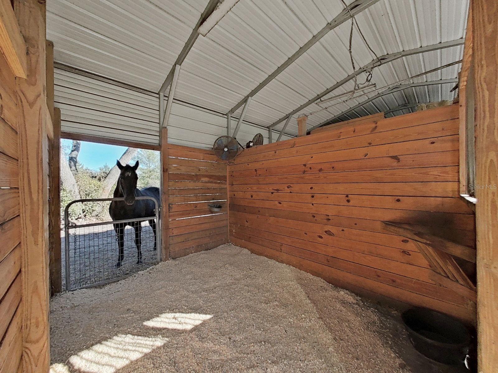 A horse lovers dream! A mini ranch tucked away on a quiet paved road with access to gorgeous shady trails. Other farm animals welcome! This home features 3 bedrooms, 2 bathrooms and a finished laundry room with extra built-in storage. Large primary bedroom with walk-in closet (with built-in shelving) spacious en suite bathroom & linen closet. The living room has a real wood burning fireplace with an open floor plan with cathedral ceilings flowing into the kitchen and dining room. Double pane windows. Stainless steel appliances and plenty of cabinets! Outdoors you will step out onto a 20x18 deck with a large hardtop gazebo. Perfect place to unwind after a great day of riding! Off the deck is an outdoor shower with hot and cold water. No water or sewer bills! Low electric bills. New water system installed 2024. Air conditioner installed in 2019. Roof is 2019 also. Includes a 2 car carport and a fully paved large driveway for all your parking needs (including room for an RV!) The property is full of mature oak trees and is completely fenced and cross fenced and boasts an 30x18 barn. Built in 2021, this barn includes 2 stalls with automatic waterers, fans, overhead lighting, built in hay mangers, electric hook up and sliding front doors. There are gates on the back side for easy turn out convenience. Two cross fenced shaded pastures with full size water trough supplied by an automatic waterer. Fully insulated tack room which features vinyl flooring, wood paneled walls, electric outlets, full overhead lighting, & a large window to allow natural light & create cross ventilation. Large 12x10 loft above tack room for hay and additional storage. A concrete aisle runs the full length of the barn and tack room. Additional gate installed off street for easy access to the barn. There is a large area in front of barn for vets, farrier, trailer loading, etc. All barn & property gates are newer & in perfect condition/working order. Concrete wash rack with cross ties & hose hook up next to barn. Home, barn, and property have been immaculately kept up with daily care since built. 15 minutes to the Suncoast Expressway and US Hwy 19 & only 45 minutes to Tampa. Country living at its absolute best while being so close to many amenities! This is a must see, don't wait, schedule your showing today!