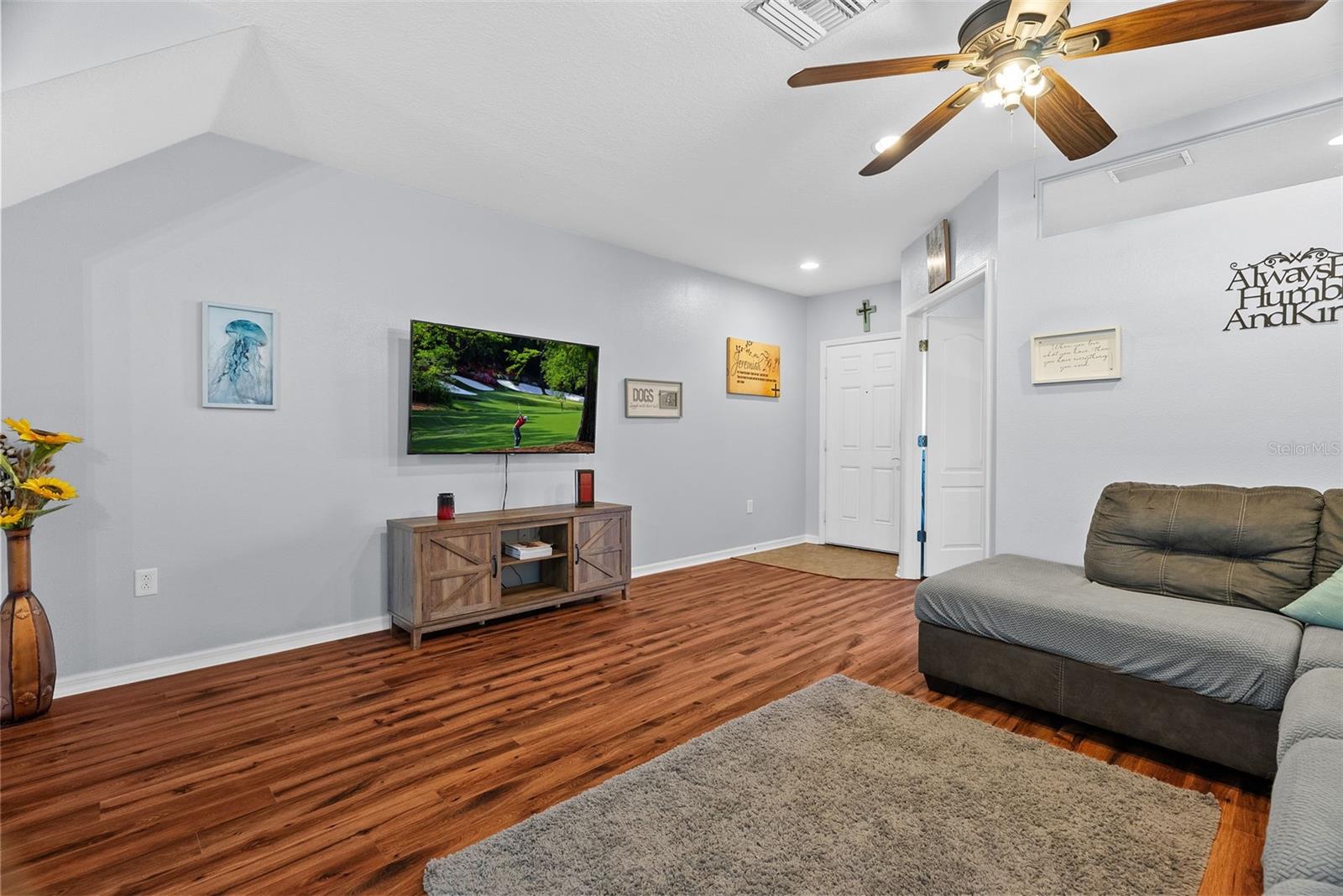 Welcome to 15822 Stable Run Drive, a thoughtfully cared-for two-story townhome located within the gated community of Stable Run in Spring Hill. This 2-bedroom, 2.5-bath home offers a peaceful place to settle in, with a layout designed for both everyday life and quiet moments of rest. The main level feels open and welcoming, with wood-look flooring and natural light filling the living and dining spaces. The kitchen is warm and functional, offering ample cabinetry and counter space, and it opens seamlessly to the heart of the home—making it easy to stay connected whether you’re cooking, hosting, or enjoying a quiet evening in. Sliding doors lead to a private patio with no rear neighbors, where a wooded backdrop creates a sense of privacy and calm. Also on the first floor is a half bath and a dedicated office or flex room with built-in shelving —perfect for working from home, homeschooling, or creating a space that fits your season of life. The home has ample storage opportunities including a pantry, a spacious closet under the steps, in addition to an outside storage closet. The washer and dryer are included with the sale. Upstairs, both bedrooms are generously sized, with brand-new carpet throughout the second floor. The primary bedroom features an en-suite bath and a peaceful retreat at the end of the day, while the second bedroom is conveniently located near the additional full bath. Bonus! The TV hanging in the second bedroom stays with the house! Residents of Stable Run enjoy the ease of gated living along with access to a community pool, ideal for soaking up Florida sunshine. This building just had the roof replaced in 2025. Located just minutes from the Veterans Expressway, this home provides quick and convenient access to Tampa, while still offering the slower pace and natural surroundings that make Spring Hill so appealing. A home that feels steady, simple, and ready to serve its next chapter—15822 Stable Run Drive is waiting to welcome you.