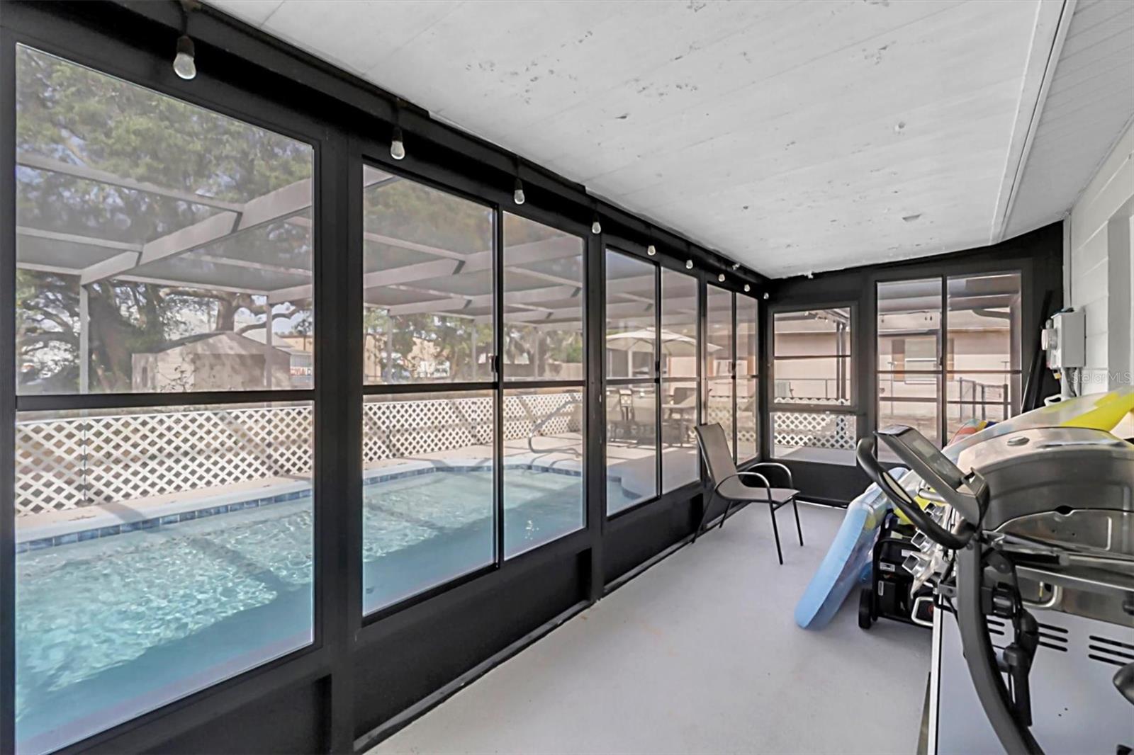 This beautiful, light-filled split-plan home offers the perfect setting to embrace the Florida lifestyle. From the moment you step through the front door, you’re welcomed by rich luxury vinyl plank flooring complemented by new molding, fresh paint, updated ceiling fans, and stylish finishes throughout. The remodeled kitchen overlooks the screened-in pool and lanai, creating a seamless indoor-outdoor flow, and features new cabinetry, stainless steel appliances, solid-surface designer countertops, and modern fixtures. The secondary bedroom is bright and inviting, conveniently located near a beautifully updated bathroom. The spacious primary suite is a true retreat, boasting a generous layout, an updated en-suite bath, and new fixtures. Outside, the screened-enclosed pool is equipped with an electric heater, allowing for year-round enjoyment. Energy efficiency is a standout feature, with a seller-owned solar panel system keeping the average monthly electric bill around $79, newer energy-efficient windows, and a roof that is less than three years old. Situated on an oversized, fully fenced corner lot of over one-third of an acre, this property offers ample space for pets, toys, and outdoor living. With no HOA and no flood insurance required, this home is ideal as a first residence, investment property, or a peaceful place to retire and enjoy the Florida lifestyle—with room to grow.