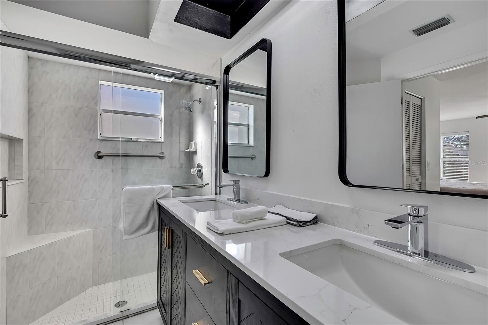 Turnkey and Fully Furnished in Timber Pines! This fully remodeled 2-bedroom, 2-bath home with a 2-car garage is ready for you to move right in. Everything has been updated from top to bottom, including a brand-new roof, fresh interior paint, and new knockdown ceilings. The home features new waterproof vinyl flooring, updated baseboards, outlets, and GFI switches. Modern light fixtures and remote-controlled ceiling fans have been added throughout. The kitchen has all new stainless-steel appliances, quartz countertops, and a fresh, open feel that's great for everyday living. Both bathrooms have been updated—the primary bath has dual mirrors, walk in shower and the guest bath has a new vanity, tub/shower and mirror. The garage floor has also been freshly painted for a clean look. Located in the popular Timber Pines 55+ gated golf community, this home is turnkey and fully furnished. Enjoy amazing amenities like golf, pools, tennis, pickleball, fitness centers, clubs, and on-site dining. This home has it all—beautiful updates, a great location, and a wonderful community.