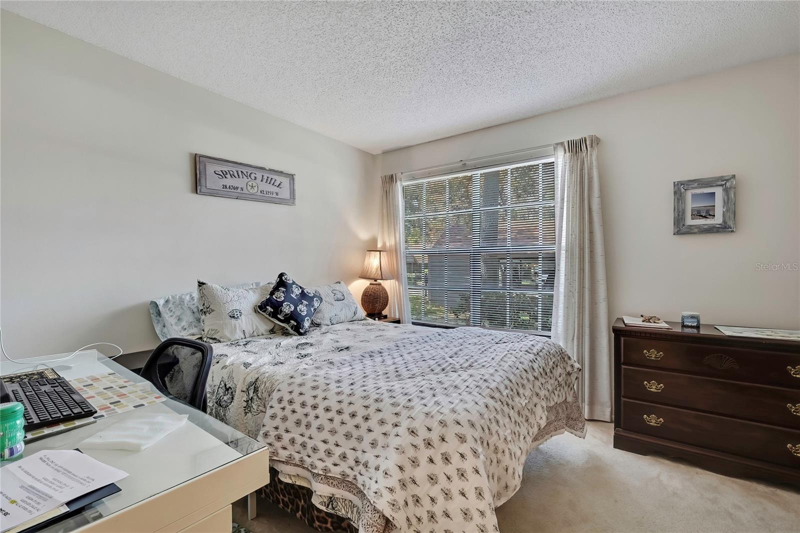 Beautifully maintained 2-bedroom, 2-bath villa featuring tile flooring throughout the main living areas and carpeted bedrooms, along with a carport and additional storage room, offered move-in ready. The kitchen includes an eat-in area, large pantry, and opens to a separate dining room, creating a comfortable and functional layout. The screened porch features a convenient laundry closet, while the primary bedroom offers a walk-in closet and sliding doors leading to the lanai. This villa is ideal for year-round living, a seasonal retreat, or an income-producing property. Located in the highly sought-after Timber Pines 55+ gated community, residents enjoy four championship golf courses, two geothermal heated pools, tennis and pickleball courts, a fitness and wellness center, performing arts center, pro shops, on-site restaurant, and an active calendar of clubs and social activities. HOA fees include exterior painting, outside maintenance, lawn care, cable, and high-speed internet, allowing for truly low-maintenance, resort-style living in one of Spring Hill's premier communities.