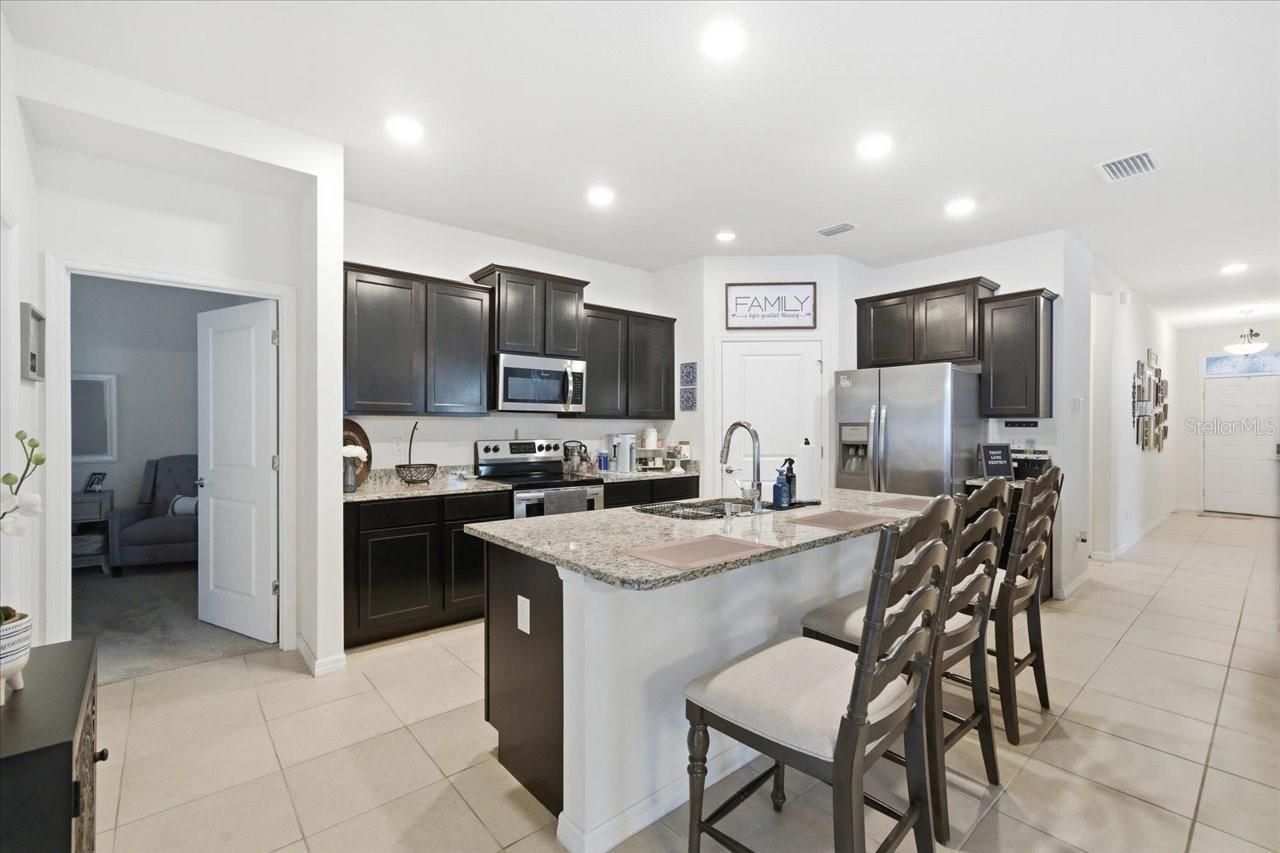 13766 Hunting Creek Place — Stunning, turnkey Clifton model POOL HOME (1,742 sq ft) tucked behind the quiet gates of The Villages of Avalon! (1 of 4 homes total) currently listed in all of the Avalon Community! This home placed in the intimate Cambridge enclave (78 homes total) and conveniently sited near a cul-de-sac. This single-story home features an open floor plan, a versatile den that's easily able to be converted to a guest room or a true 3rd bedroom! Elegant finishes including granite countertops, stainless steel appliances, tile flooring throughout the main living areas and carpeted bedrooms for comfort. Step outside to your fully screened, saltwater 12' x 28' pool and covered lanai—perfect for al fresco Pool side dining and summer pool parties—plus an additional paver patio ideal for a fire pit or BBQ area! Enjoy carefree living with lawn maintenance and pest control included! Community amenities that include two pools, a clubhouse and fitness center (nearest pool 0.5 miles; Avalon West pool 1.2 miles). Located minutes from the Suncoast Parkway for an easy Tampa commute, close to Publix and local recreation like Anderson Snow Sports complex and the Suncoast bike trail! All furnishings negotiable — This move in ready home is waiting for you! Time to start living the Avalon lifestyle today!