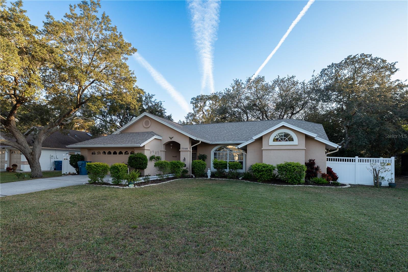 Meticulously maintained home loaded with upgrades, this property features a brand-new 2025 roof, 2018 HVAC system, white vinyl privacy fence installed in 2023, irrigation system, and a built-in exterior camera security system. Step inside to 2,246 sq. ft. of comfortable living space (3,103 sq. ft. total under roof) designed for both style and function. The spacious master suite features a fully remodeled luxury bathroom and a large sliding glass door that leads out to the lanai. The large living room includes a built-in fireplace. In addition to the living room, the home also offers a large separate great room, perfect for entertaining, hosting gatherings, or creating a dedicated media room. Enjoy the convenience of an indoor laundry room and seamless access to a large screened-in lanai through sliding glass doors. The 2-car garage and well-manicured landscaping complete this move-in ready home. Location is key, with shopping, dining, and everyday conveniences just minutes away, accessible immediately upon exiting the neighborhood. While there is no mandatory HOA, residents of Regency Oaks have the option to join the Civic Association for just $125/year. Membership grants unlimited access to the community clubhouse, pool, and tennis courts, perfect for both relaxation and recreation. This home perfectly combines modern upgrades, functional living, and lifestyle convenience.