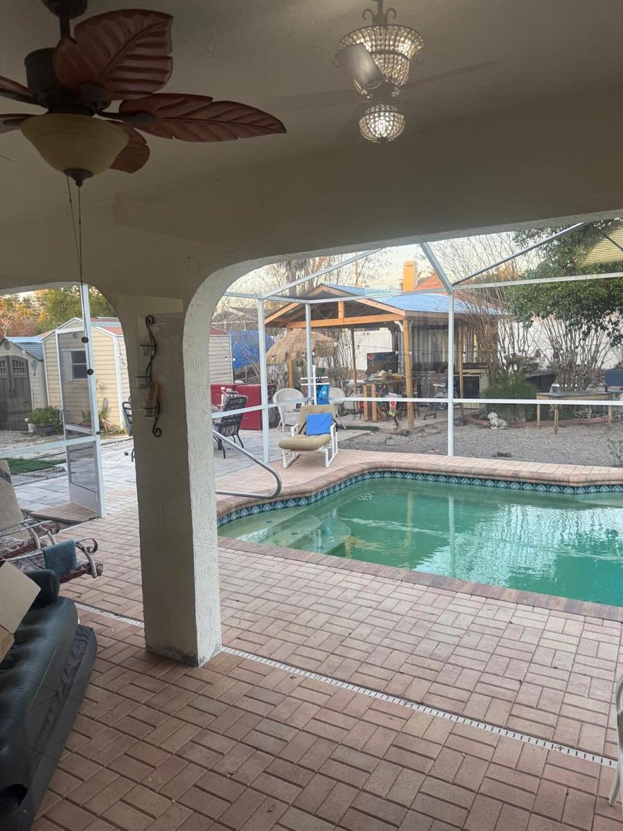 The property build in 1995, with 3 bedroom and 2 bathroom, it has a nice pool. Is locates in the heart of Spring Hill, conveniently locate just minutes from shopping, dining, medical facilities, and only minutes to the Suncoast Parkway for an easy commute to Tampa. It feature ceramic Tile roof, High ceiling, freshly painted inside, complete with wood flooring. Has no HOA or CDD, no flood area, the backyard is fenced with vinyl fencing. Also include a backyard sheds for tools or hobbies.
