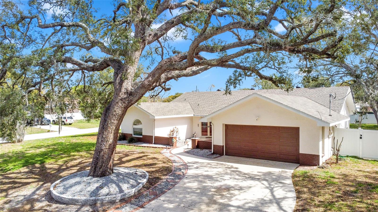 Beautiful 3-bedroom, 2-bath pool home situated on a spacious corner lot in Spring Hill! This well-maintained single-story Florida ranch offers over 2,000 sq ft of living space with an open floor plan, cathedral ceilings, and luxury vinyl flooring throughout. The split-bedroom layout provides privacy, while the primary suite features a walk-in closet and en-suite bath. The kitchen offers a pantry, built-in oven, cooktop, and plenty of workspace, opening to the living and dining areas—perfect for entertaining. Enjoy Florida living in the screened patio overlooking the private in-ground pool with lighting. Recent updates include a new pool motor, new electrical panel, tankless water heater, and a brand-new water softener system. Additional highlights include a wet bar, indoor laundry with washer, and an attached 2-car garage. Located on a 0.40-acre corner lot with no HOA. Convenient to shopping, dining, schools, and major roadways. Schedule your showing today!