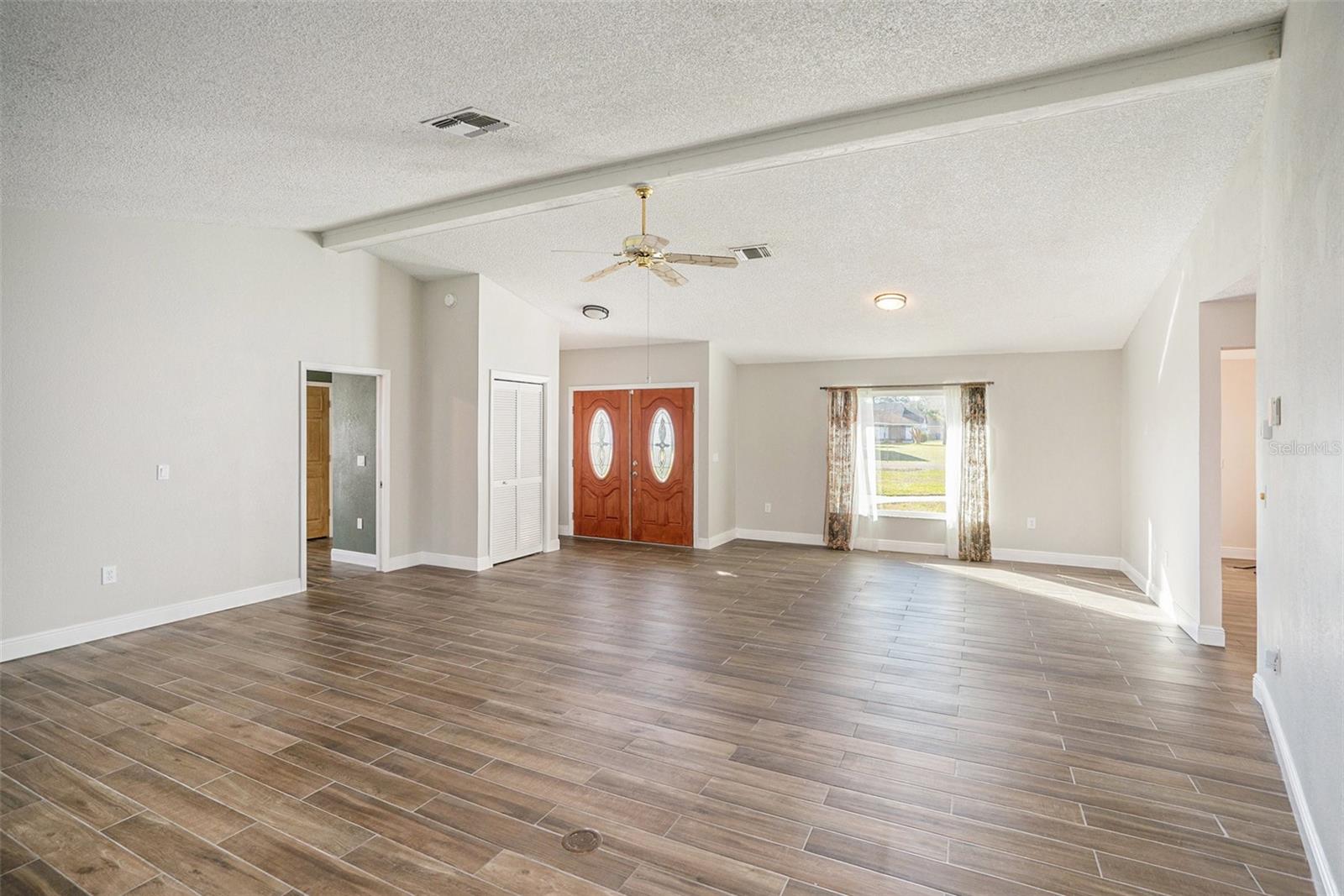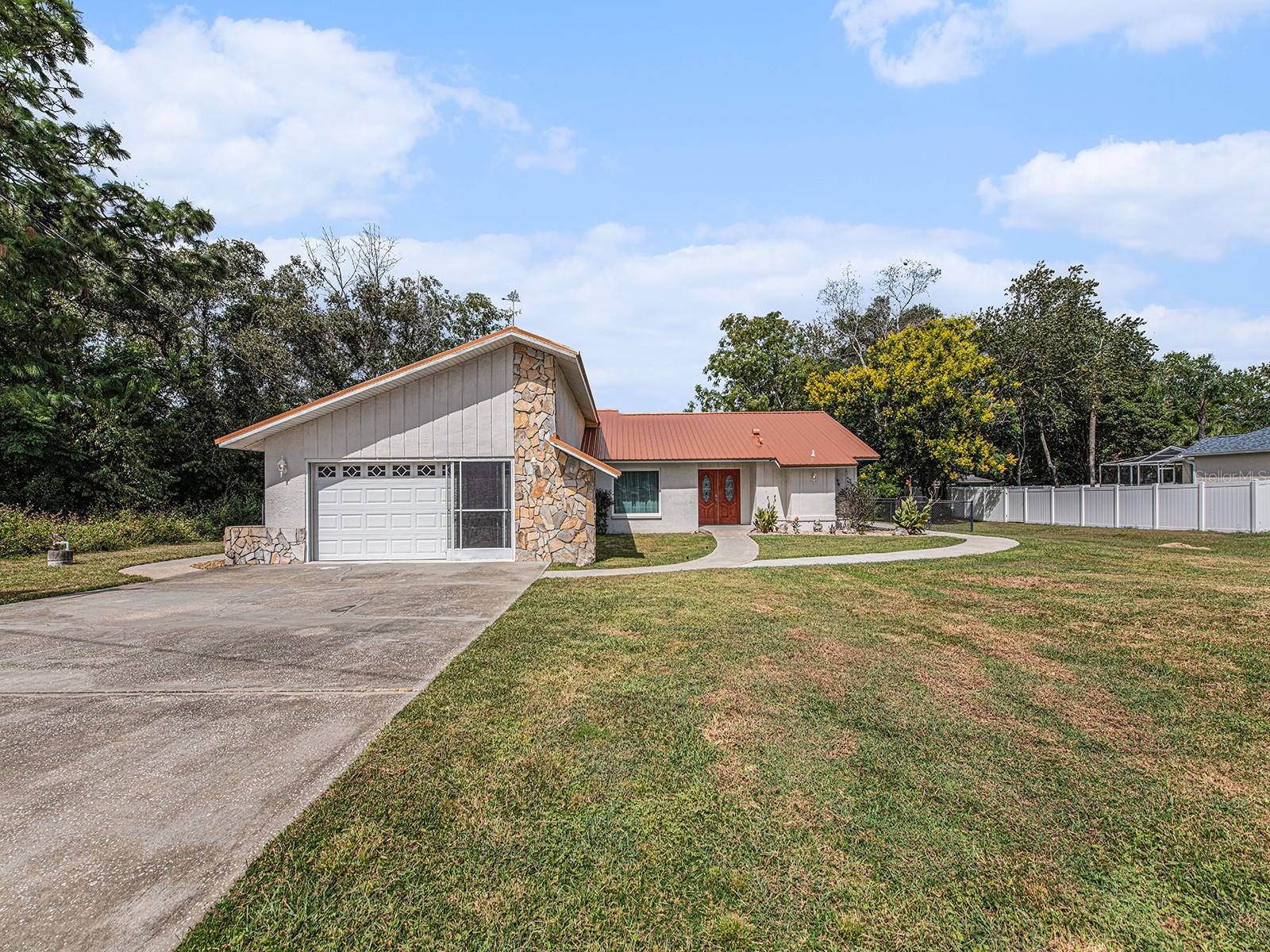 One or more photo(s) has been virtually staged. Remodeled and freshly painted 3 bedroom, 2 bath, pool home in Spring Hill, situated on over a quarter acre fenced property. Upon entering you’ll love the spacious feel of the large living/dining room area with vaulted ceilings, which has French doors overlooking the lanai. Have fun and relax with family and friends on your covered lanai and screen enclosed pool (includes chair lift). The beautifully remodeled kitchen features granite countertops with tile backsplash, plenty of cabinet space and a large stainless-steel sink, as well as a breakfast nook overlooking the back yard and lanai. Both bathrooms feature no-threshold showers and granite countertops. Master bedroom has his and her closets with built-ins. Laundry room has a deep stainless-steel sink and upper cabinets (washer and dryer are included). Plenty of parking with an extra-large driveway along with sidewalks extending from both sides of the house towards the rear, connecting to each side of the lanai. Other features of this beautiful home include ceramic tile floors throughout, ceiling fans in each room, and the garage has sliding screen doors. The Metal Roof, replaced in 12/2021, and has a transferable warranty. The A/C, replaced in 7/2021, has an induct air purification system that was installed in 9/2022. The Pella Storm Defense windows were installed in 9/2022 and also include a transferrable warranty. Save money with No HOA or CDD fees! LOCATION: Less than 5 minutes from FL-589 and shopping (Publix, Walmart, etc.), 42 minutes to Tampa International Airport, and close to all the restaurants, entertainment and shopping that the Tampa Bay area has to offer. Schedule your showing today!!
