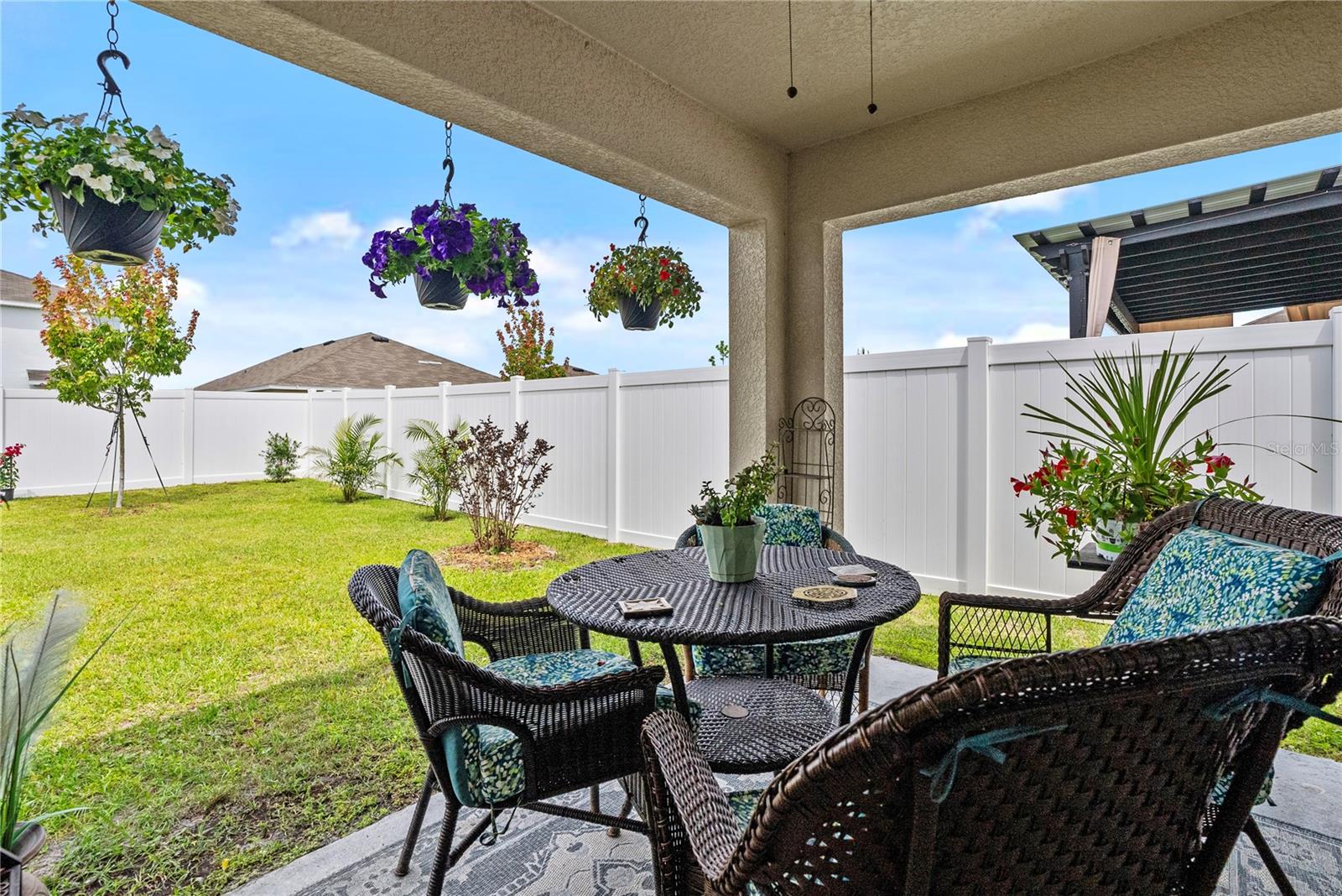 This 2022 DR Horton Cali floor plan is the epitome of modern living, offering a spacious layout and a host of desirable features that enhance both comfort and style. With four bedrooms and two full bathrooms, this home provides ample space for family living or accommodating guests. The layout is thoughtfully designed to optimize both privacy and functionality. The open concept layout optimizes living space, seamlessly integrating the kitchen, living area, and dining room. This design fosters a sense of connectivity and allows for effortless entertaining and everyday living. The kitchen is a chef's dream, featuring all appliances, including a refrigerator, built-in dishwasher, electric range, and microwave. With ample beautiful granite counter tops and storage, meal preparation becomes a breeze, while the breakfast bar provides a casual dining option. Step outside to the fenced backyard, where you'll find a beautifully landscaped oasis complete with a covered patio. Centrally located in the gated Sterling Hill community, residents have access to upgraded amenities including two pools, two clubhouses, an exercise facility, tennis courts, and more. Whether you're seeking relaxation or recreation, there's something for everyone to enjoy.